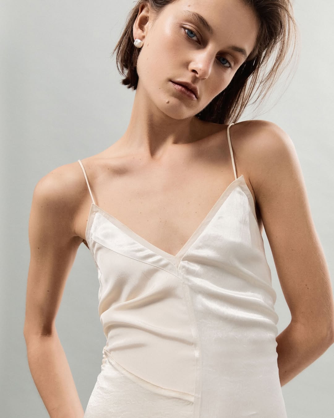 Крупный вырез, открытая спина, интересная линия лопаток — туда будет падать взгляд гостей. Можно добавить украшение на спину: цепочку, кулон, или украшение, которое крепится к волосам и уходит вниз.