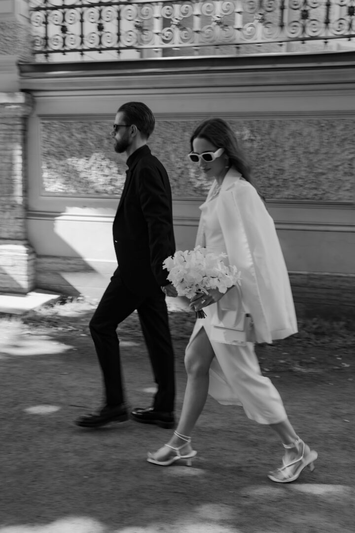 Нам было важно, чтобы в день свадьбы было как можно меньше передвижений по городу. Поэтому апартаменты были выбраны в 5 минутах от площадки. Апартаменты были с выходом на крышу, съемку мы решили организовать именно на ней. Также прогулялись с фотографом от апартаментов до площадки, сделали несколько стильных кадров.