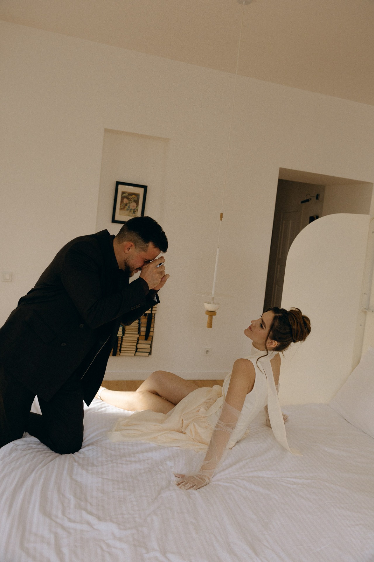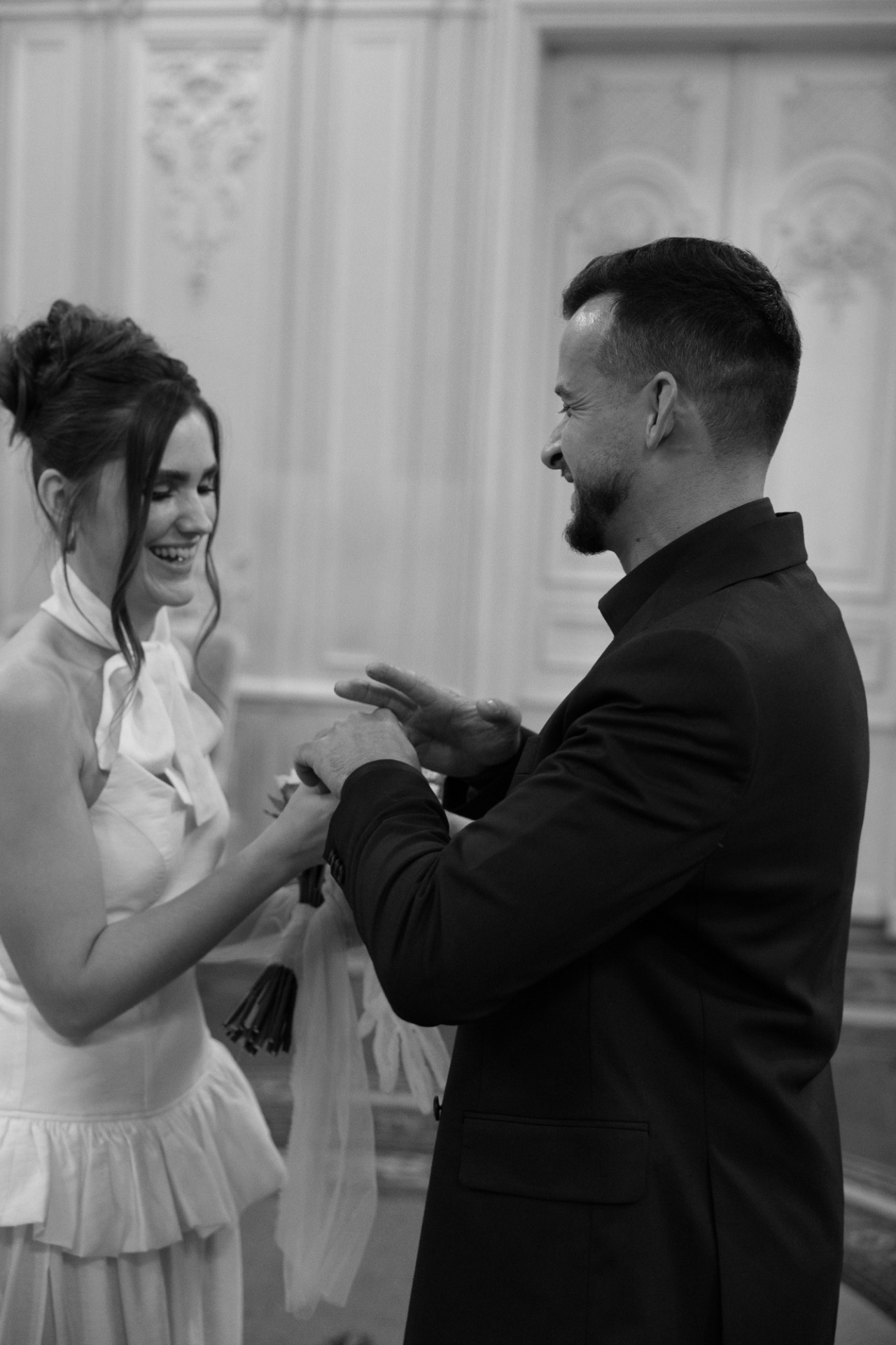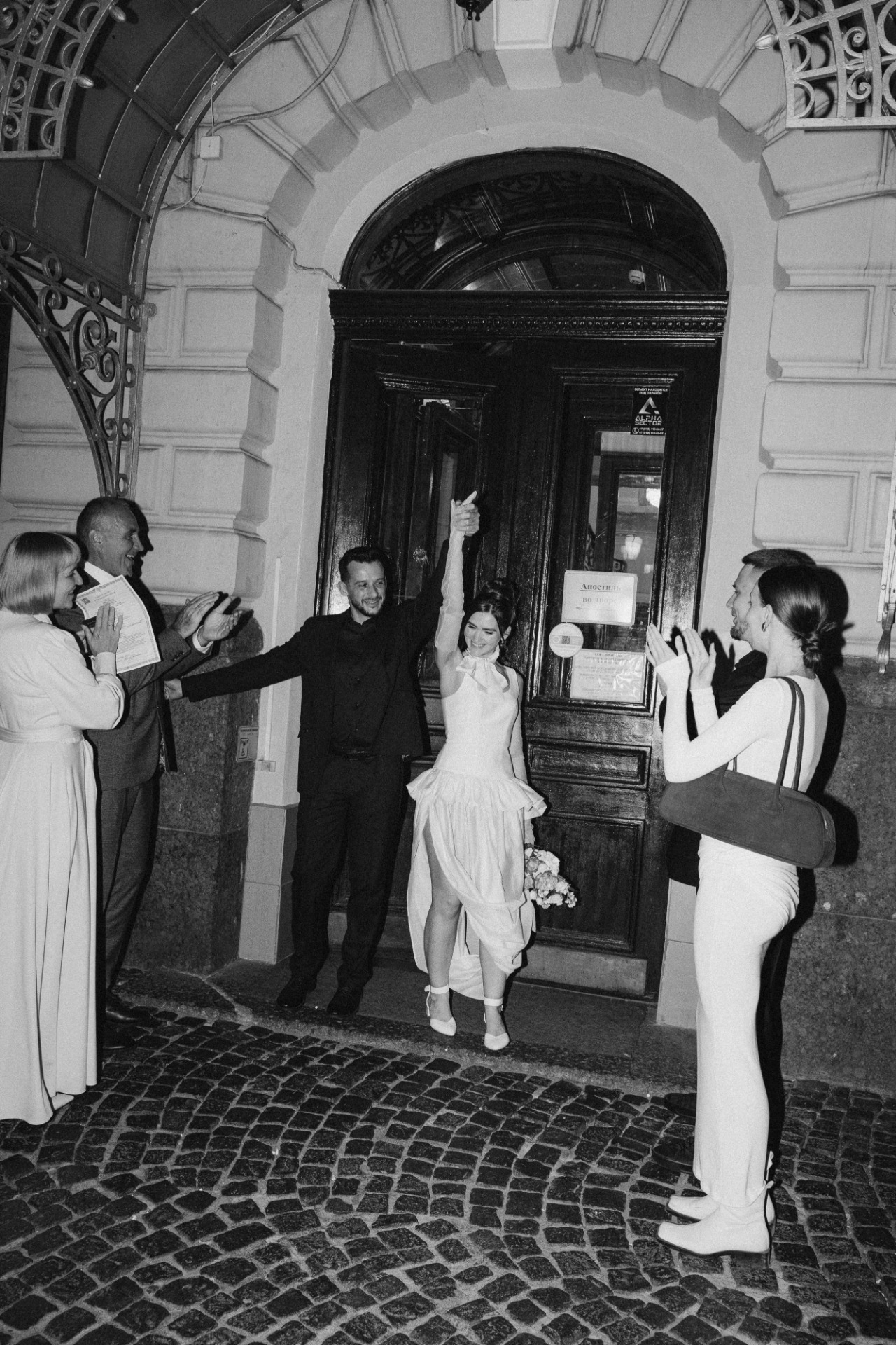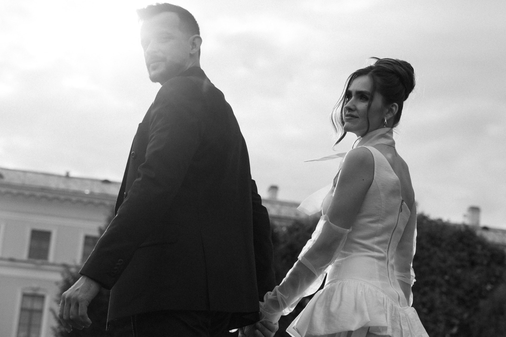 В Петербурге мы готовились без организатора. Из гостей присутствовали только мои родители и пара друзей. На просторах интернета мы нашли фотографа — прекрасную Татьяну Караисаеву, и рилсмейкера — Алину Чернову, и попали в яблочко. Девушки идеально поймали наше настроение и характеры.