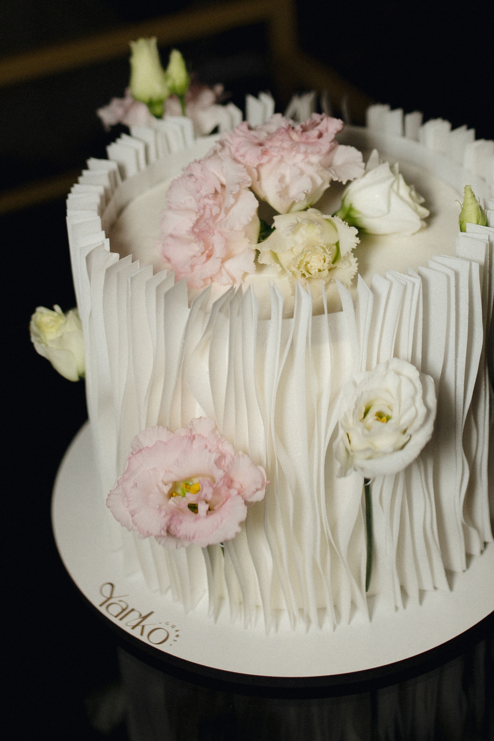 По референсам мы подобрали палитру и все детали оформления. У нас были определённые предпочтения, и в итоге мы остановились именно на них. А торт помог выбрать кондитер.