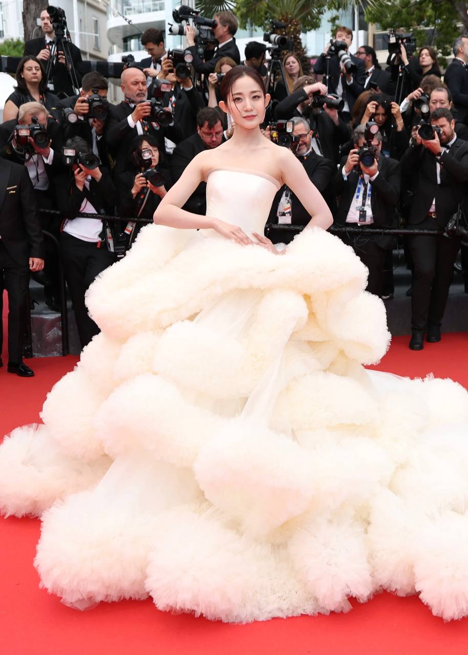 Платье, словно сотканное из облаков, подчёркивало хрупкость и утончённость Ван Цяньхуэй, создавая ощущение, будто она парит над красной дорожкой. Этот смелый выбор не остался незамеченным: несмотря на новые правила, ограничивающие ношение объёмных нарядов, актрисе удалось пройти по красной дорожке без препятствий.
