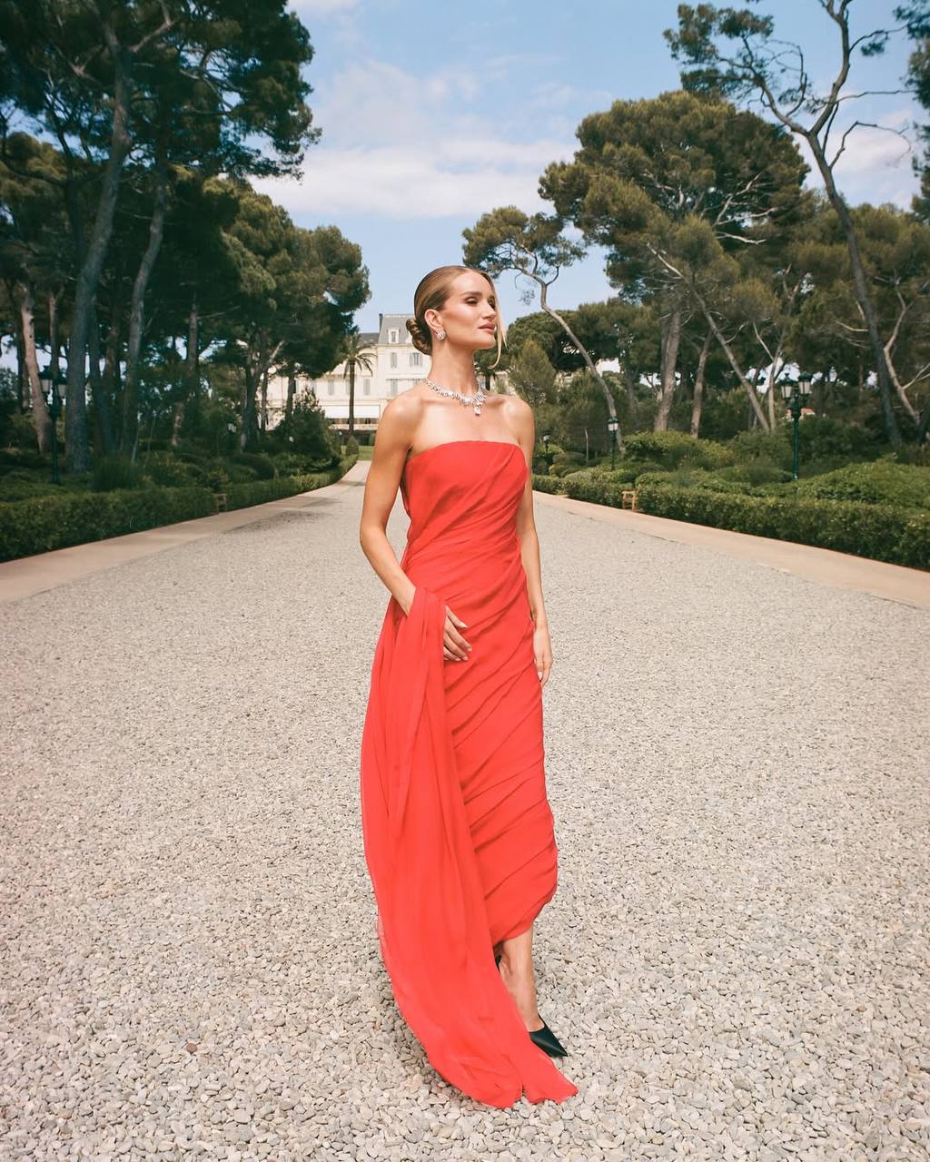 Роузи Хантингтон-Уайтли блистала на красной дорожке Каннского кинофестиваля в роскошном кастомном платье Balenciaga, которое стало воплощением современной гламурной классики.
