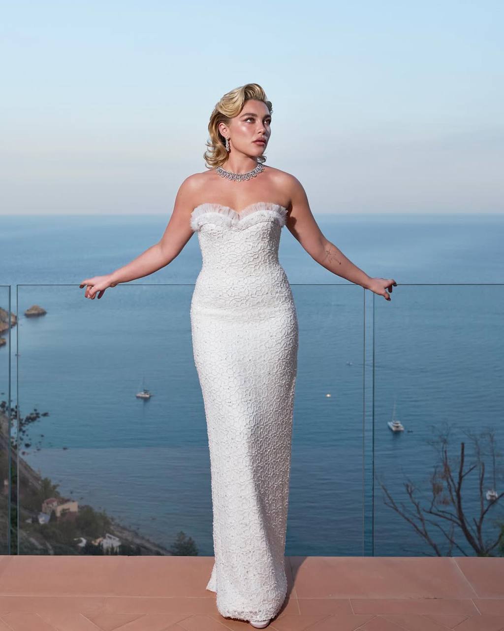 Флоренс Пью поразила публику своим безупречным образом в платье без бретелей.