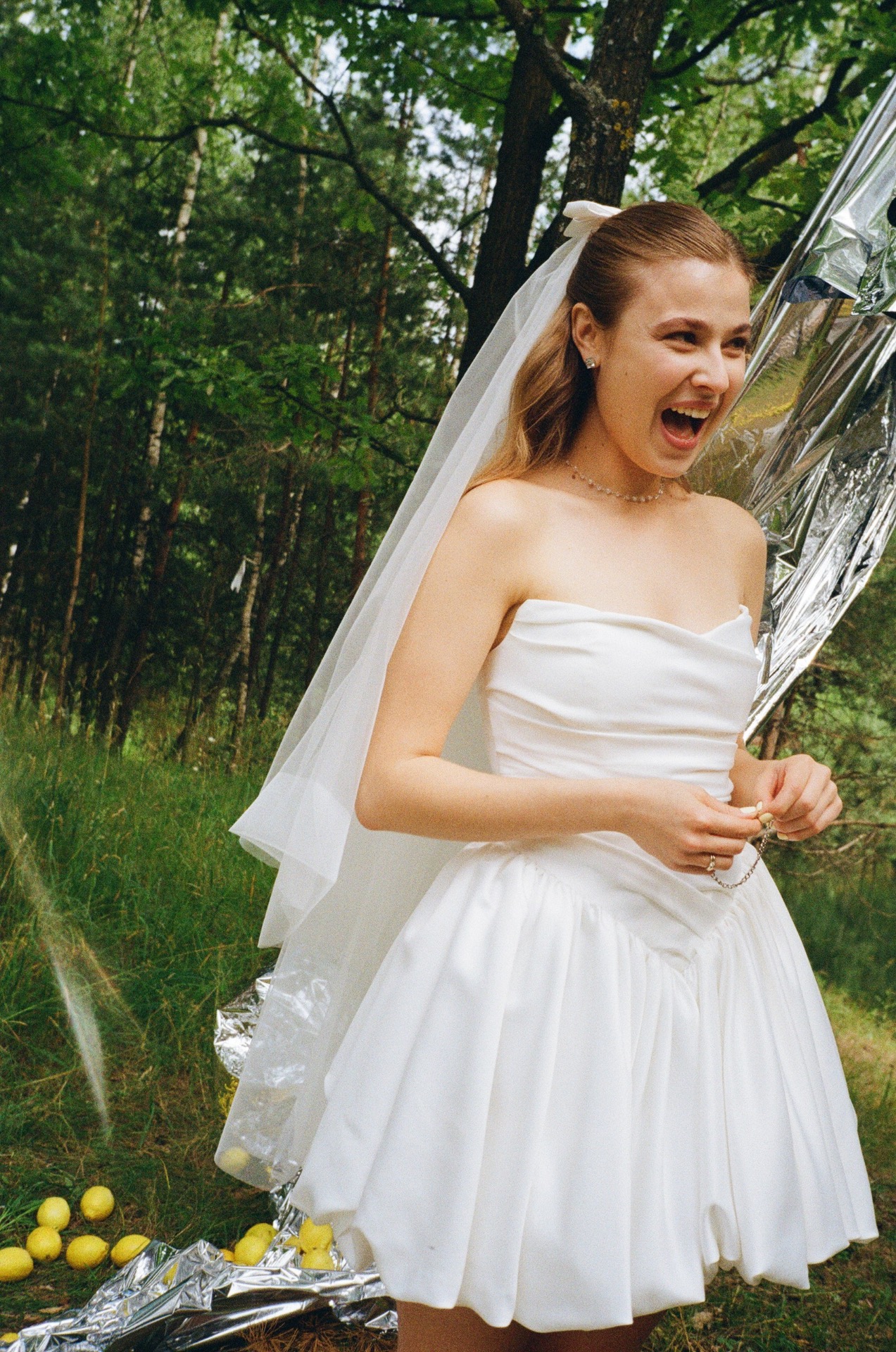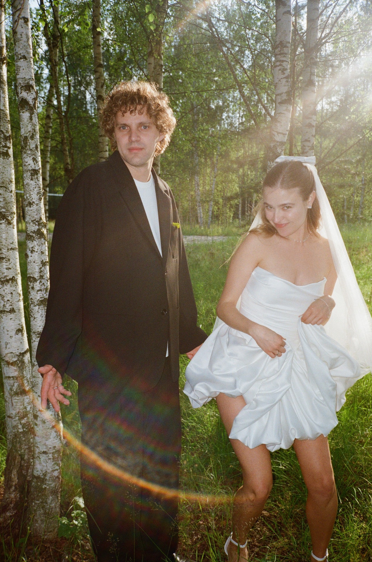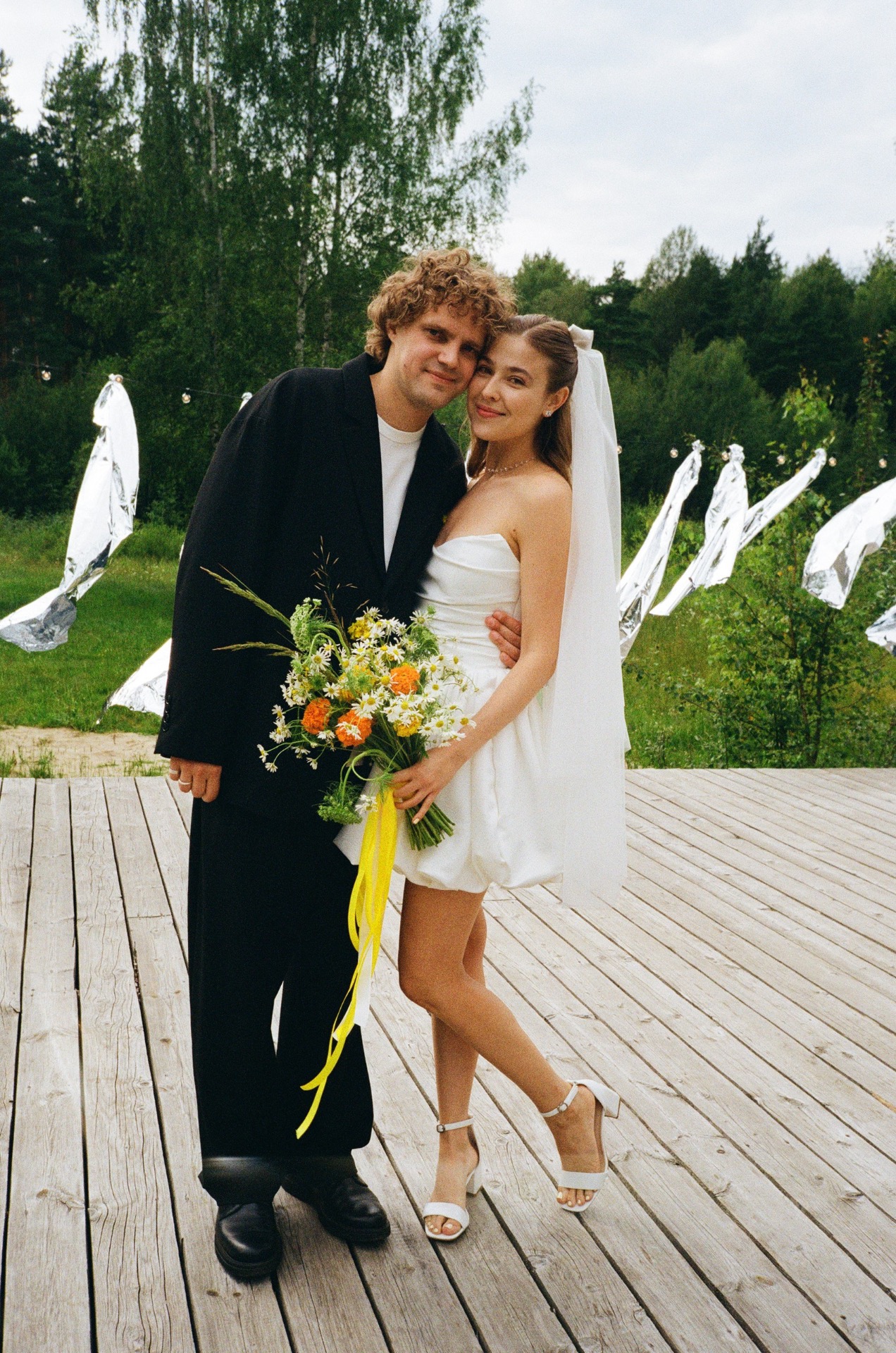 Мы очень просто и быстро выбрали наши образы. Мы сразу знали, как хотим выглядеть: короткое свадебное платье и костюм оверсайз.