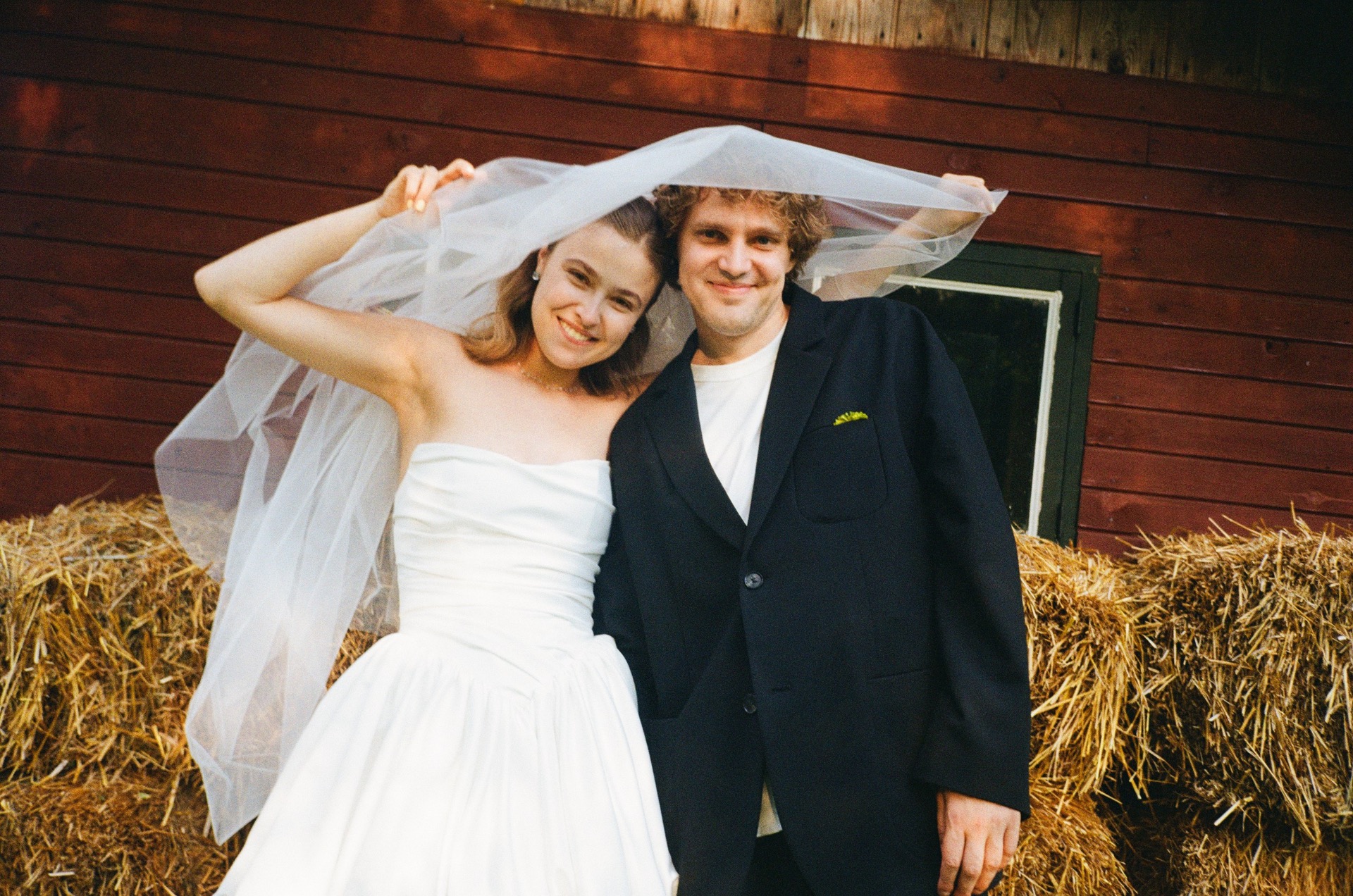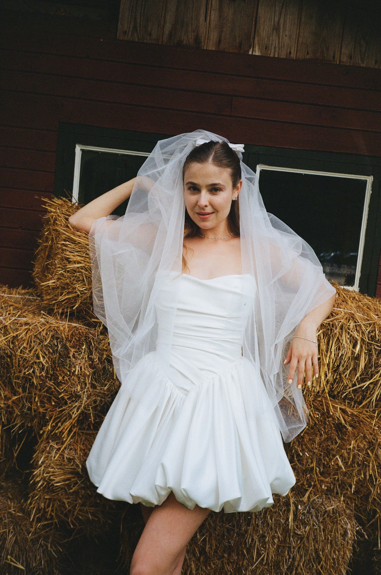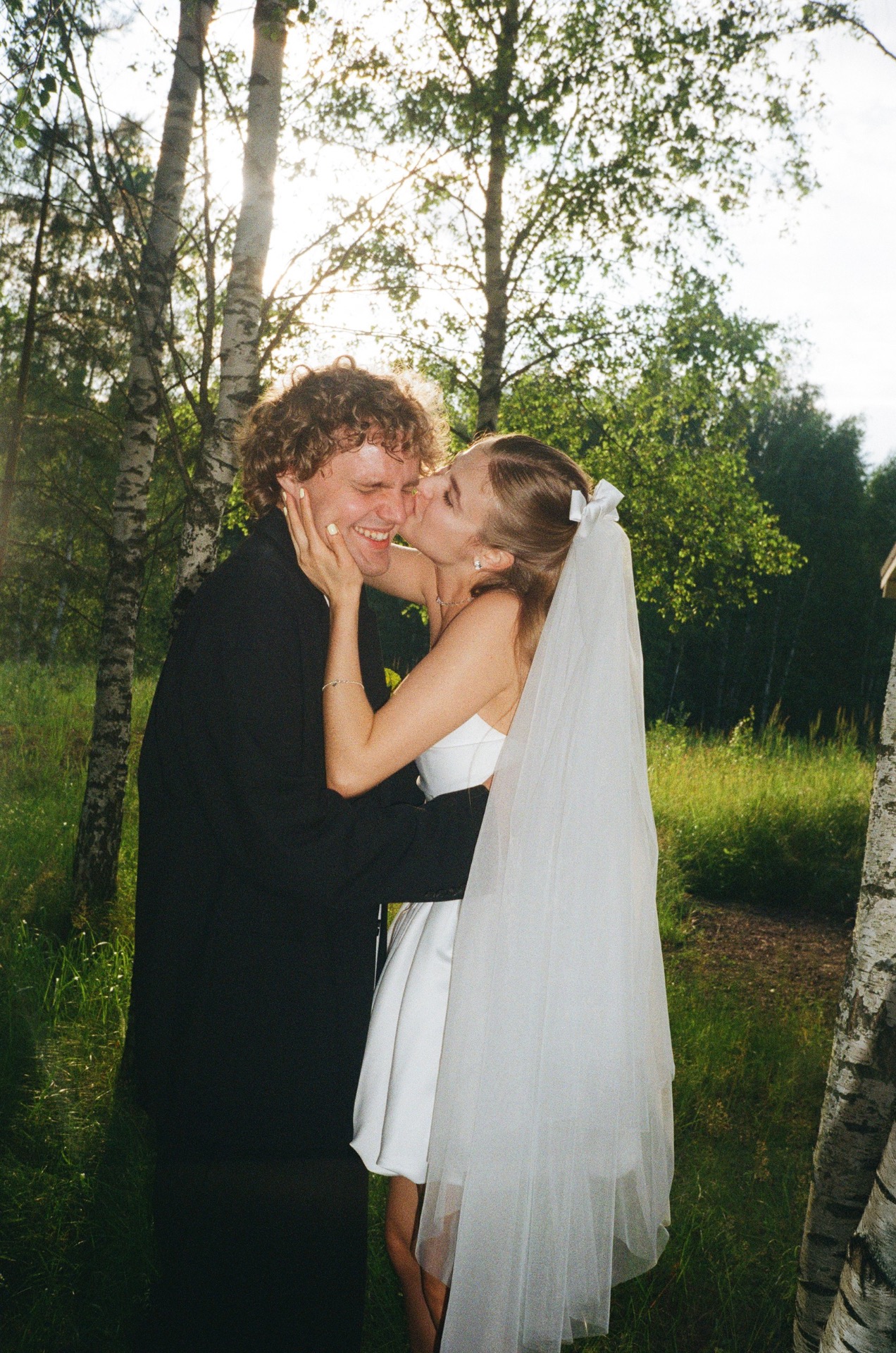 Мы очень просто и быстро выбрали наши образы. Мы сразу знали, как хотим выглядеть: короткое свадебное платье и костюм оверсайз.