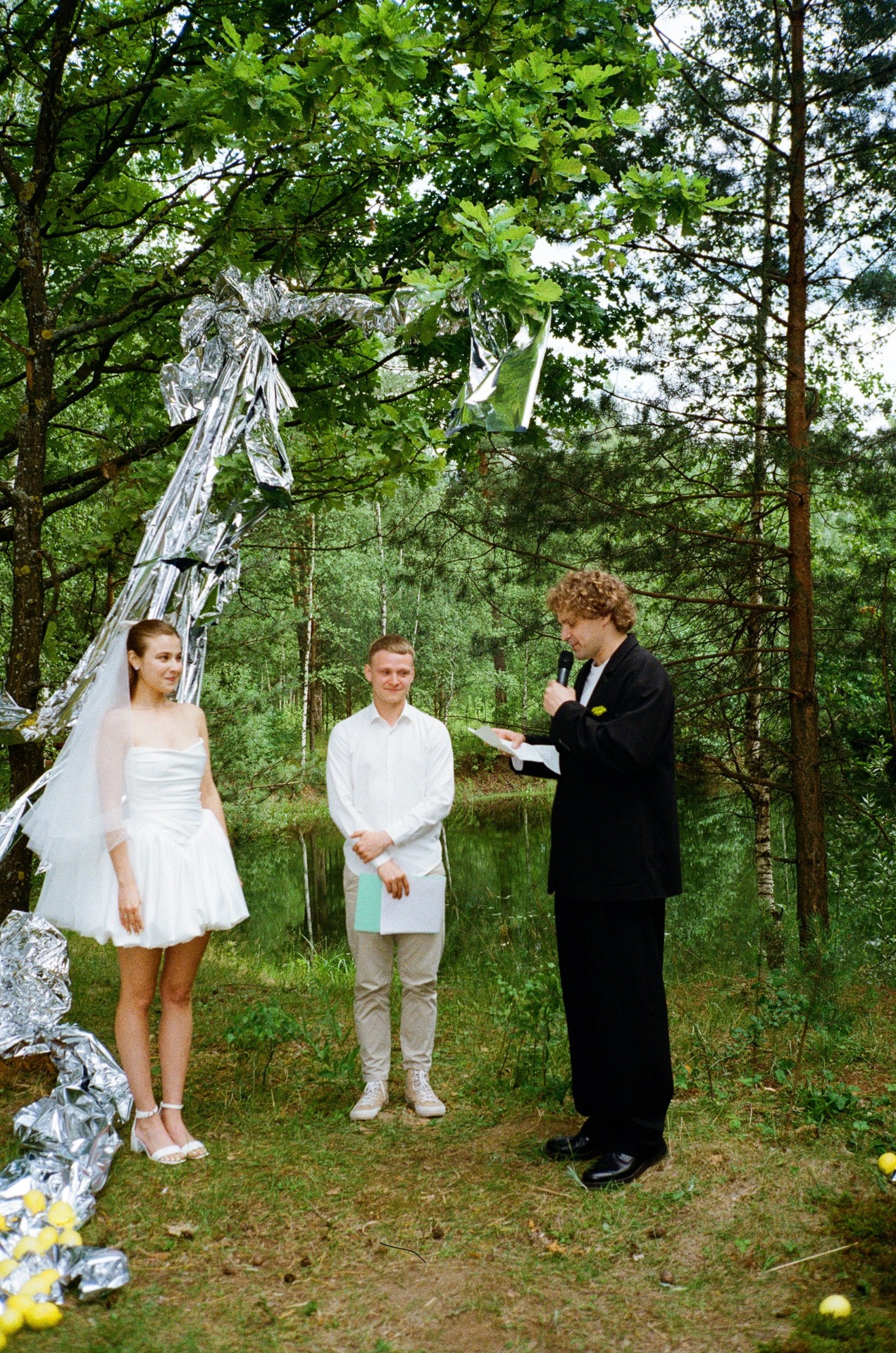 Что касается площадки, мы точно знали, чего не хотим. Не хотелось белых стульев, арок и классики. Мы решили: пусть за эстетику отвечает сама природа. И это оказалось лучшим решением.