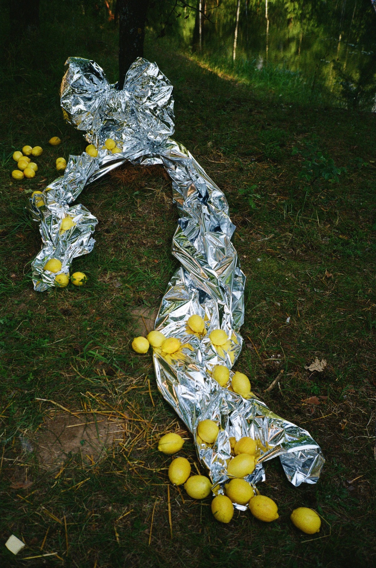 Концепцию свадьбы придумала моя подруга Настя Чернышова. Именно она предложила цветовую гамму, стиль декора, оформление, да и вообще отвечала за всю визуальную красоту праздника. Мы советовались с ней по каждому вопросу: от выбора площадки до моего свадебного платья. В декоре нам хотелось чего-то одновременно классического и неформального, с лёгкой ноткой панка. Поэтому мы выбрали лимоны, бархатцы, свечи, а за «панк» отвечал серебряный фольгированный раннер. Кстати, все свечи, подсвечники и даже цветы были сделаны и выращены руками Насти.