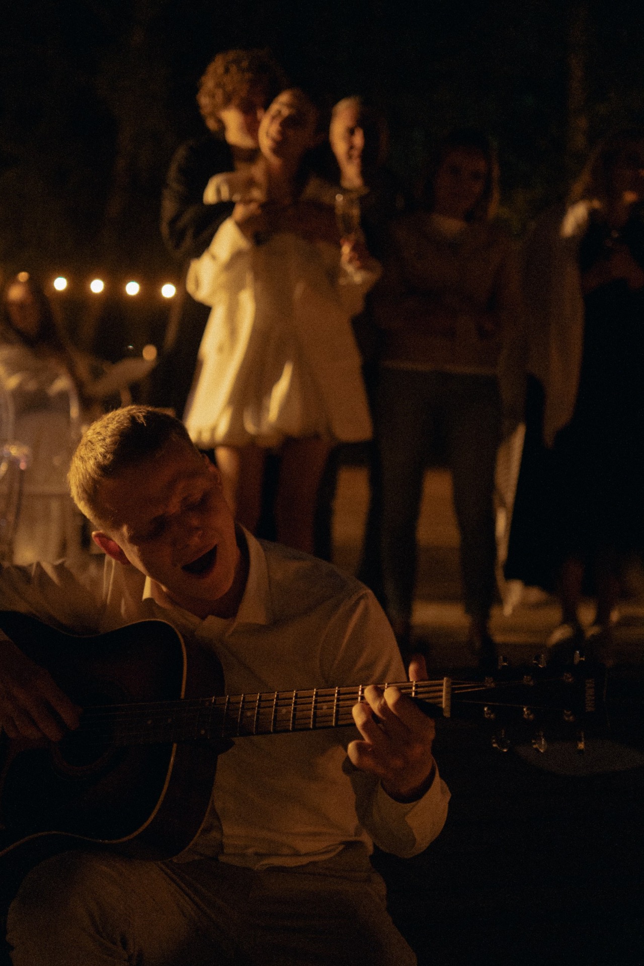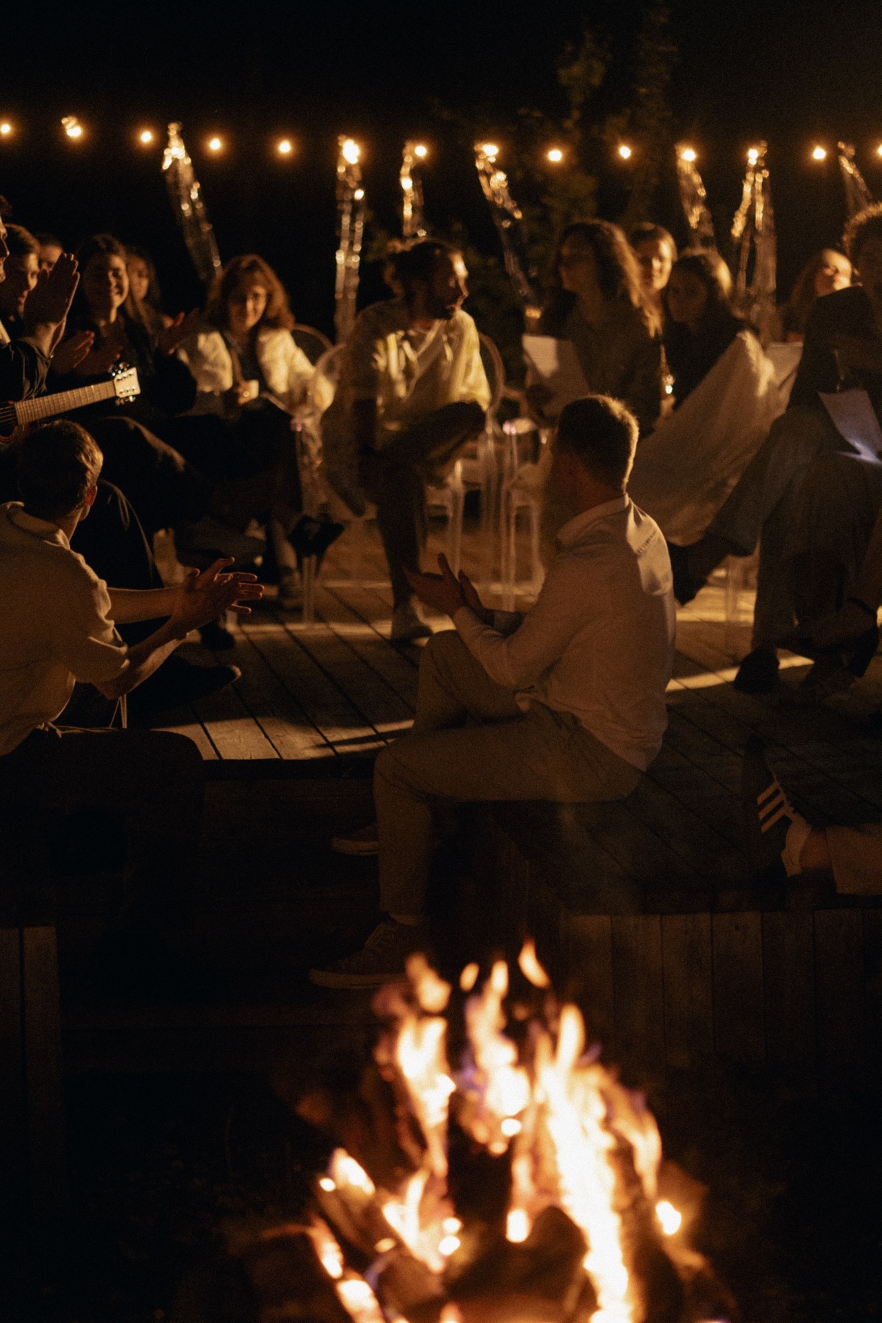 У нас получился вечер, где было место и трогательным моментам, и настоящему отрыву. Гости умилялись нашим записочкам и зажигали на танцполе, плакали на выездной регистрации и смеялись на конкурсе «Зятёк и тёщенька», проникались нашим танцем с родителями и пели во весь голос у костра.