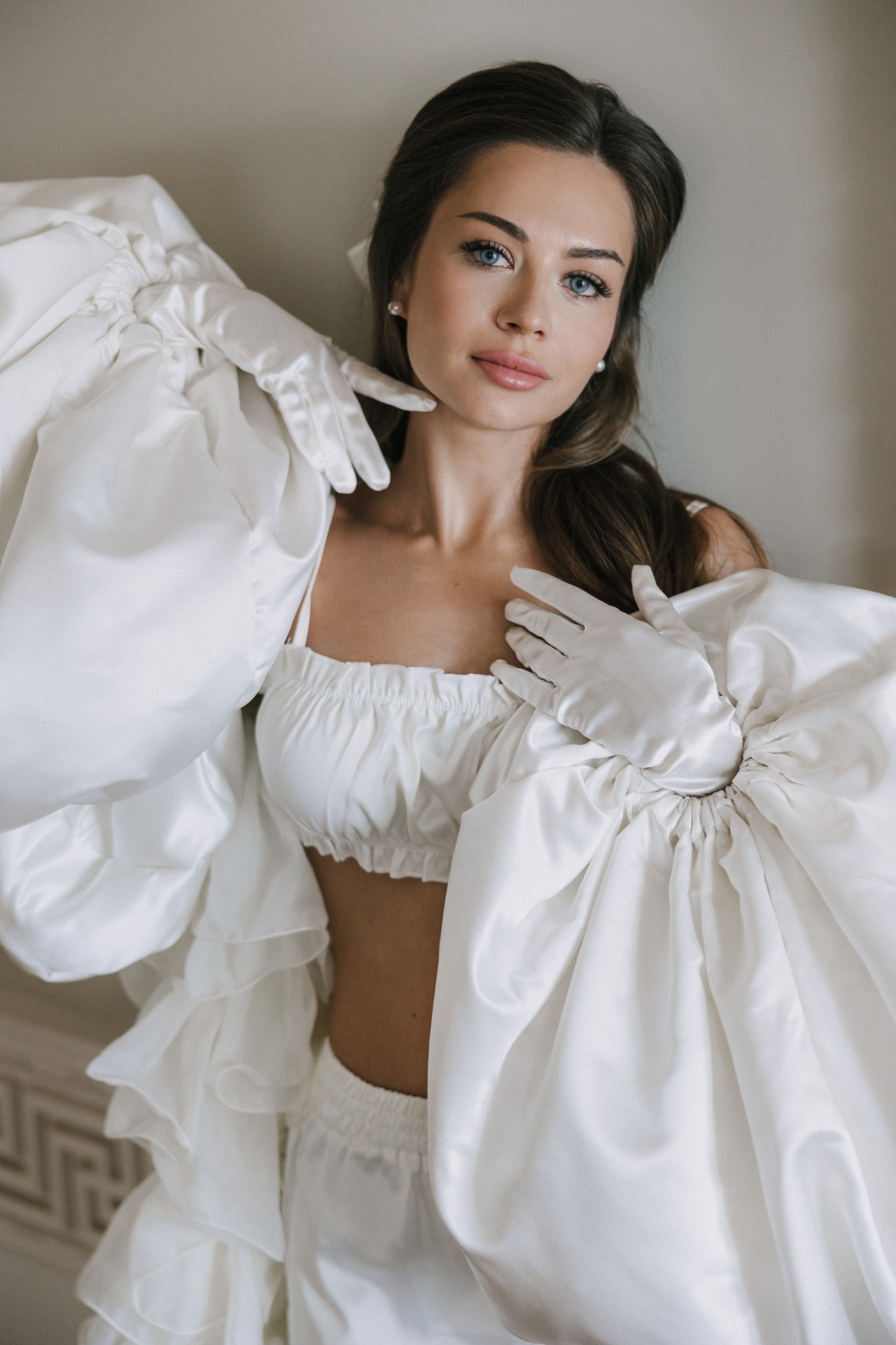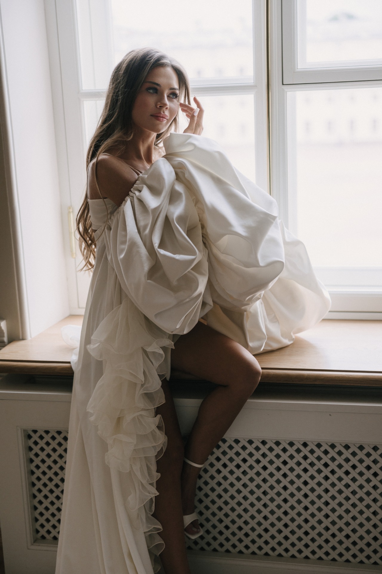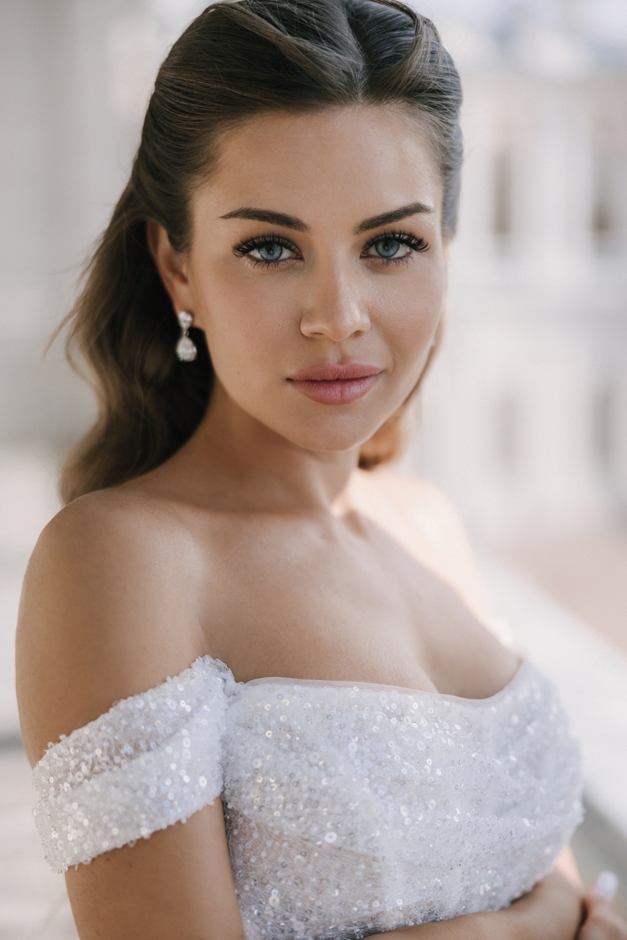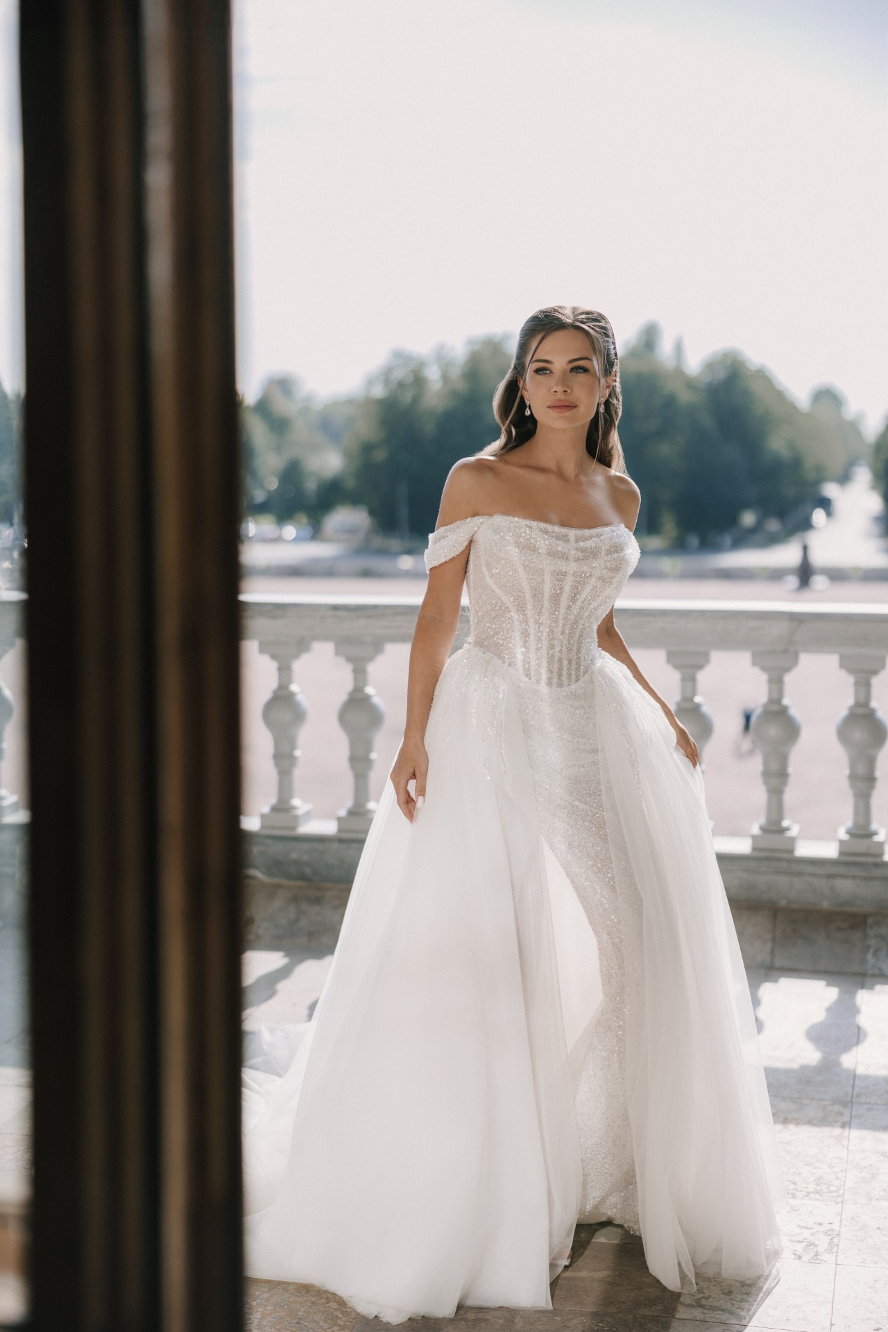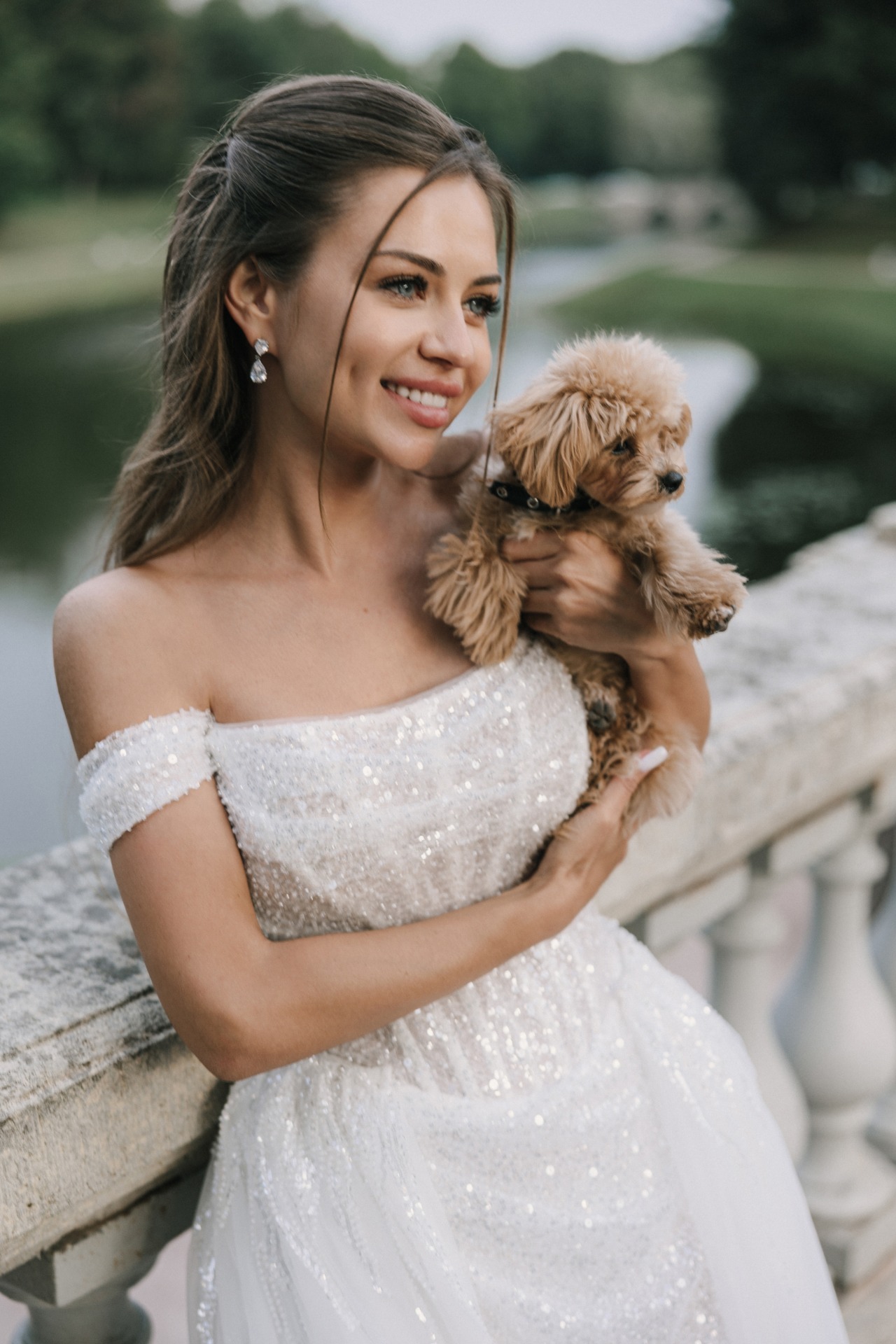 С платьем невесты, конечно, было сложнее. Объехав 5 салонов и перемерив больше 100 платьев, я, наконец, нашла то самое, в салоне Мэри Трюфель. Я долго не верила, когда слышала истории о том, что сразу понимаешь — это оно! Как раз так со мной и случилось. Такое, как я хотела — блестящее, с вырезом по ноге, корсет сел идеально. Добавили съёмную пышную юбку от другого платья — волшебно!