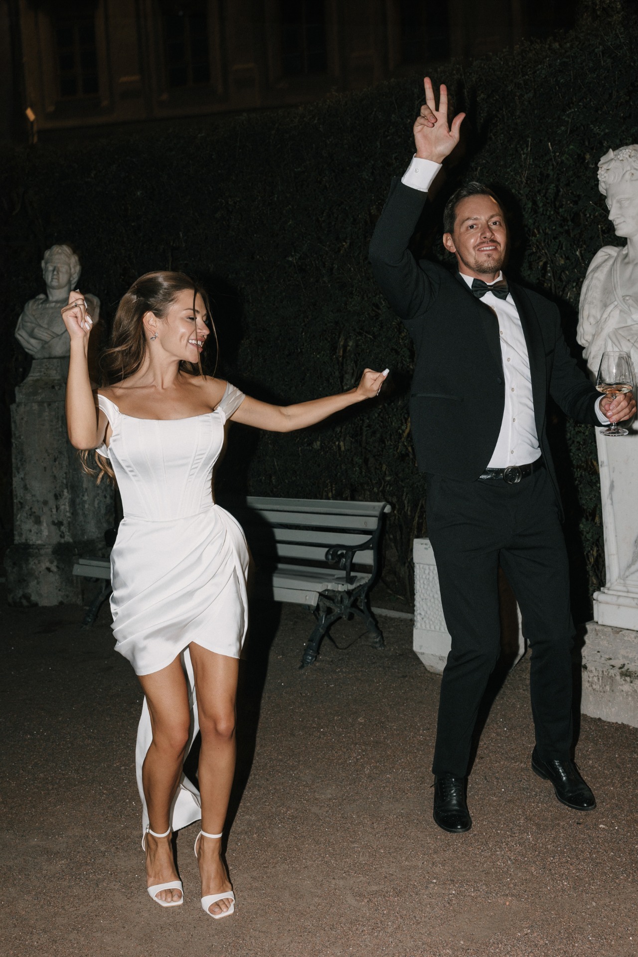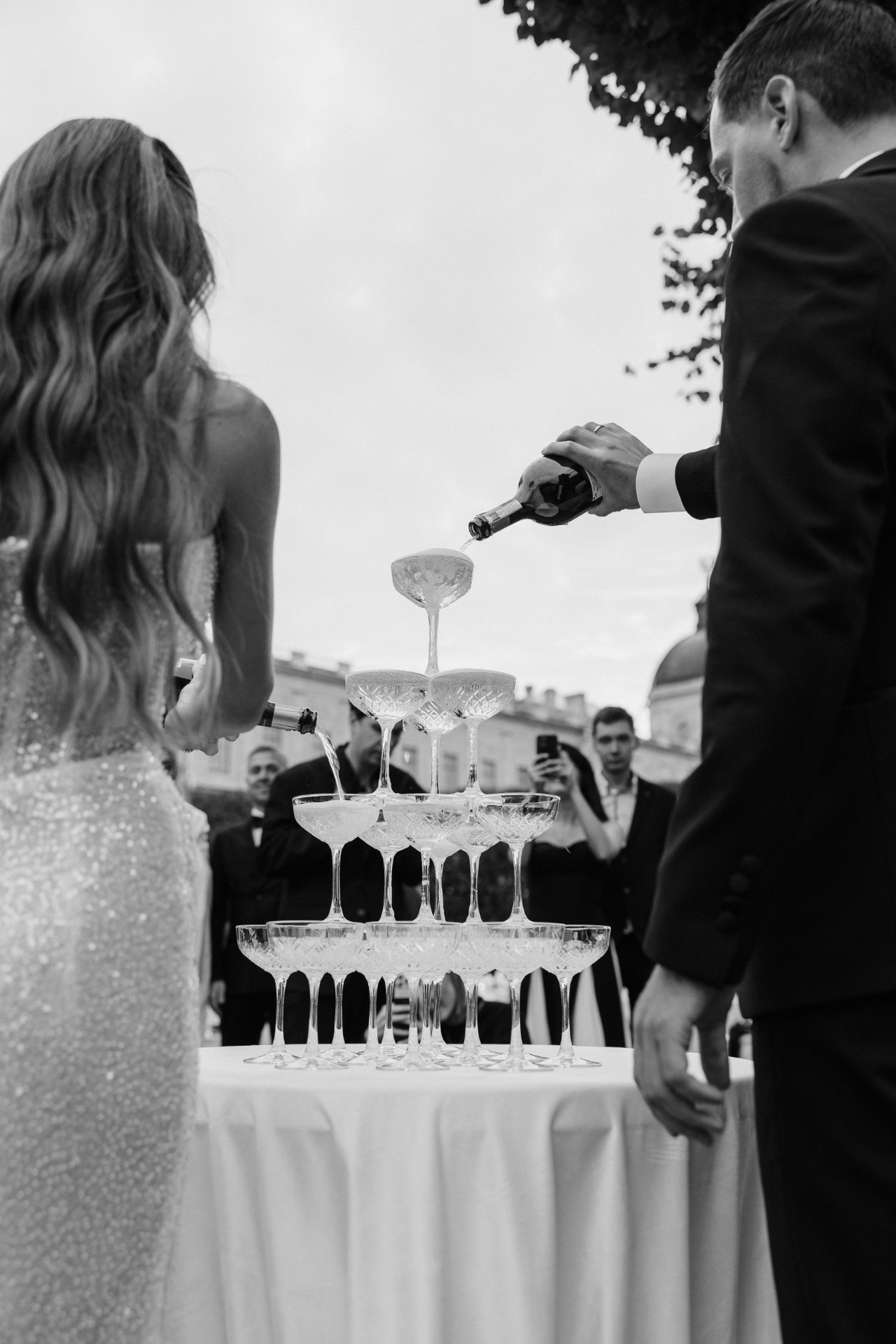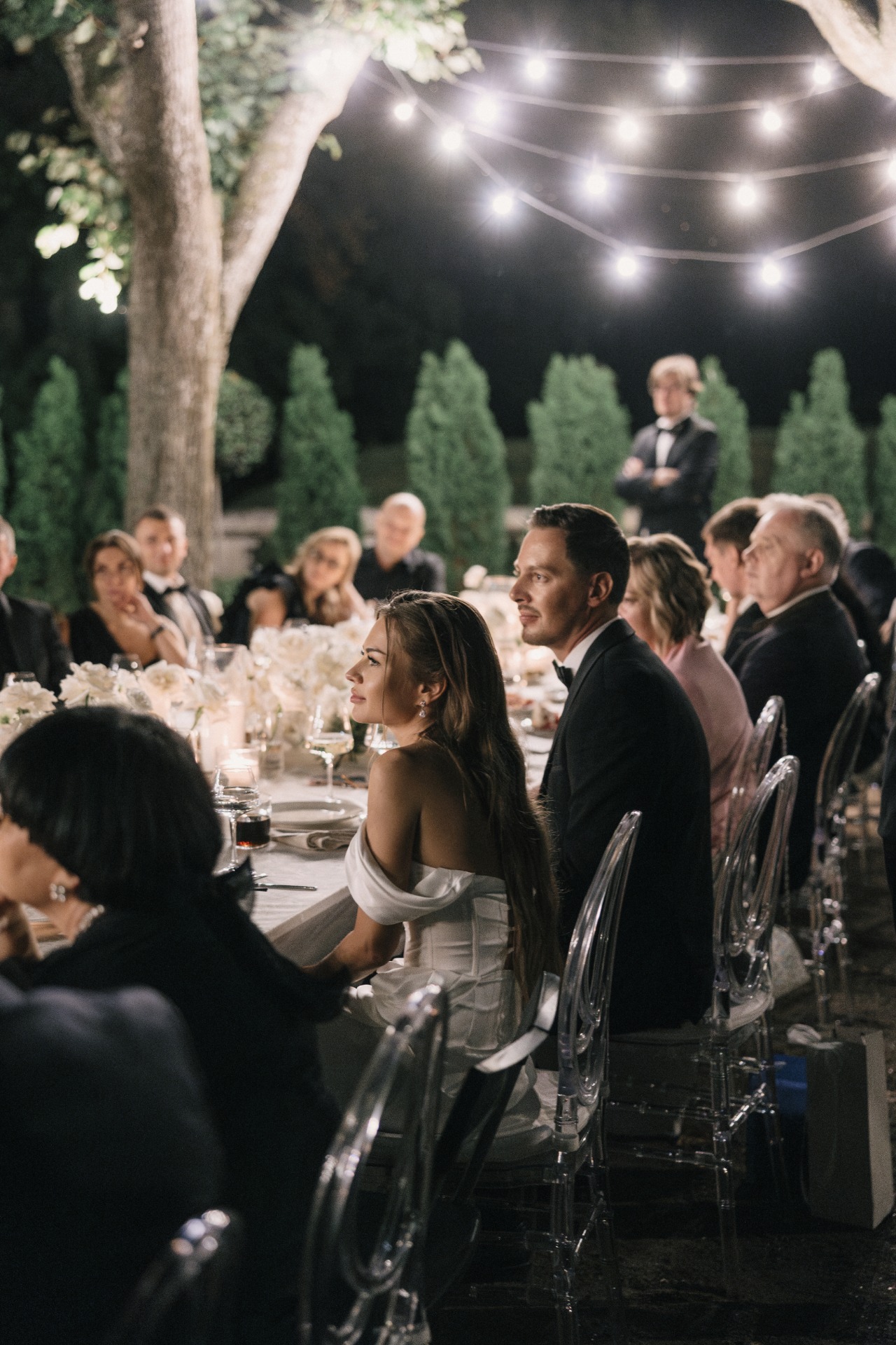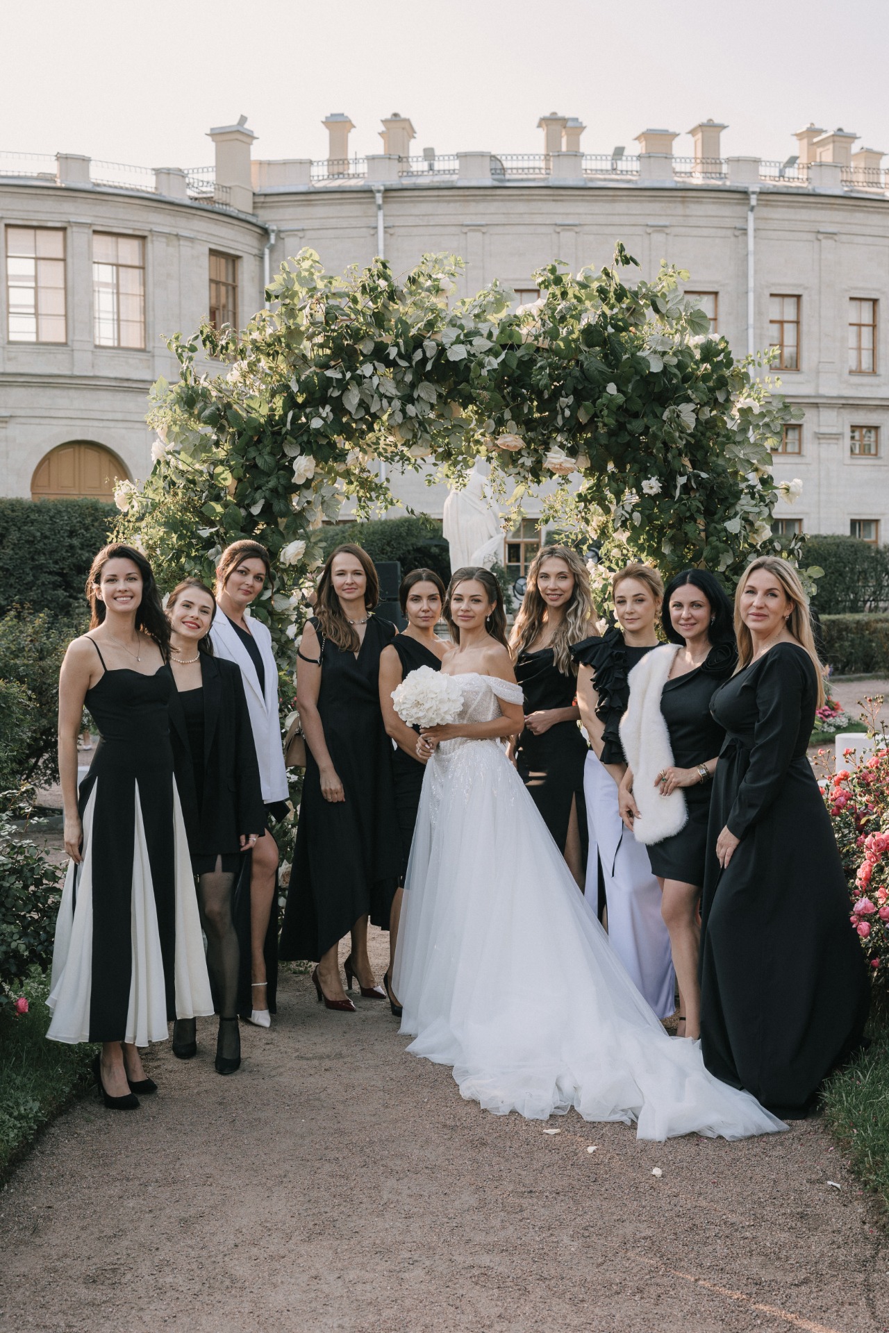 Я хотела лаконичный визуал, где гости одеты в чёрно-белую палитру, а детали декора и флористики исключительно белые.