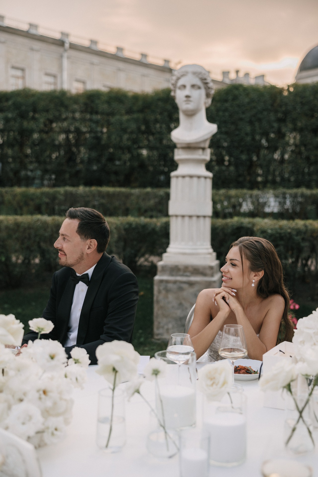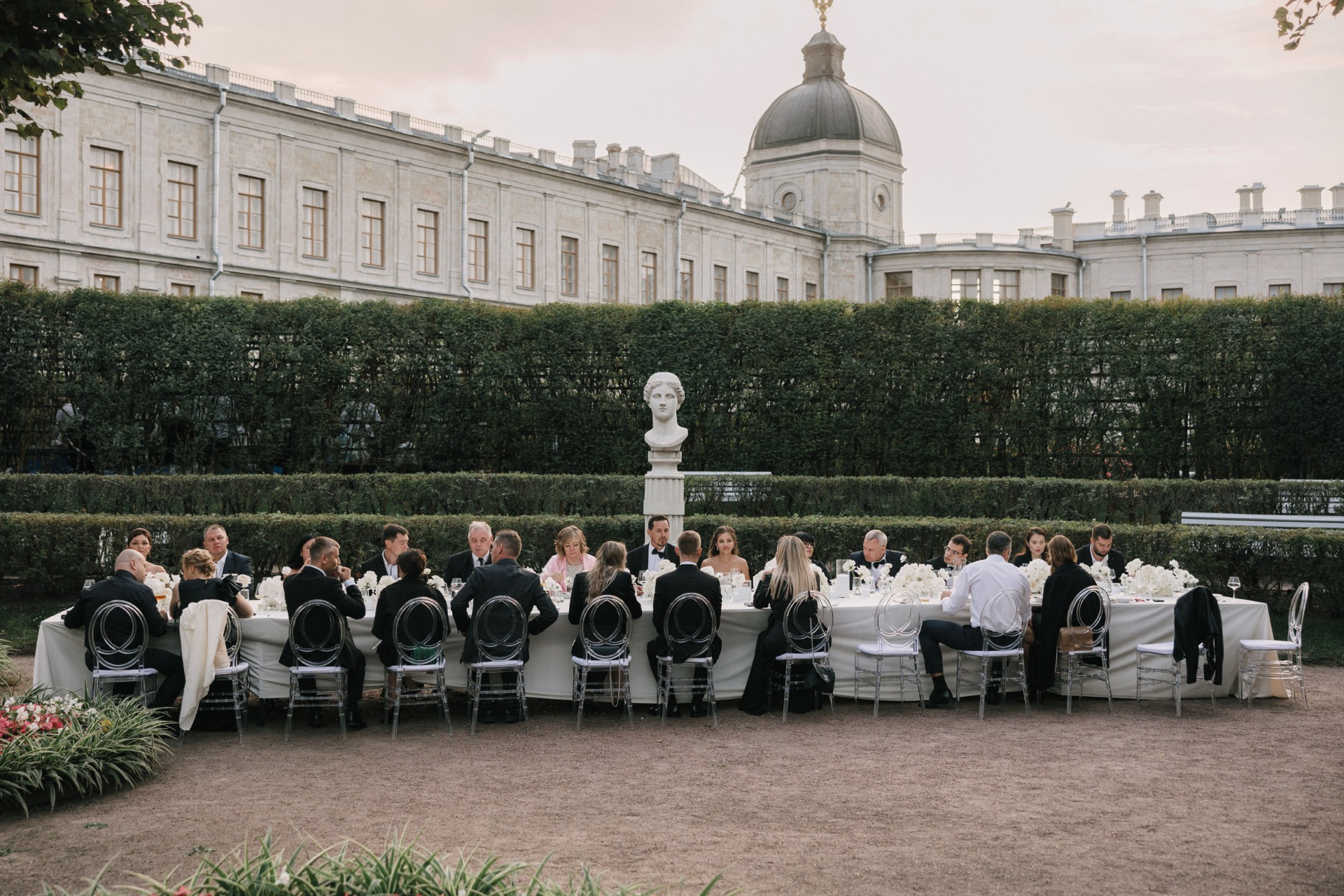 Когда мы начали встречаться, поехали гулять в Гатчинский дворец. Нам обоим там до безумия понравилось, поэтому локацию для торжества мы выбрали сразу. Я стала искать организаторов, кто уже там работал, так я нашла Лину Wedline. Учитывая сжатые сроки и большой риск плохой погоды в случае проведения свадьбы на улице, Лина долго сомневалась, но всё же согласилась. Благодаря тому, что у организатора есть чёткий список дел и задач, подготовка становится структурированной и не такой трудной, как кажется изначально.