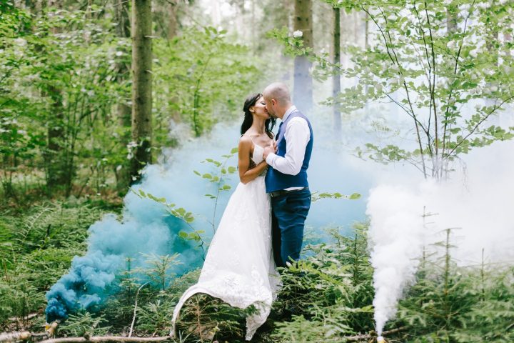 Давным-давно я увидела фото в инстаграмме. На фото были жених в костюме с расстегнутой рубашкой, на невесте — простое струящееся платье на бретельках и с V-образным вырезом. На заднем плане — маленький деревянный домик весь в желтых огоньках. Это фото запало мне в душу, я решила, что хочу так же.