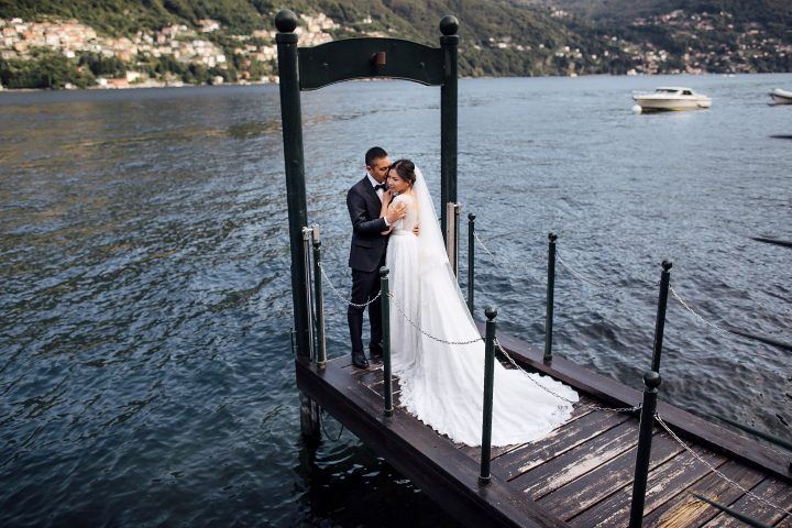 Мы вернулись на виллу, а там уже был организован аперитив для нас и нашей команды. В расслабленной обстановке мы обсуждали этот день, фотографировались и общались по душам. А в жасминовой беседке нас ждал романтический ужин для двоих. Это было словно во сне: озеро, горы, свечи, роскошно сервированный стол… Мне кажется, именно такой и должна быть свадьба, когда вспоминаешь — и мурашки по коже, как будто все происходящее было не с тобой.
