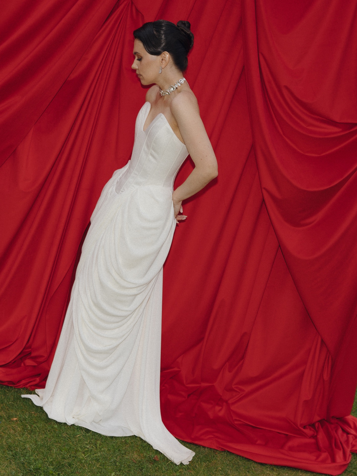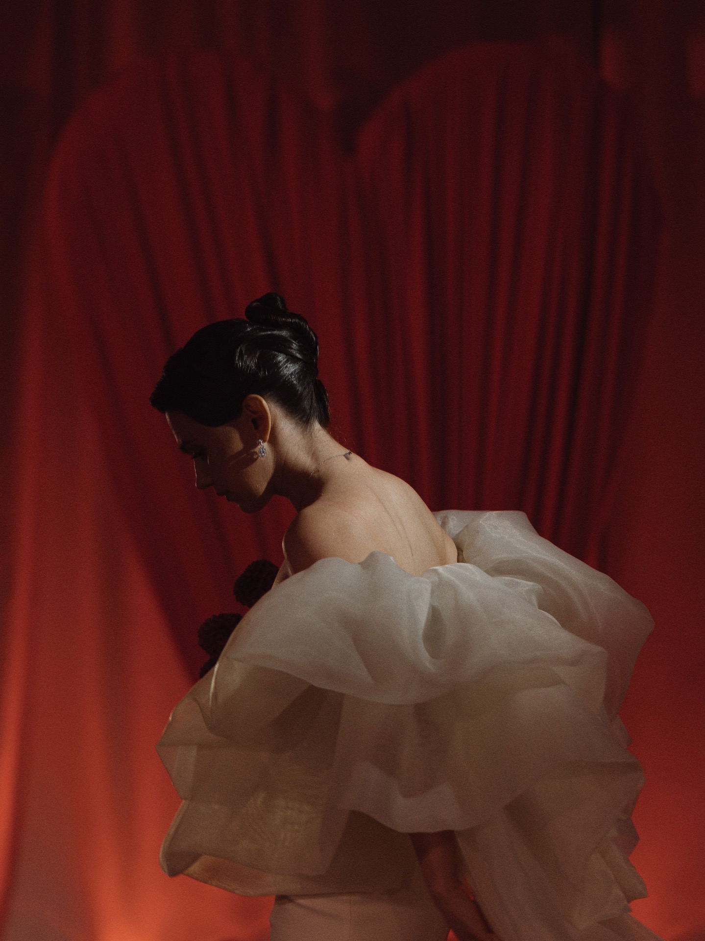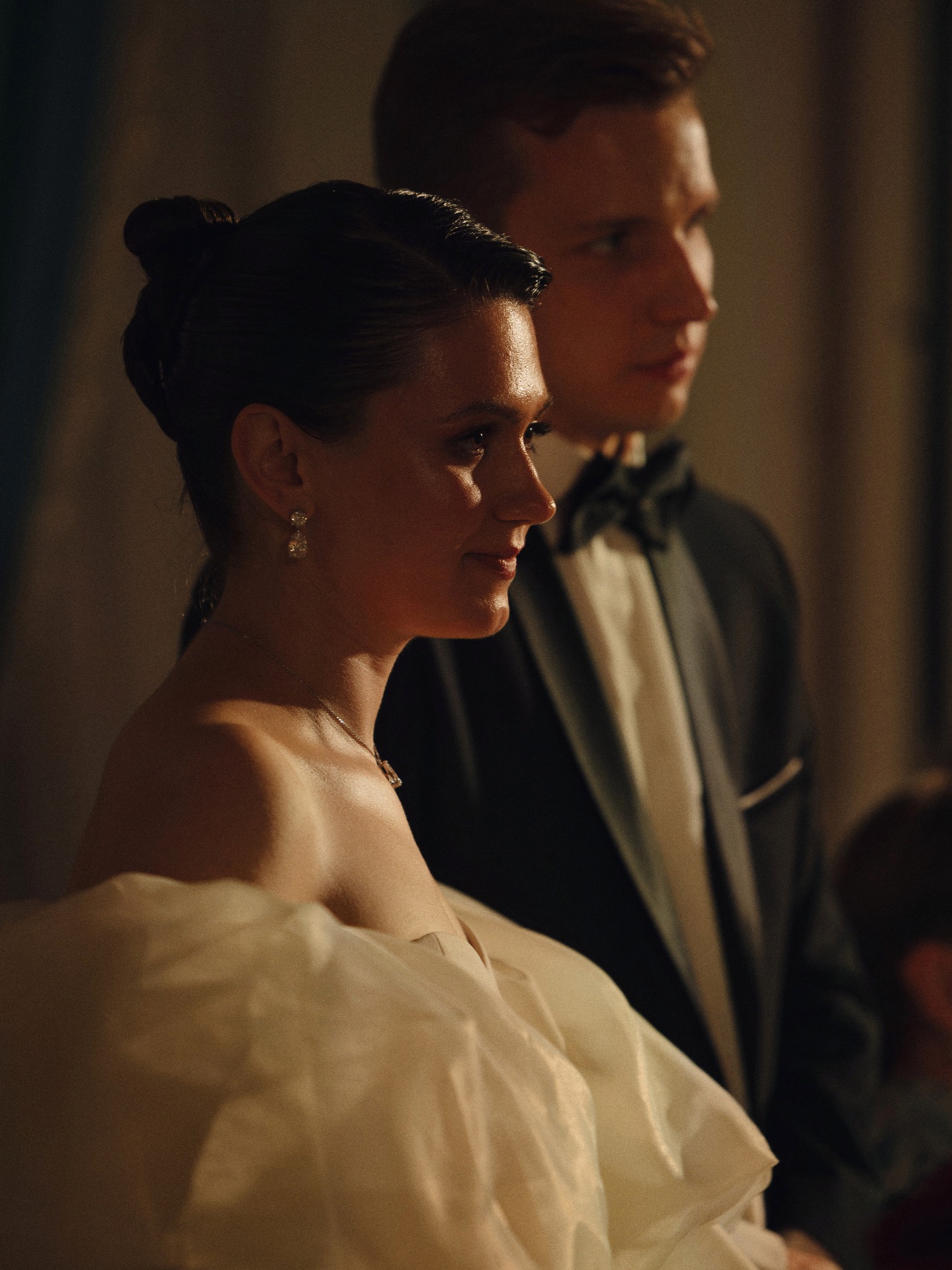 Мой образ сложился так же интуитивно. Я увидела новую коллекцию бренда 1811, поехала примерить платье и накидку, и просто поняла, что это оно. Без бесконечных салонов и мучительного выбора: лёгкость, естественность, немного воздушности – всё, что я хотела передать в этот день.