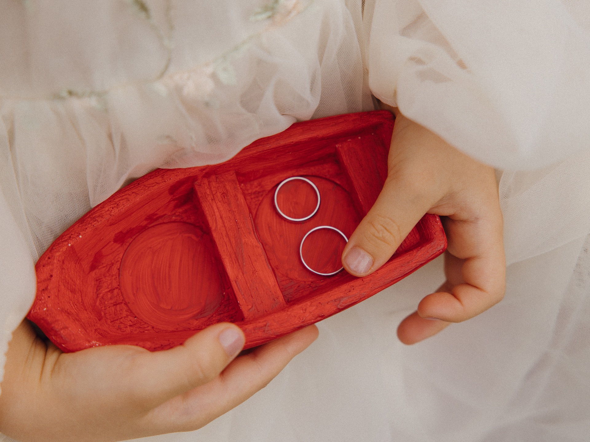 Церемония была трогательной. К алтарю меня выводил папа, для меня это был один из самых важных моментов дня. А кольца для нас выносила моя крестница Влада в маленькой лодочке, точной копии той, на которой прошла наша первая встреча.
