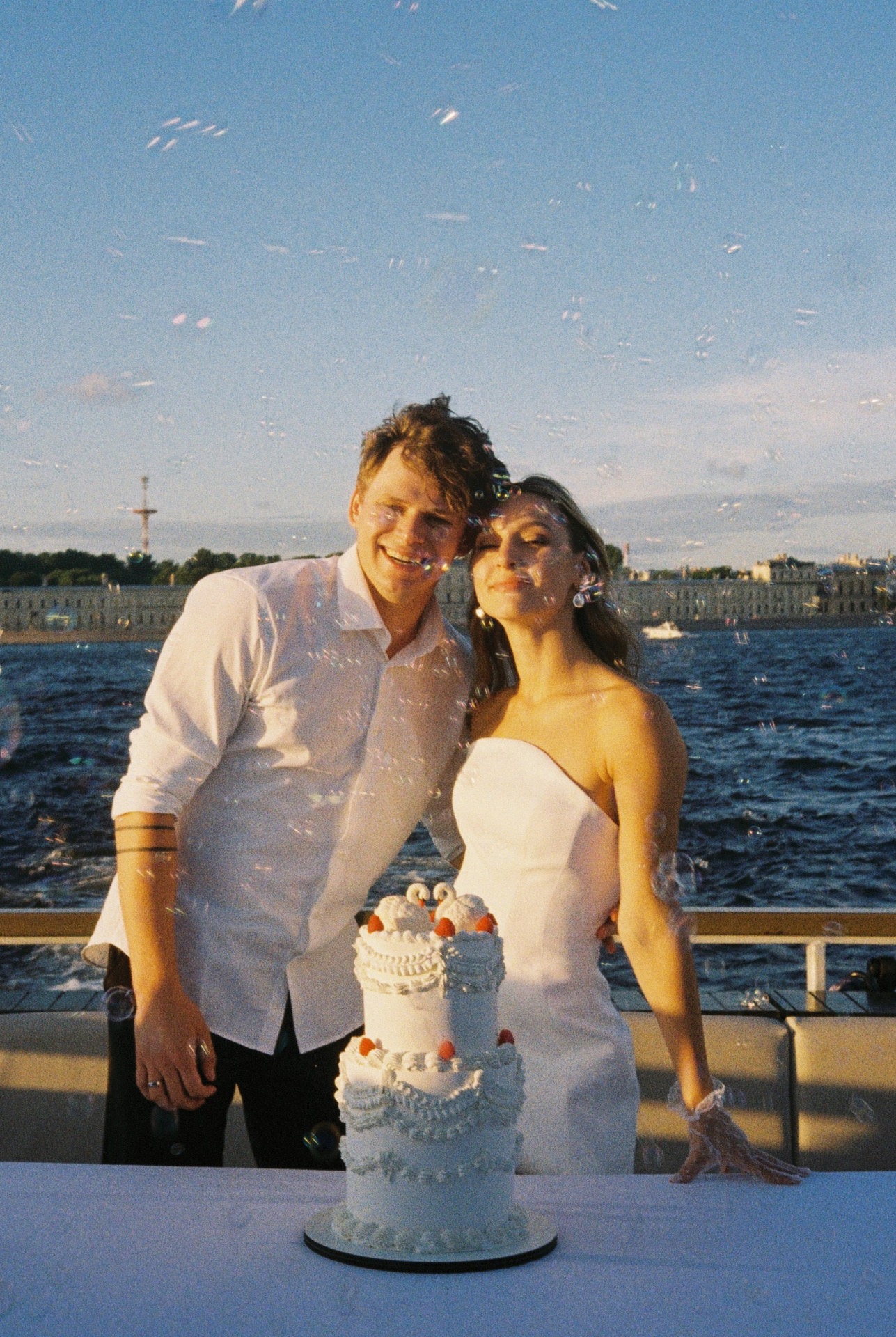 Вечером были конкурсы и наш первый танец под песню «Эхо любви», который растрогал даже самых стойких. А финалом вечера стали торт, мыльные пузыри и танцы на закате с шикарным видом на вечерний Петербург.