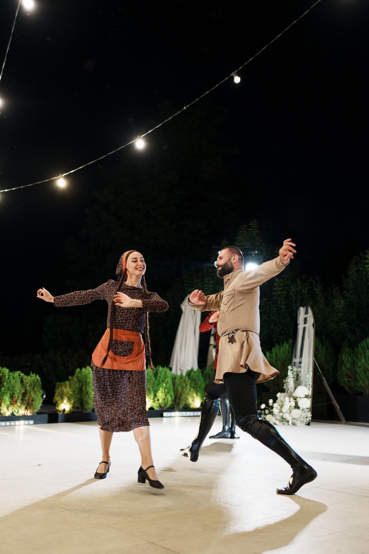 Вечером были жаркие танцы, мастер-класс по грузинским танцам и наш с Максимом подготовленный танец — бачата. Потом красивый салют и торт.