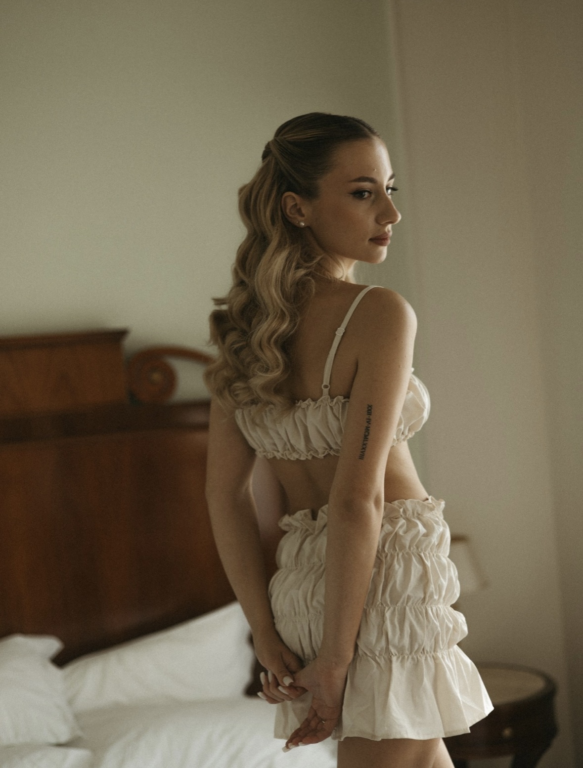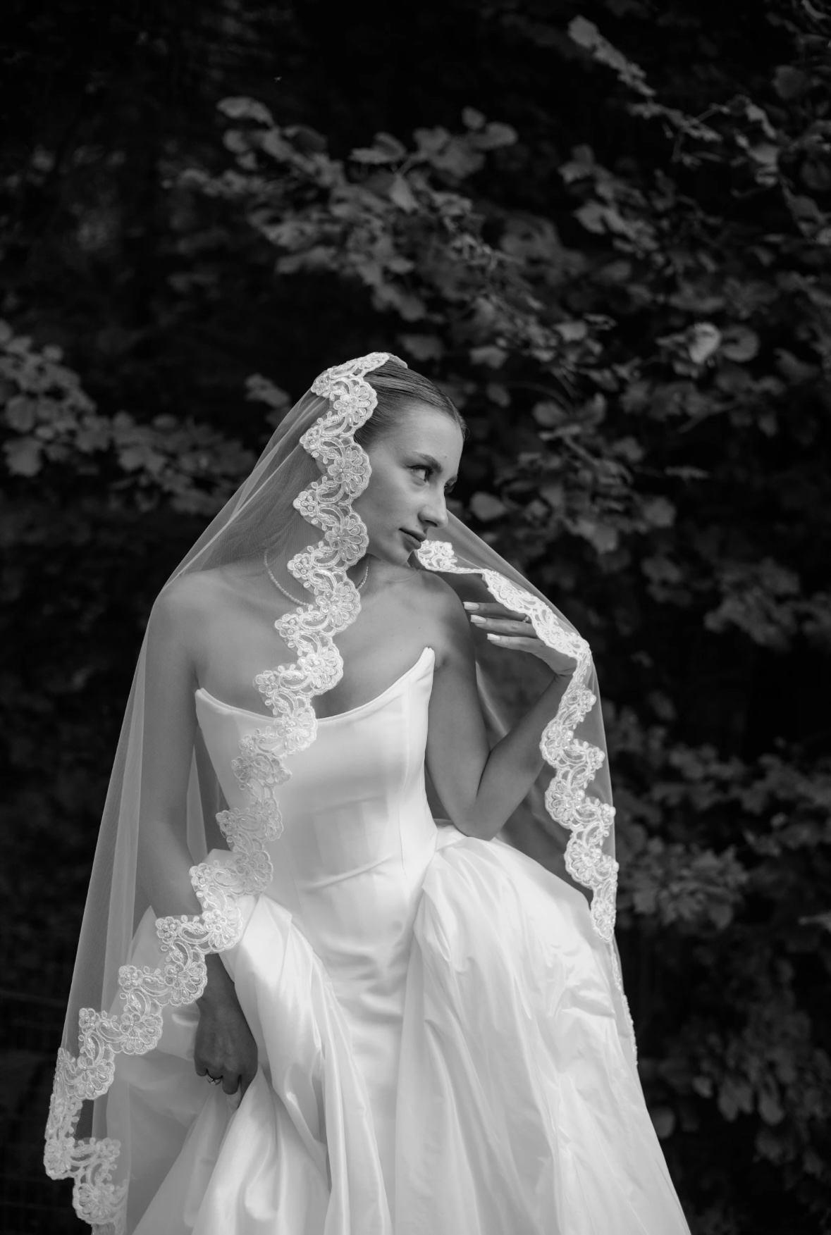 У меня было желание добавить в нашу лесную сказку утончённую классику. Во время примерок платьев у меня не было чётких критериев для моего наряда. Я просто хотела, чтобы оно напоминало платье принцессы, но при этом не было чересчур роскошным и блестящим.