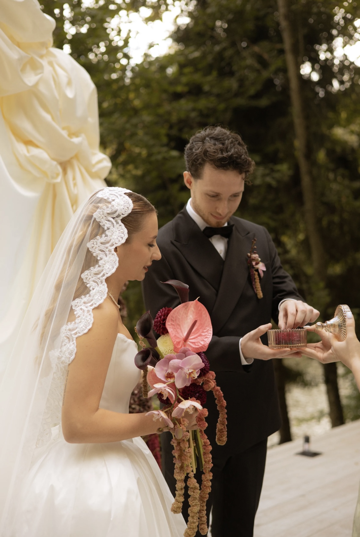 Нам хотелось создать что-то неординарное, с интересными решениями и необычной палитрой. Каролина с её командой помогли упаковать нашу идею в полноценную концепцию и воплотить её в жизнь. Нам было по-настоящему интересно участвовать во всех этапах подготовки: от выбора торта до постановки первого танца.