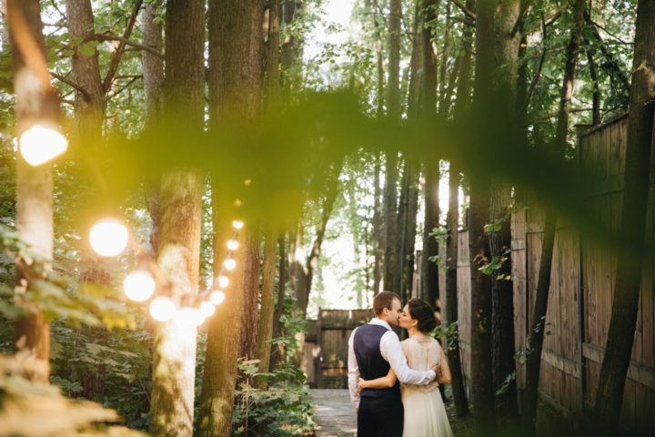 Для нас было очень важно, чтобы свадьба была в летнее время года и на свежем воздухе, поэтому рестораны мы отбросили сразу же. Хотелось чего-то зеленого, тихого и с большой территорией. По этим критериям отлично подошла свадебная площадка «Лесной Берег». Еще одним ее плюсом было то, что находится она в пределах МКАД. Так как в жизни я очень далека от классики, нежности, именно цветовую гамму свадьбы очень хотелось сделать нежной, воздушной и романтичной. Поэтому преобладали белые и пудрово-розовые цвета в декоре. Мой образ состоял из двух комплектов – платье и костюм на вечернюю часть торжества. Образ мужа был классическим – брюки, рубашка и жилет. Приглашения были сделаны в виде посадочных билетов на самолет, так как я работаю бортпроводником, и нам показалось это классной и нетипичной идеей.
