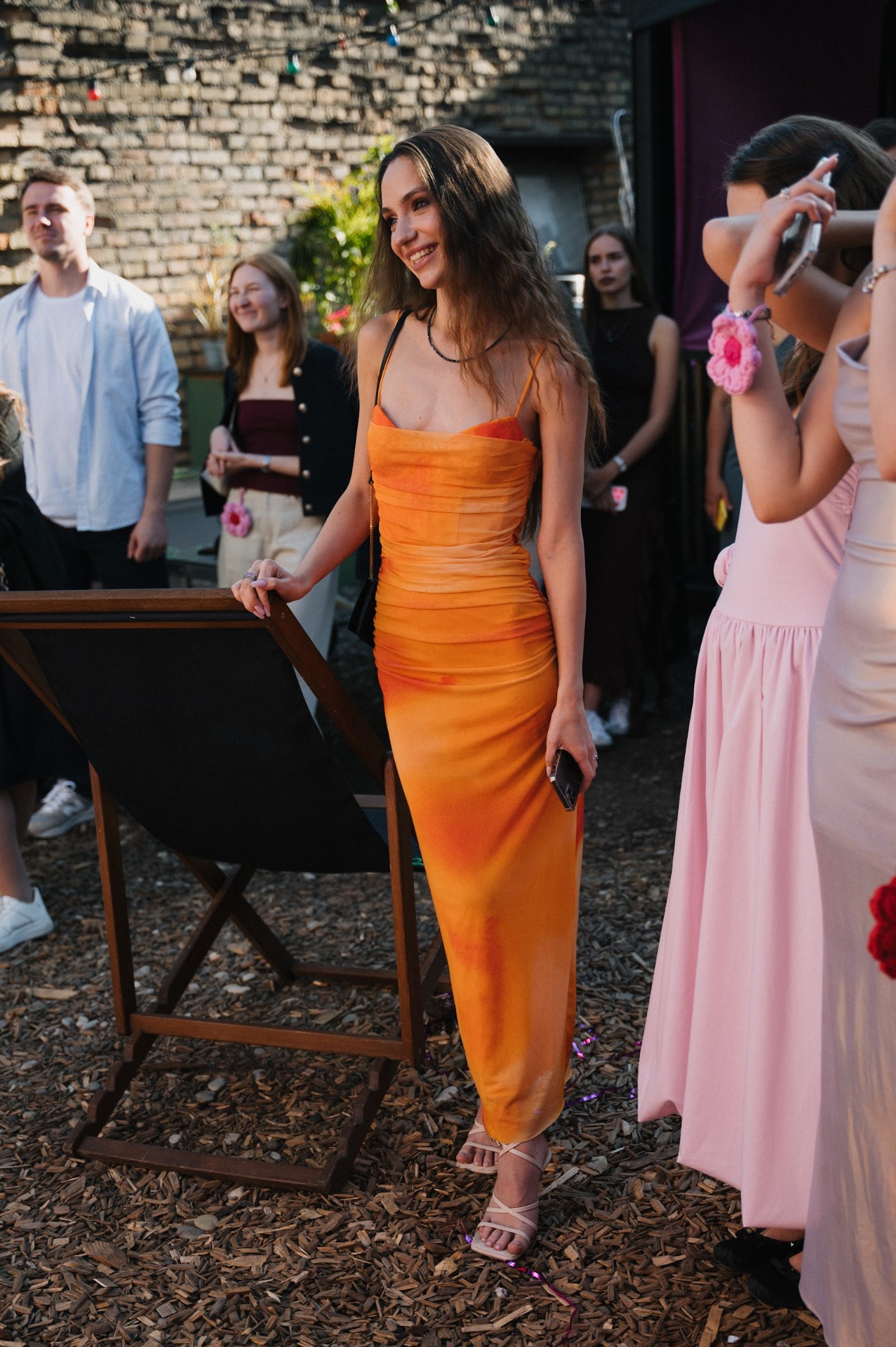 Декор был ярким и лёгким, с забавными табличками, а зона церемонии была оформлена, как наша первая переписка :) Дресс-код для гостей был по-настоящему дофаминовый, а на welcome каждый получил яркий handmade-цветочек.