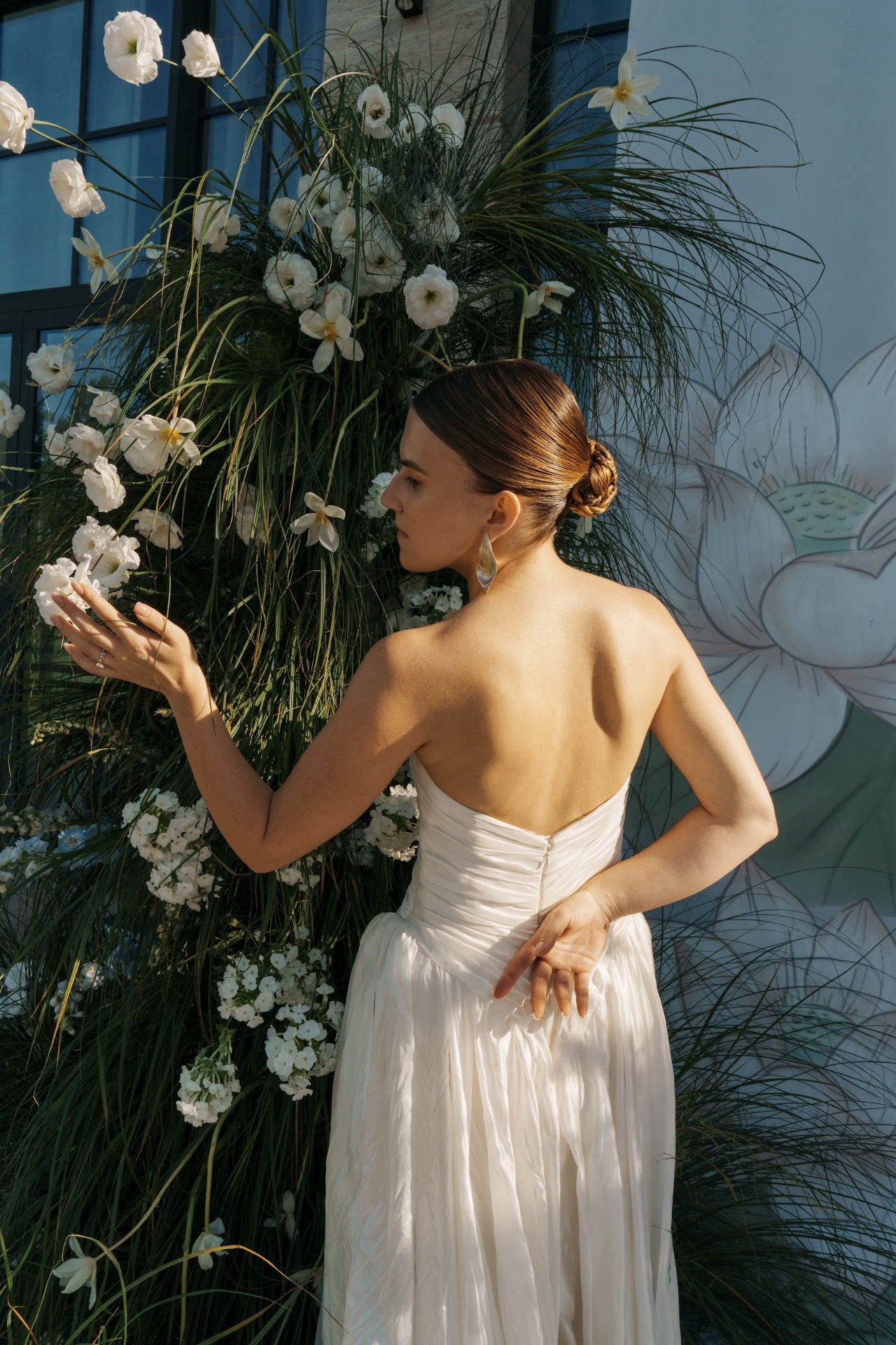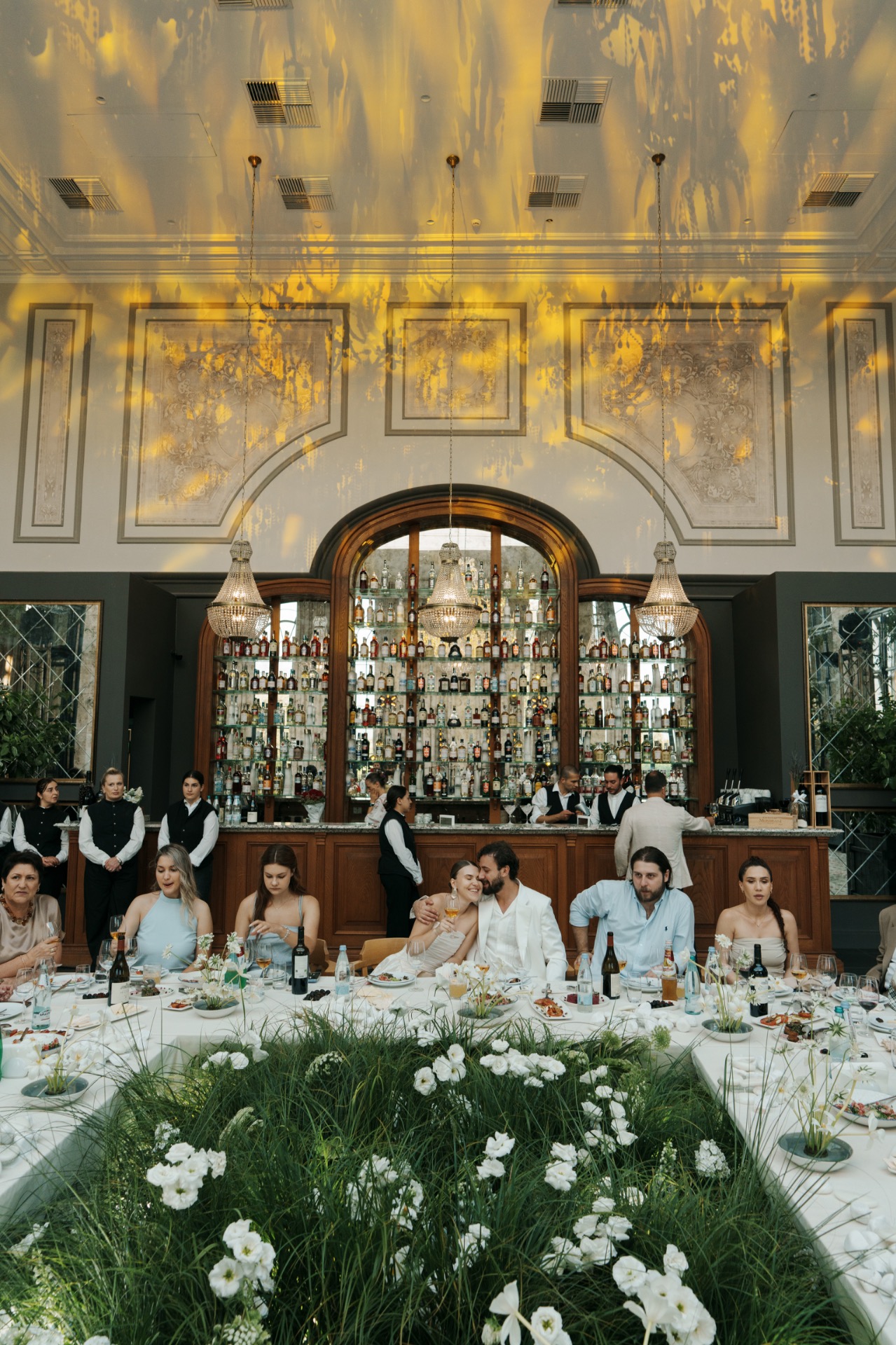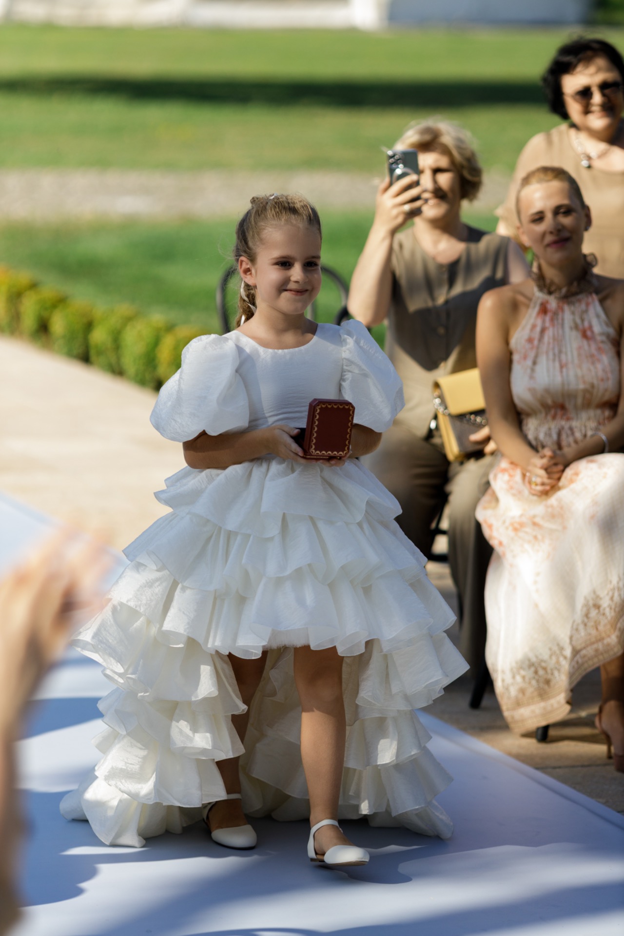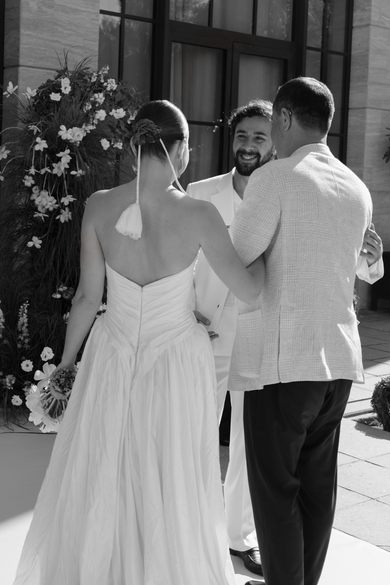 Моё платье было сшито на заказ в Perle Bridal. Я выбрала наряд, который подчёркивал естественную красоту и сочетал в себе классику с современными акцентами. Образ дополнили макияж в стиле clean makeup и аккуратный минималистичный пучок с элементами косоплетения, который мы придумали вместе со стилистом. Для меня было важно, чтобы на свадьбе я оставалась собой.