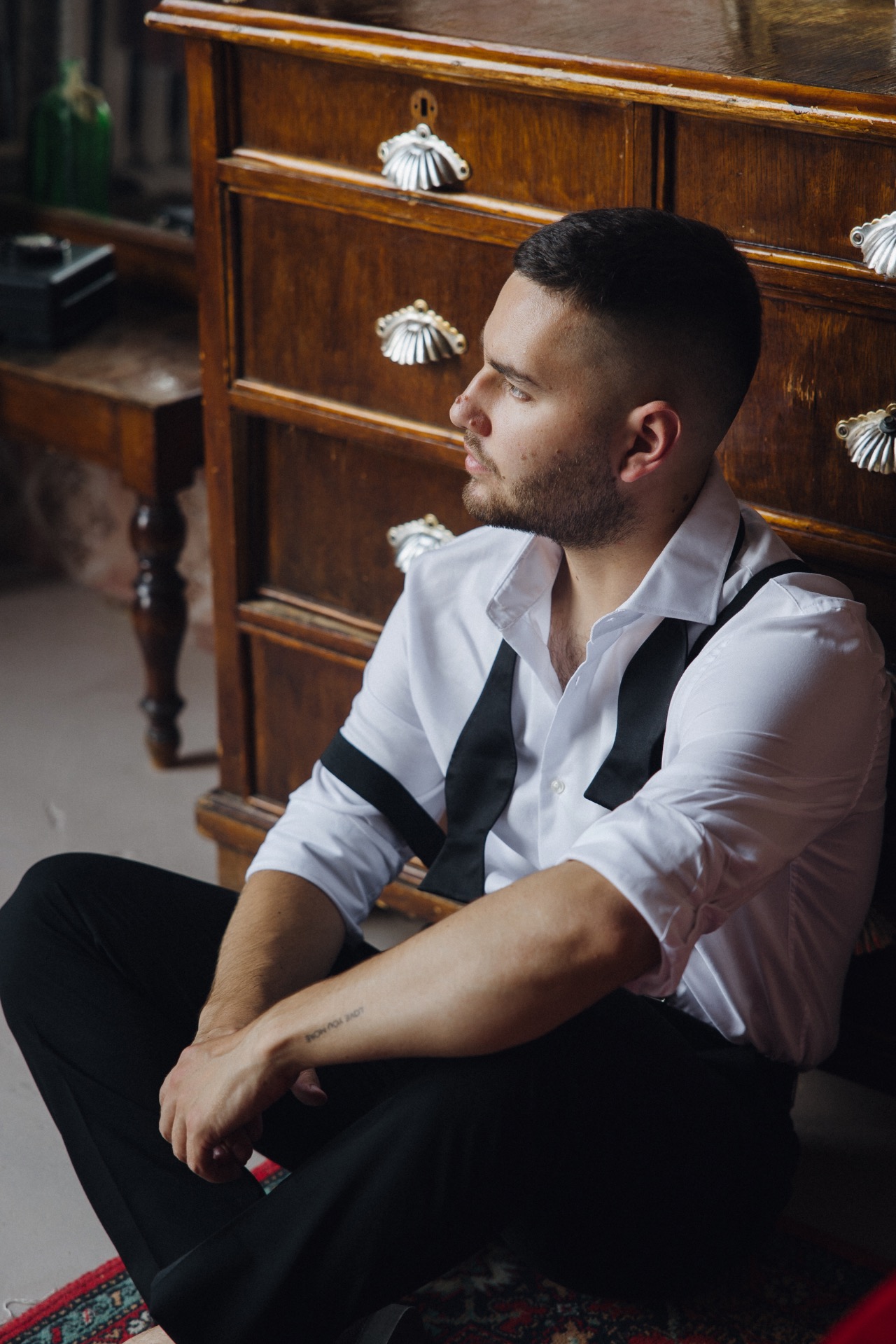 А вот Максим остался верен своему изначальному решению: классический чёрный смокинг, атласные лацканы, белая рубашка, чёрный галстук.