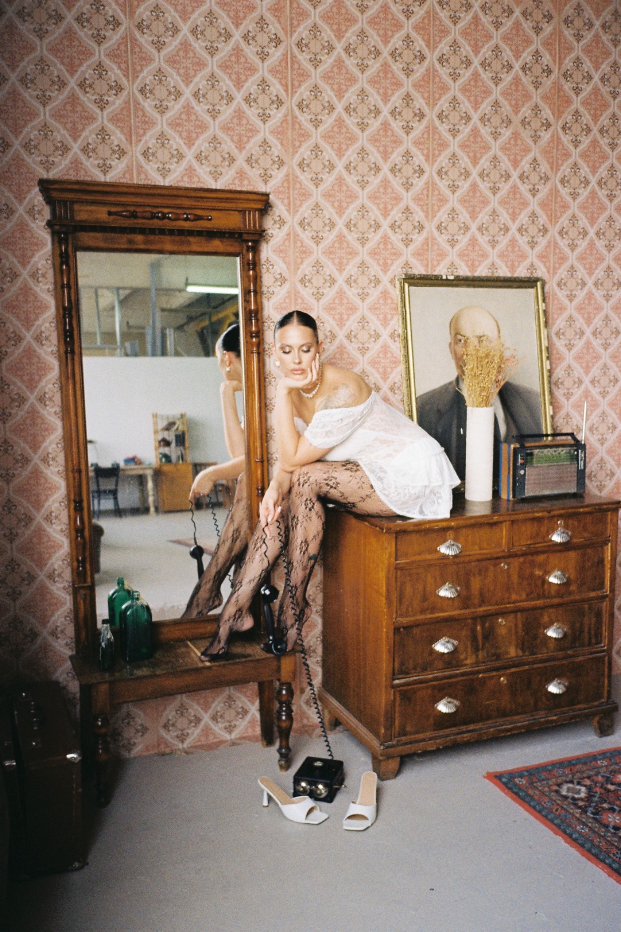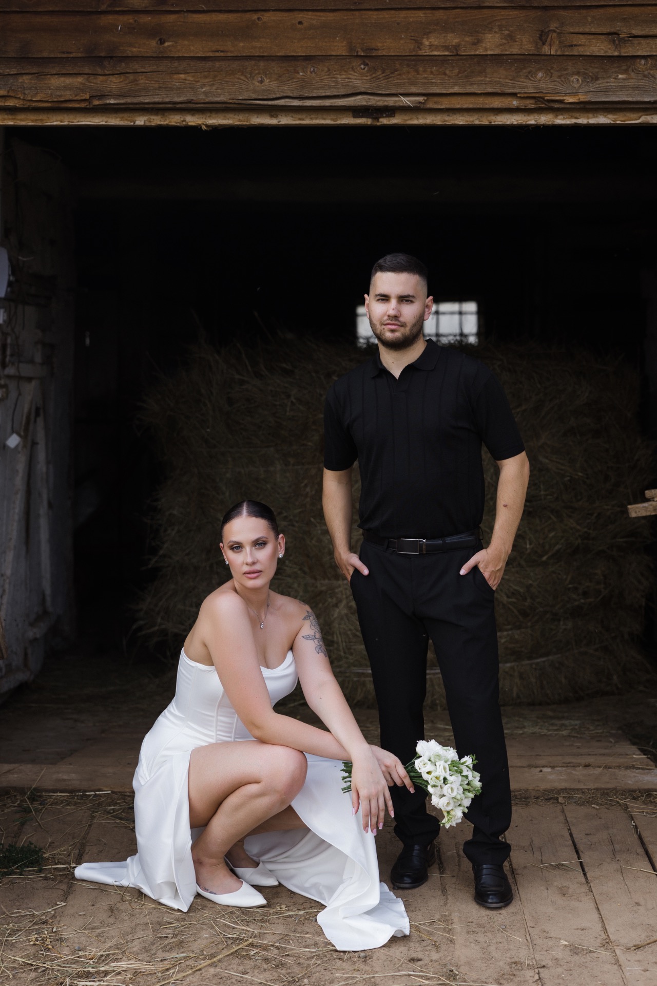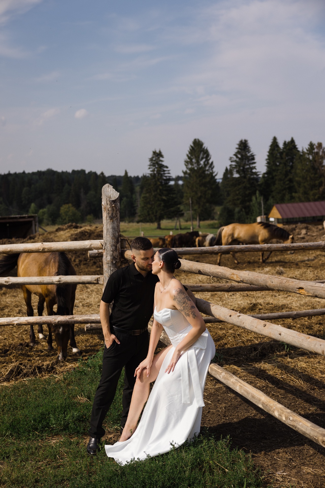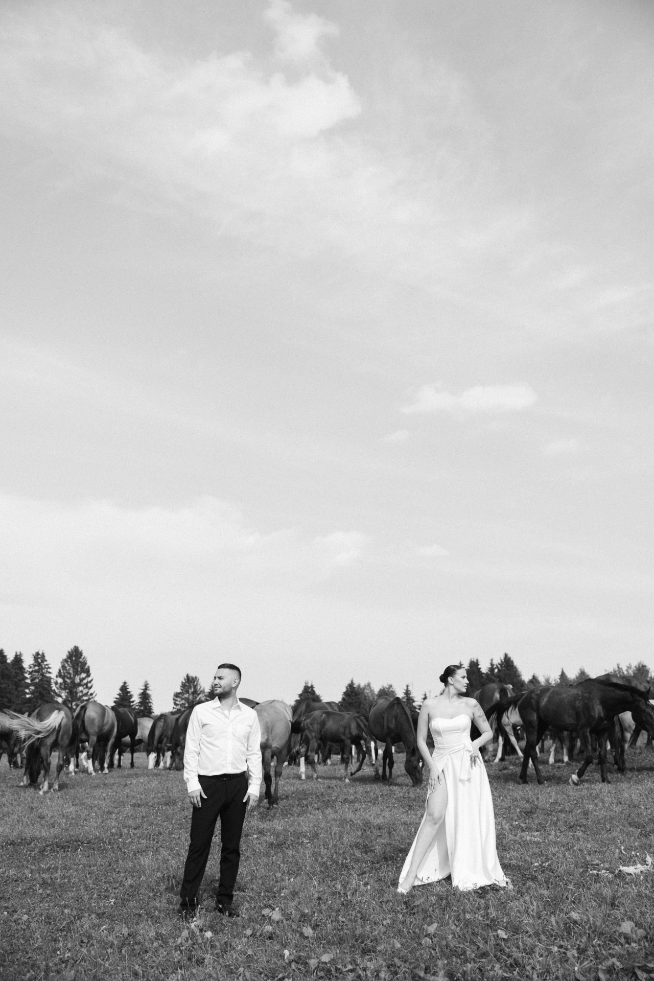 Следующая съёмка прошла на площадке, и она также оправдала все наши ожидания. Так как наша локация находилась рядом с конным клубом, у нас сразу родилась концепция съёмки с табуном лошадей. Прогулка по территории клуба подарила нам атмосферные сельские кадры. Как сказала наш фотограф, в тот день нам удалось совместить несовместимое.