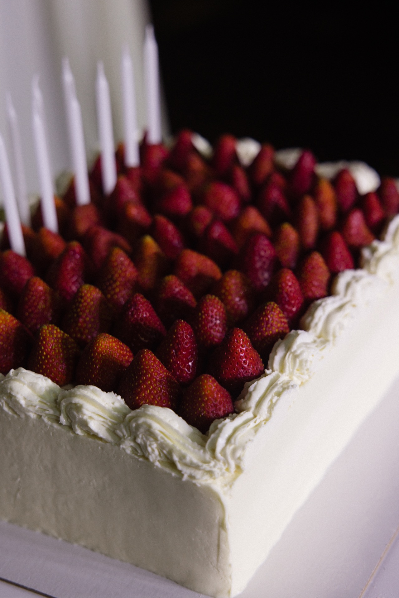 Наш торт был таким же лаконичным, как и вся концепция: одноярусный, прямоугольный, с клубникой сверху и нежными рюшами по краям. Зато вкус — просто космос! Все гости потом говорили, что это был лучший торт, который они пробовали.