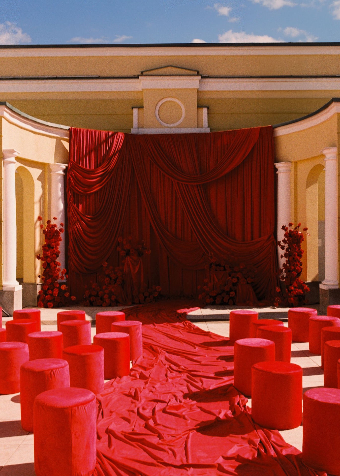 В день свадьбы я так сильно нервничала, что не могла получить удовольствие ни от чего. Когда я пришла на площадку, я просто рационально оценила декор и поняла, что всё выглядит именно так, как я хотела. Все образы, которые я видела в своей голове и которые мы согласовали в референсах, воплотились в точности и даже лучше, чем я могла себе представить.