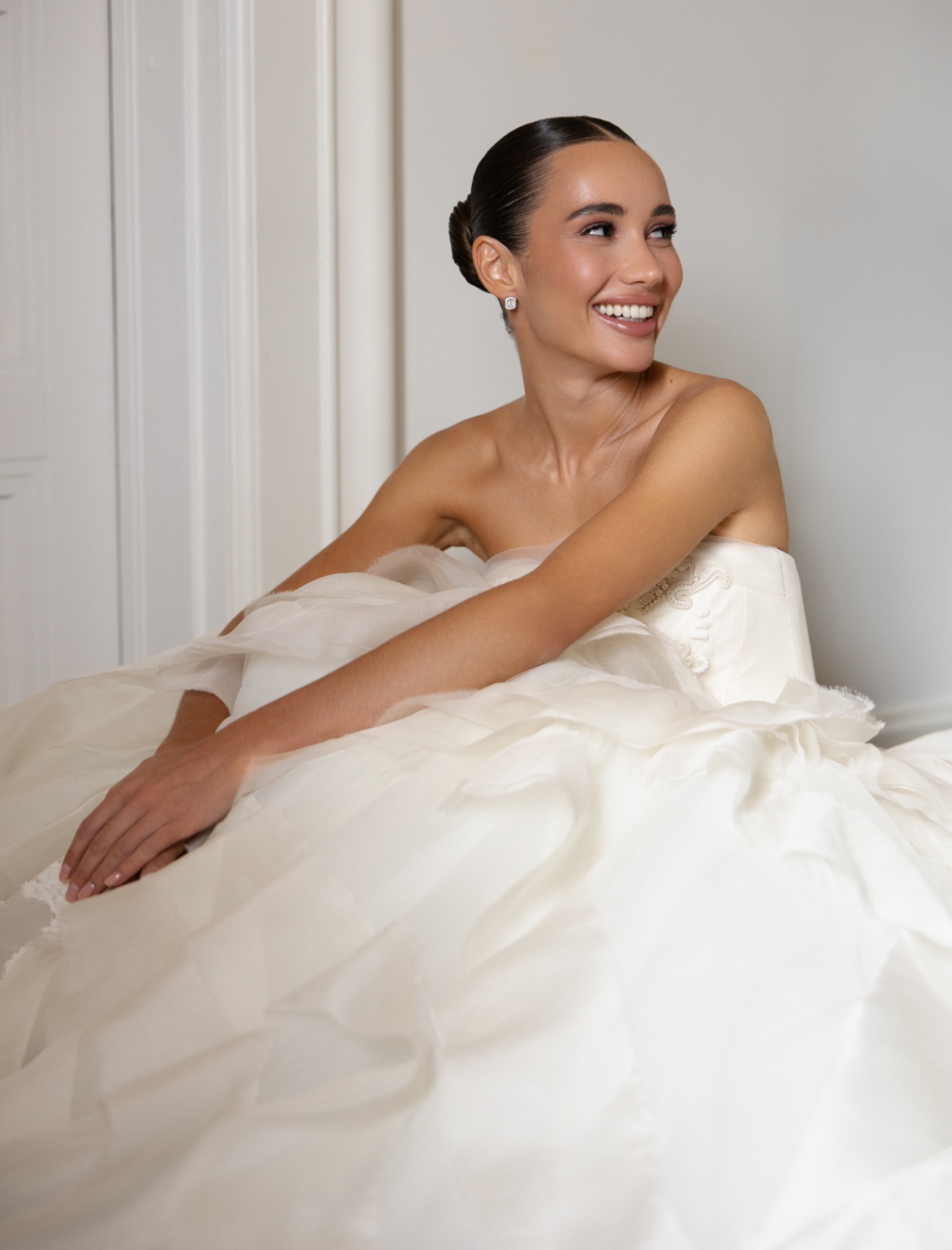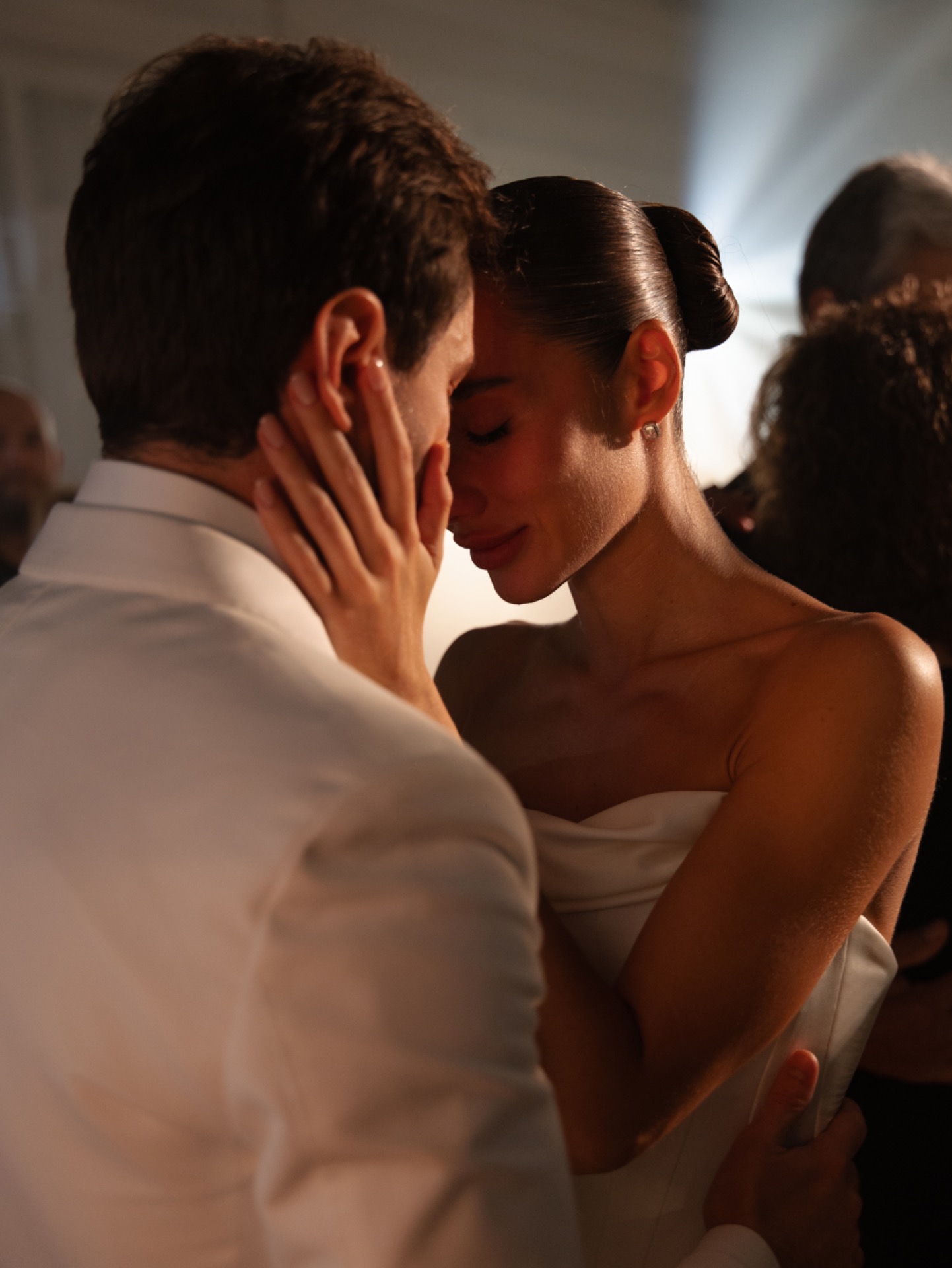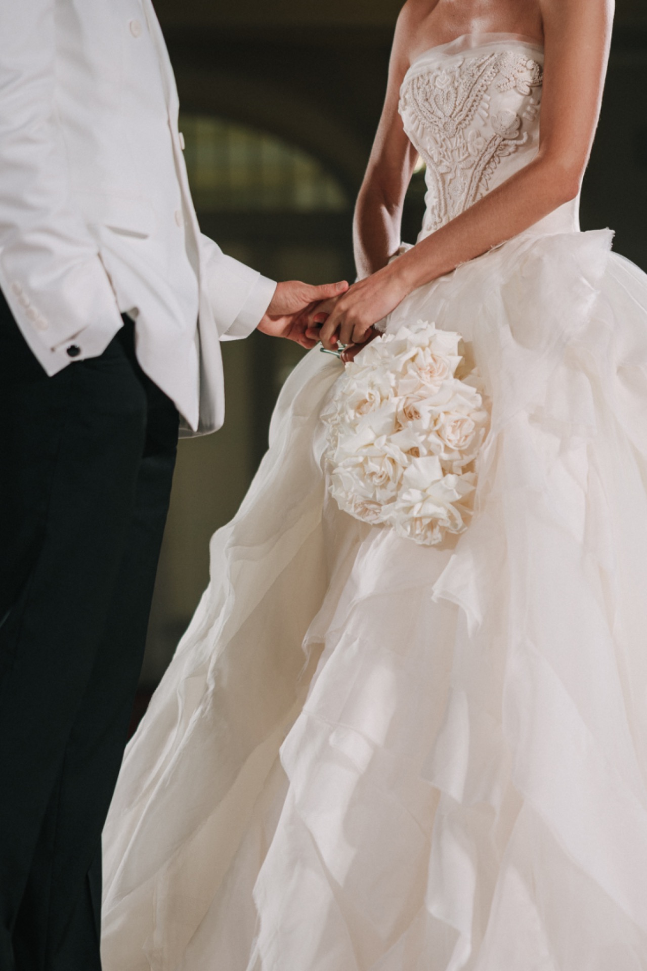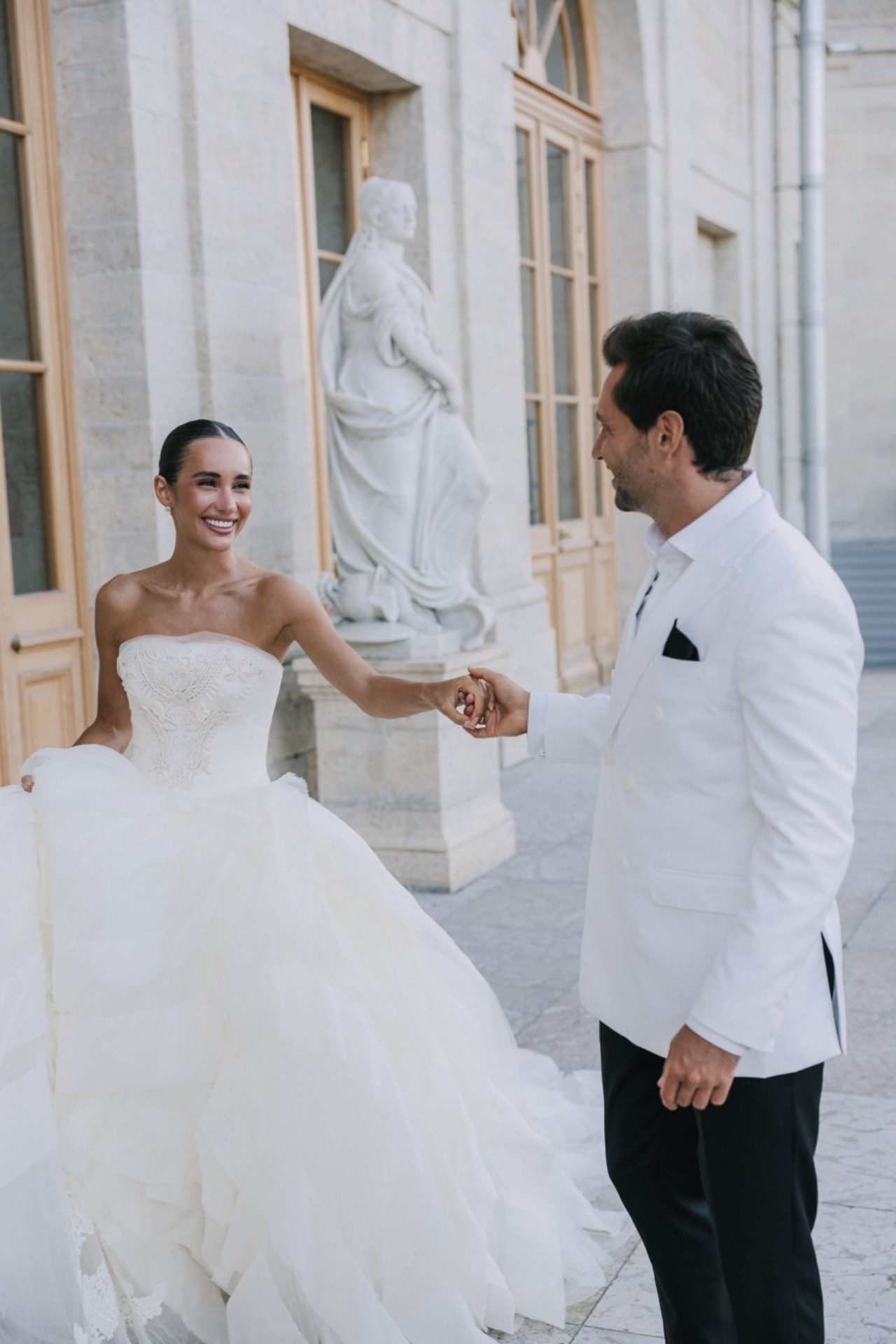 Моё первое платье было из первой линии дизайнера Vera Wang. Я влюбилась в него задолго до свадьбы и знала: это то самое, одно на всю жизнь. Я человек очень постоянный, если мне что-то нравится, я не передумываю. С помощью байеров это платье привезли для меня из Америки. Ручная работа, лаконичный крой, идеальная посадка, в нём есть какая-то магия, даже намёк на «лебединые перья».