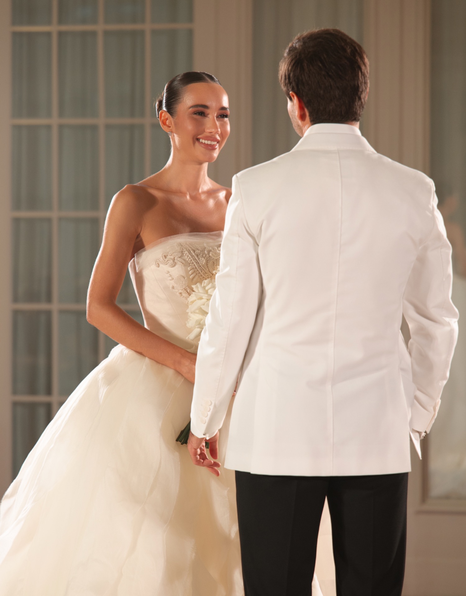 Предложение Серёжа сделал ровно через год — на нашу годовщину, в отеле Wawelberg. Когда я зашла в номер, то сразу увидела букет и открытку рядом — Серёжа всегда дарит мне цветы и пишет милые записки. В этой открытке был вопрос: «Ты станешь моей женой?» Обернувшись, я увидела его, стоящего на одном колене с кольцом в руках. Конечно, я сказала: «Да!»