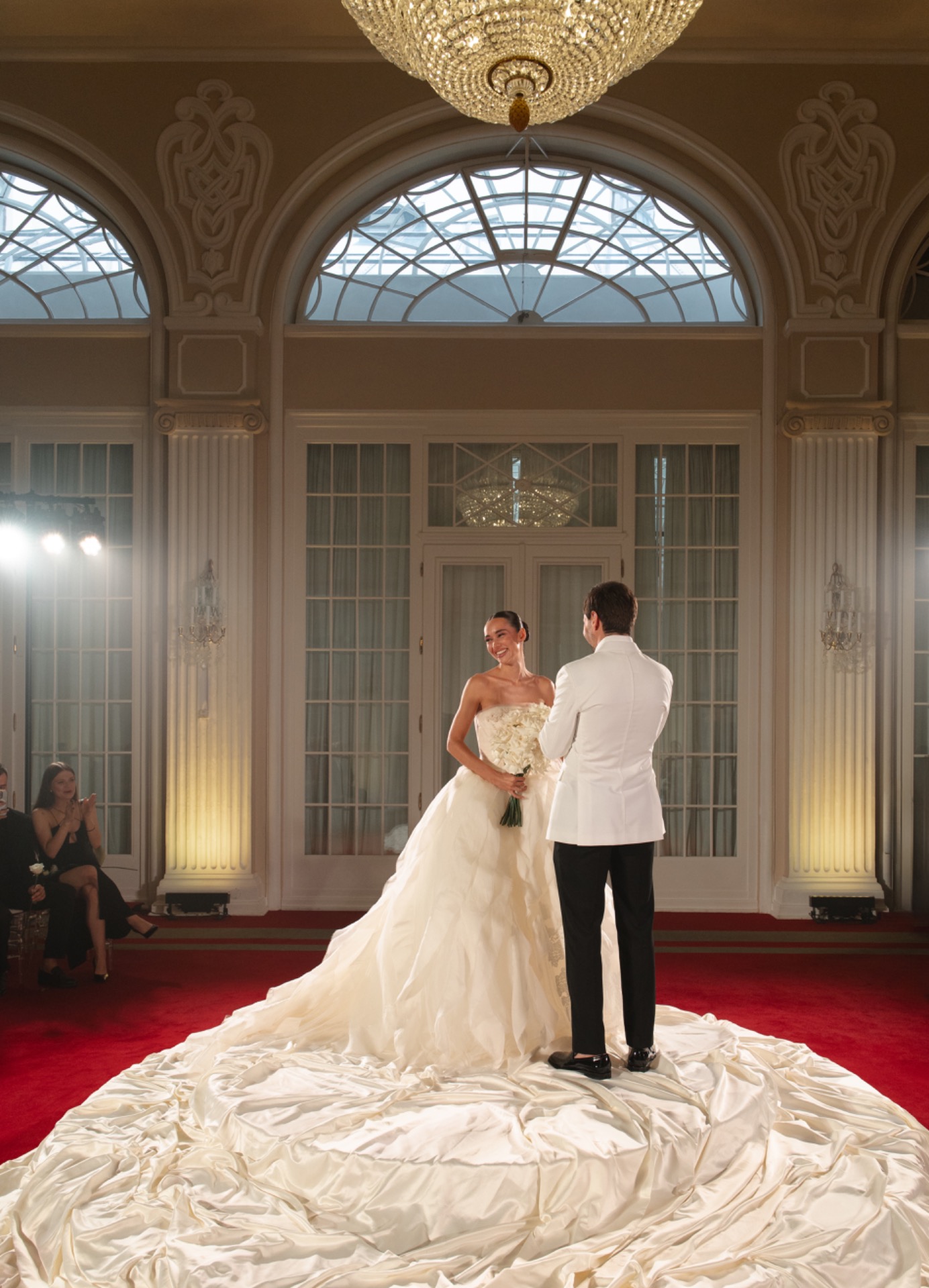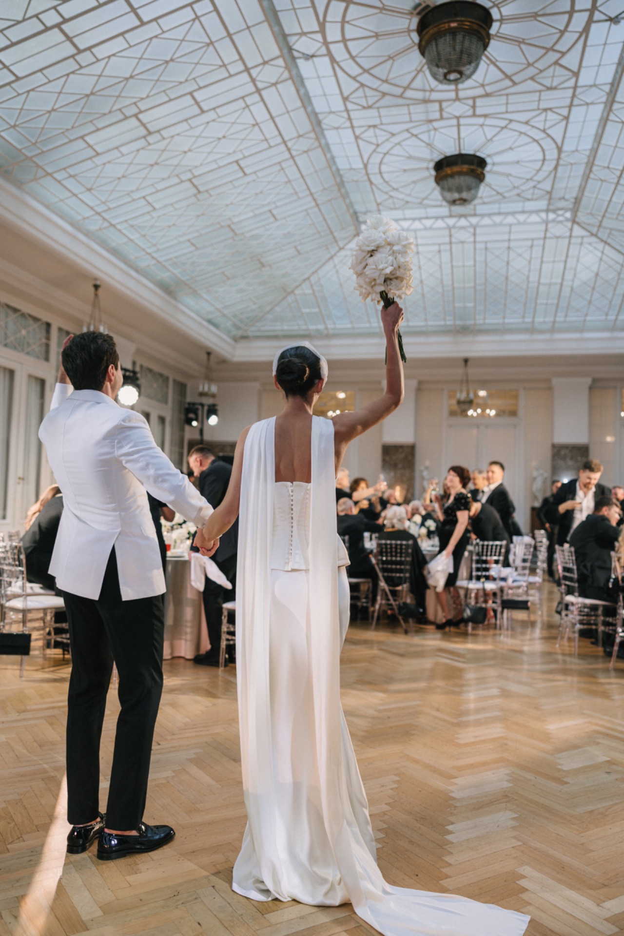 Мне хотелось свадьбу во дворце, и мы объездили почти все площадки в этом стиле, но ни на одной пазл не сложился. Мы учитывали число гостей, конфигурацию залов, минимализм, но для нас были важны роскошь интерьера, уровень сервиса и возможность минимизировать переезды. В итоге, вдохновившись в том числе трендом на отельную эстетику, мы выбрали гостиницу «Астория». Сердце любимого города, два зала, невероятная атмосфера, белые розы, много ткани и идеальный торт с лебедями.