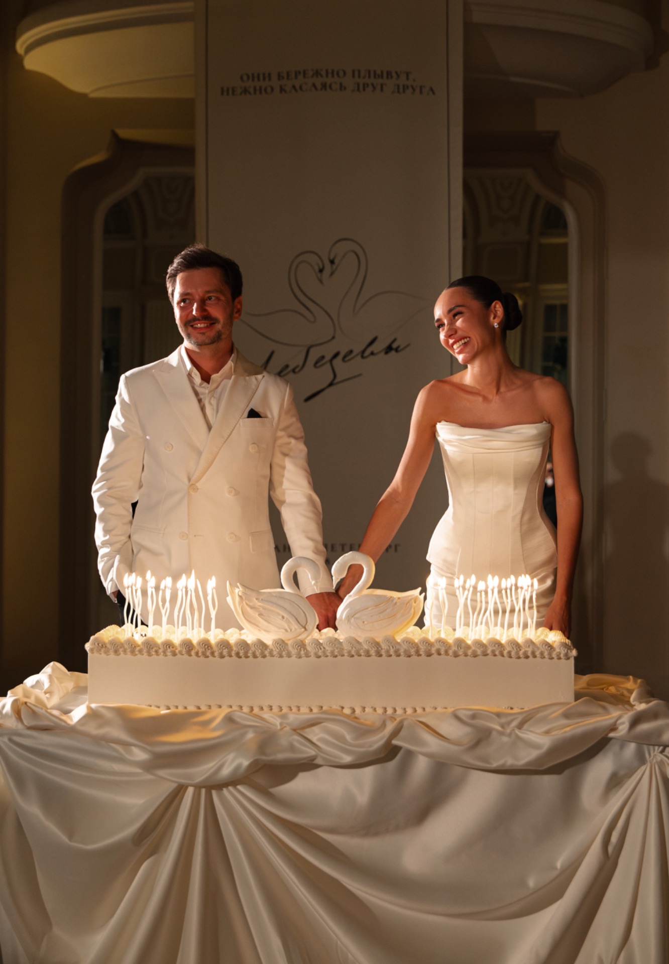 Лебеди появились не случайно, ведь теперь мы носим общую фамилию — Лебедевы. Этот символ чистоты и верности стал отражением нашей любви и заодно оказался трендом 2025 года.