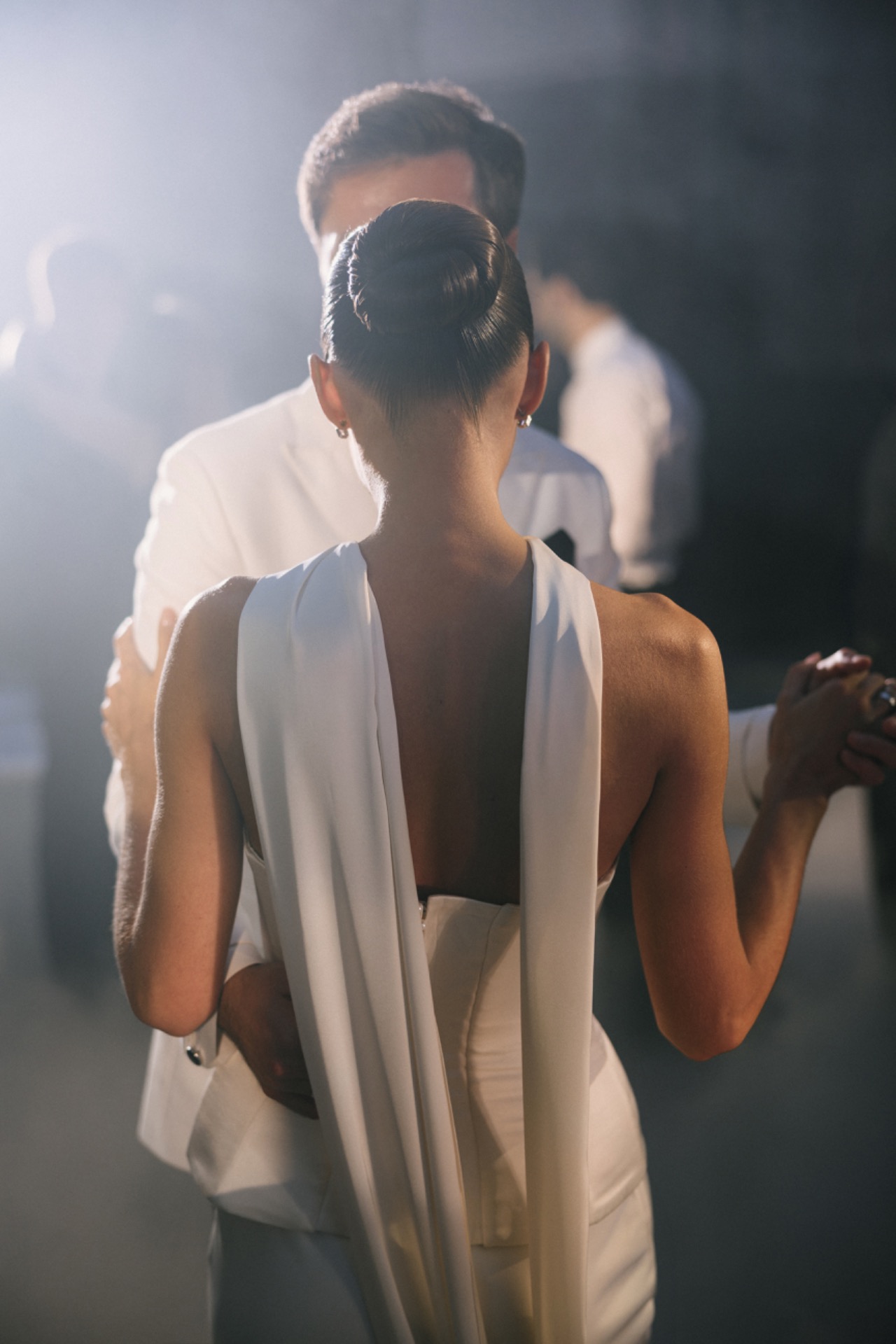 Отдельная история — обувь. Я хотела туфли от Jimmy Choo, но заказать их было довольно сложно. И совершенно случайно моя коллега, улетавшая в свадебное путешествие в Европу, предложила привезти их оттуда для меня. В итоге мои туфли нашли меня в Италии — лаконичные, с идеальной высотой каблука. Так что можно сказать, что и туфли приехали с любовью, из другой свадебной истории.