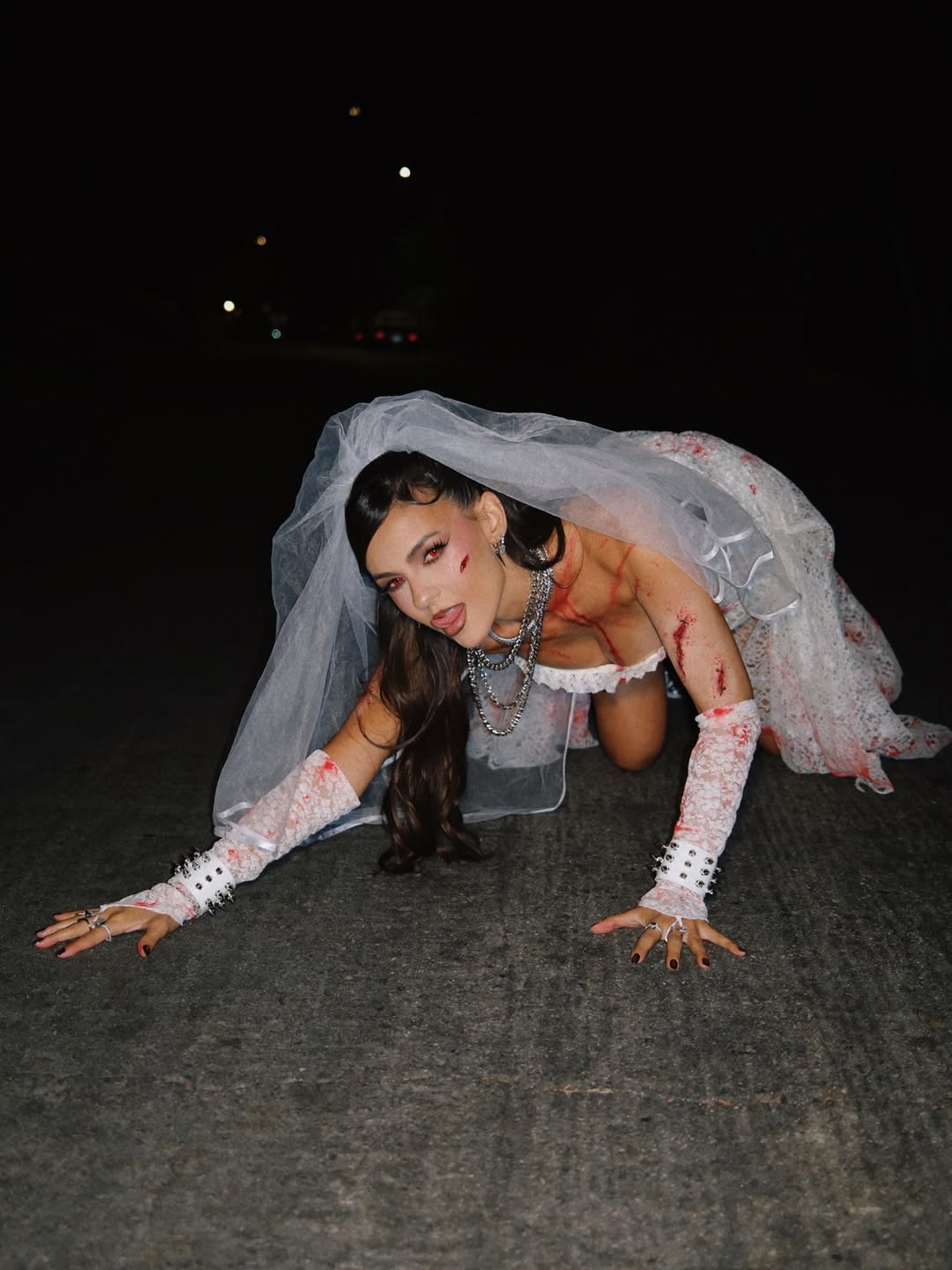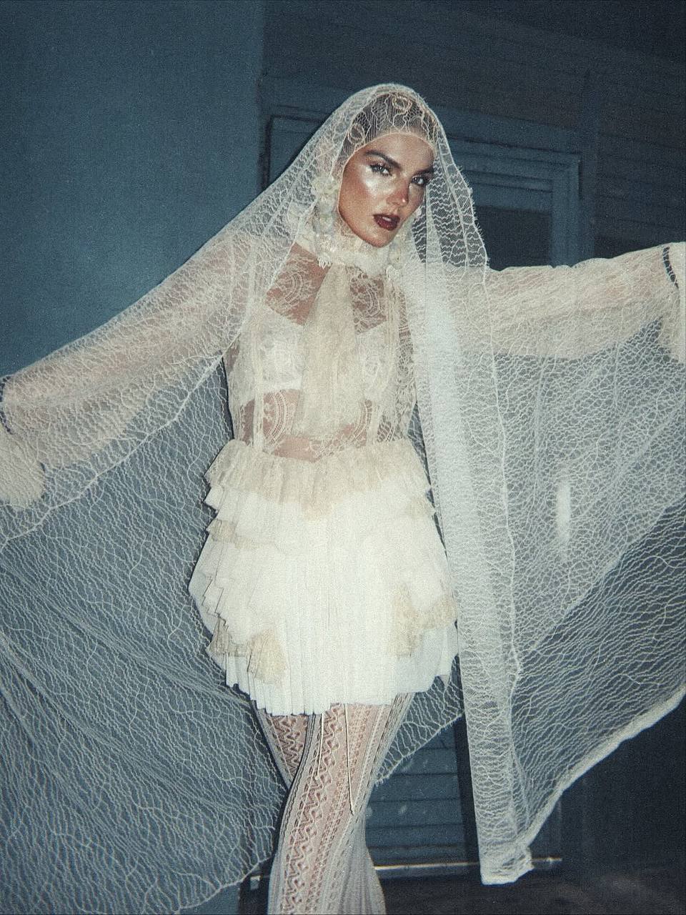 Основательница бренда Tezza появилась на Хеллоуин в образе невесты-привидения, который легко повторить на готической антибрайд свадьбе.