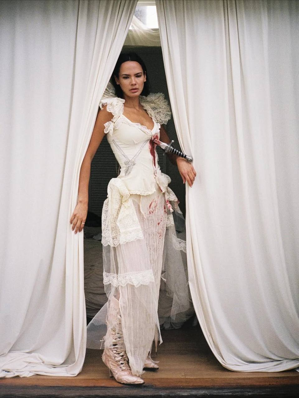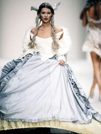 Новозеландская модель повторила образ Кейт Мосс с показа John Galliano SS94, где она сыграла «принцессу Лукрецию» – придуманный Гальяно персонаж русской аристократки.