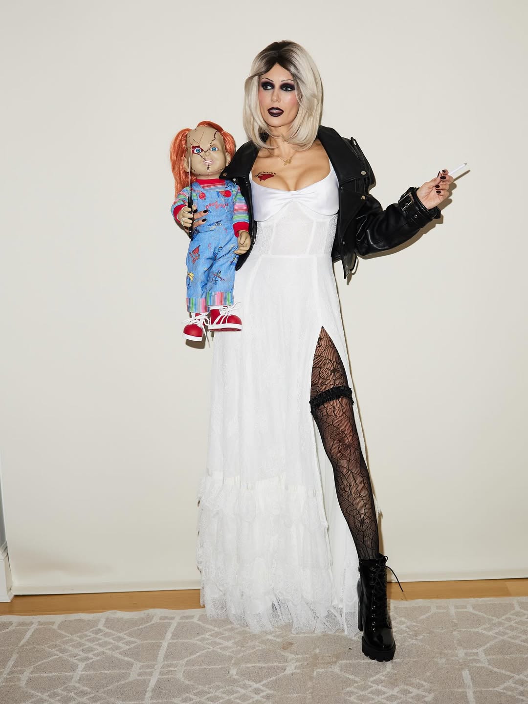 Актриса тоже выбрала образ для Хэллоуина с долей сарказма. На фоне разрыва помолвки с Шоном Уайтом она перевоплотилась в невесту Чаки из одноимённого хоррора.