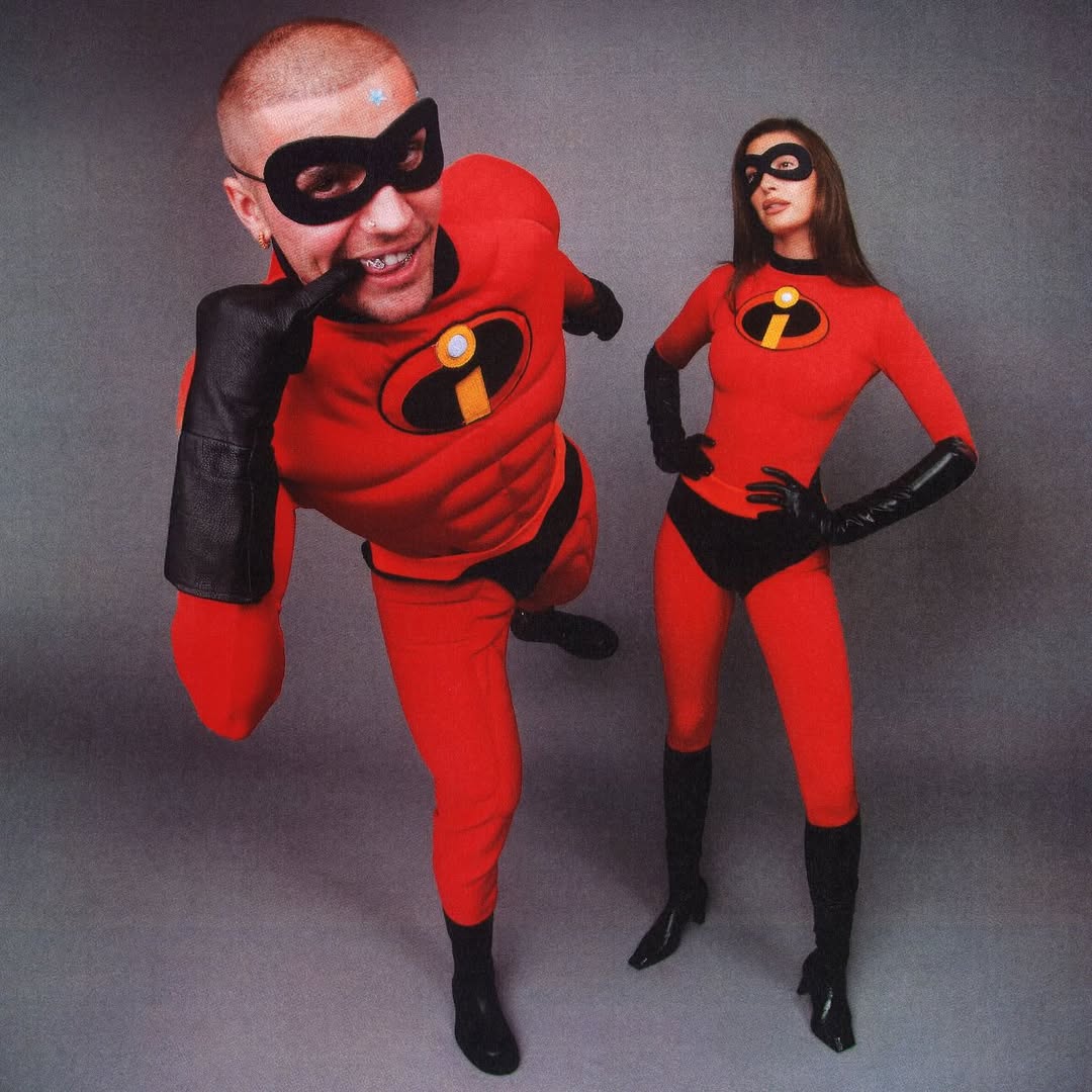 Хейли и Джастин Биберы также продолжают радовать парными образами. В этом году они вместе с сыном примерили на себя образы из мультфильма «Суперсемейка» — Мистера Исключительного, Эластикгёрл и Джек-Джека.