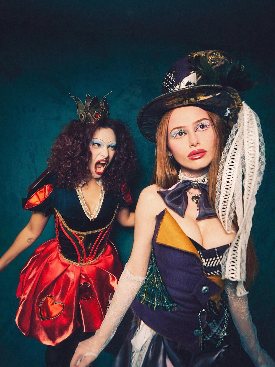 Камила Мендес и Мэделин Петш в образах Королевы Червей и Безумного Шляпника