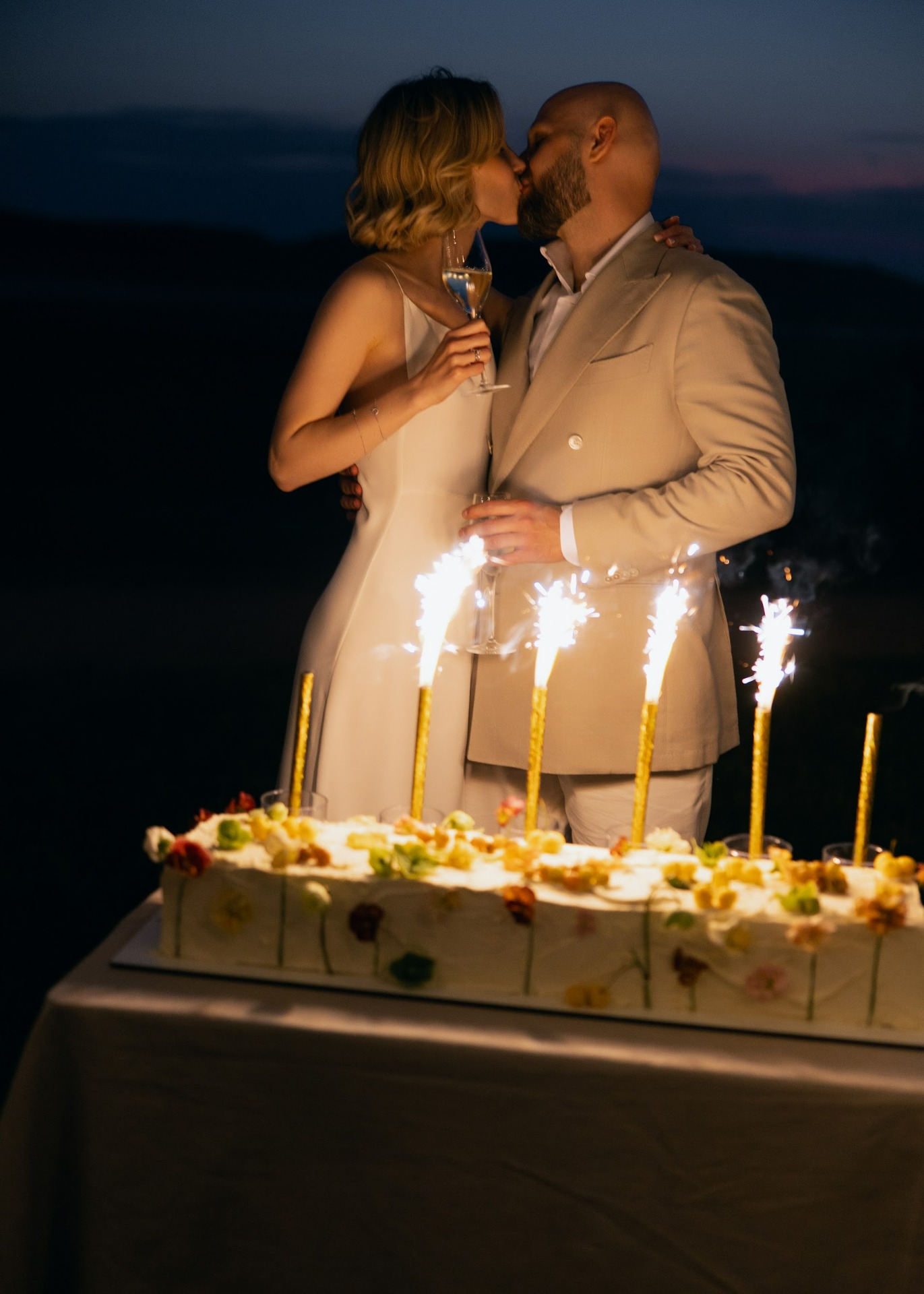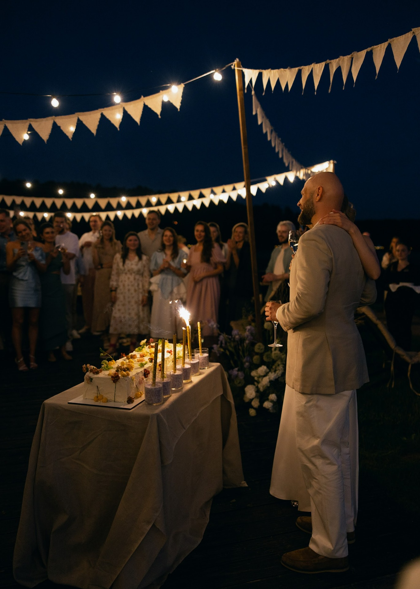 Когда мы разрезали торт, на улице было уже темно, но так красиво и атмосферно.