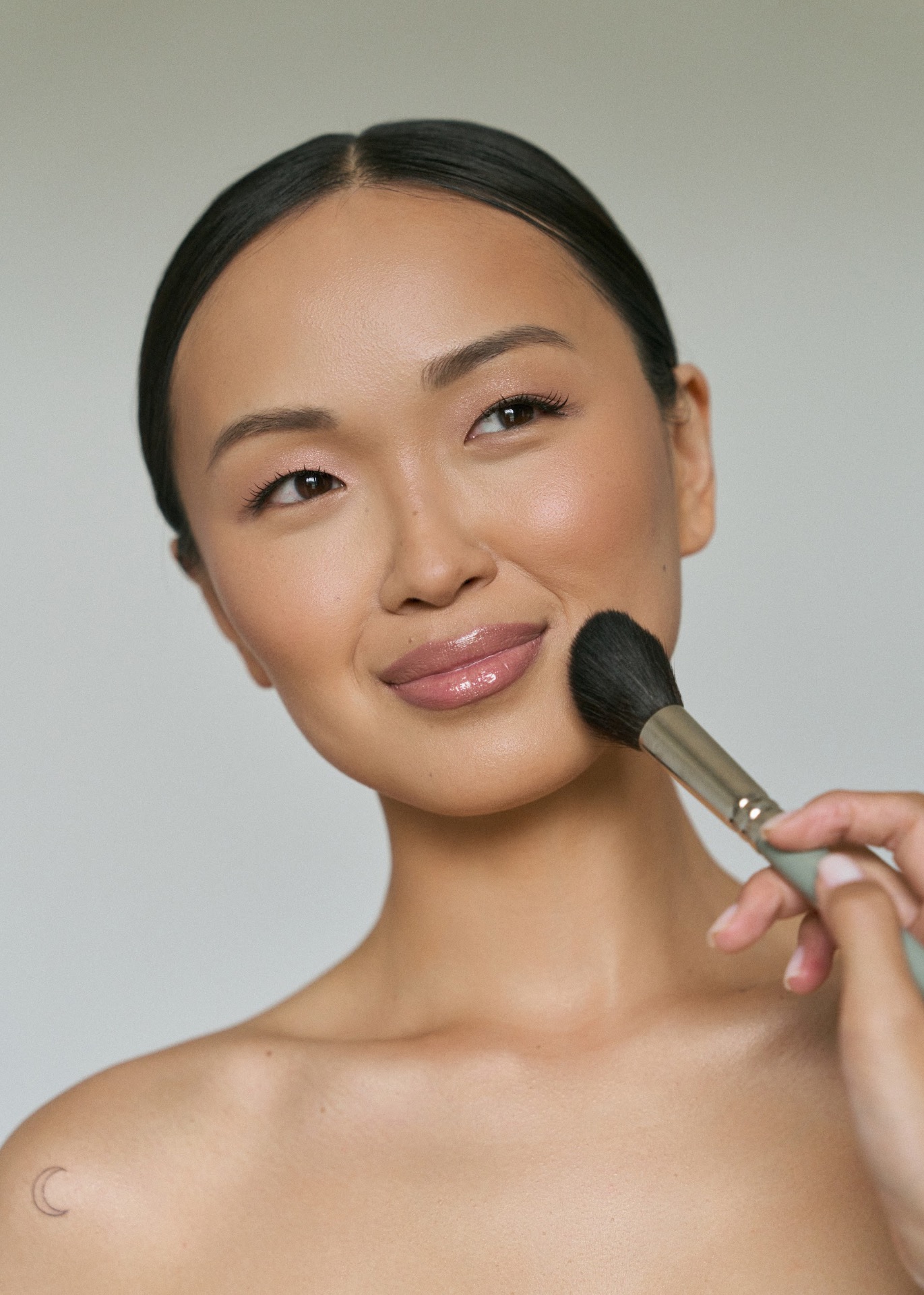 Мой образ был минималистичным и лаконичным. На церемонии я была в шелковой комбинации в пол на тонких бретелях жемчужного оттенка. В начале вечера к ней я надела свободную блузу-накидку из прозрачного, летящего шелкового шифона. Позже сменила образ на корсет в стиле «русалка» и джинсы. Волосы были убраны в пучок, макияж был лёгким и максимально естественным.