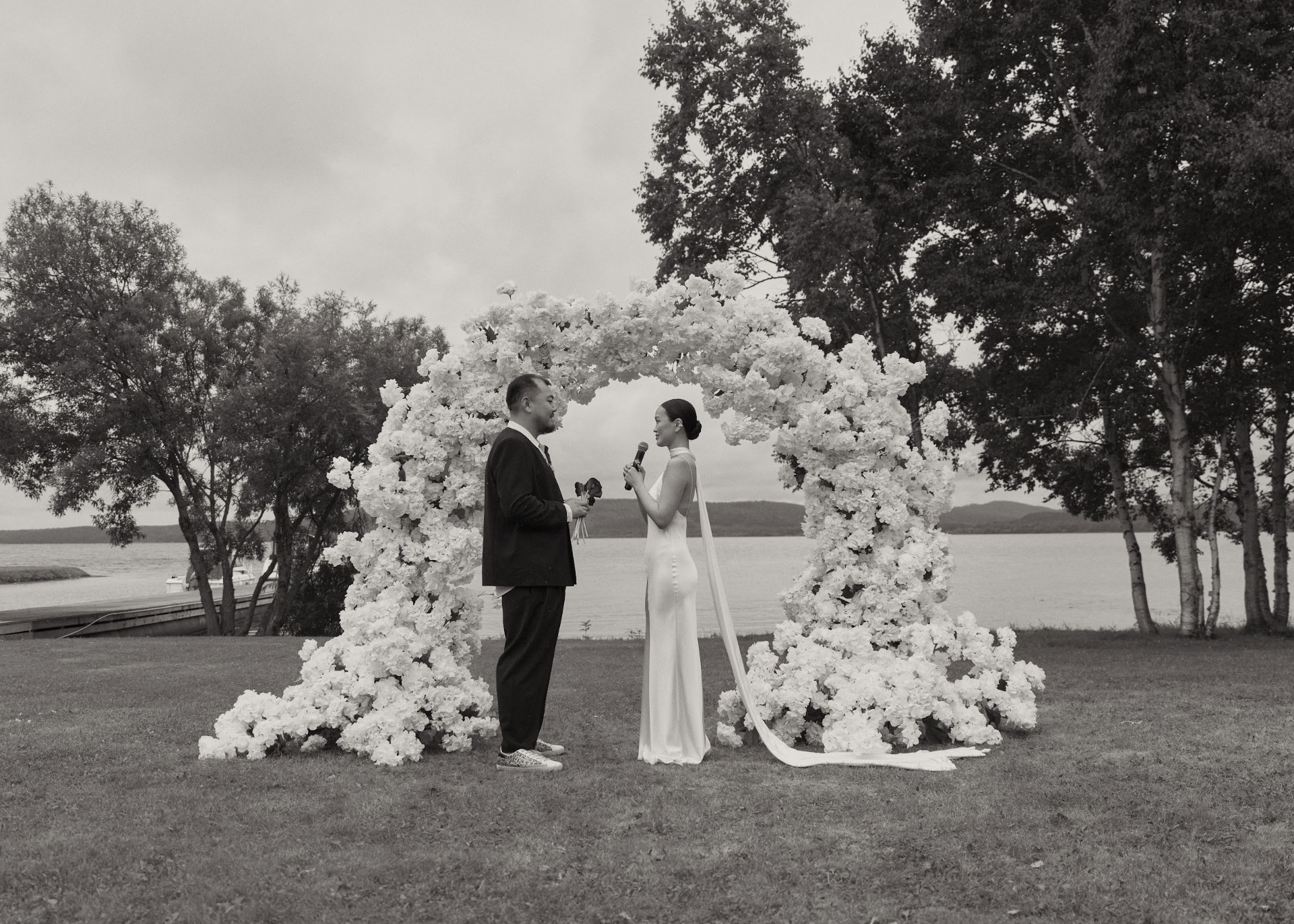 И только в момент самого фейерверка обнаружили: игристое — ярко-бордового цвета! Поняли мы это, когда белоснежные рубашки наших гостей начали стремительно окрашиваться в красный. Эмоции непередаваемые! Но этот неожиданный поворот ничуть не испортил атмосферу. Напротив, момент стал ещё ярче, а фотографии получились просто шикарными. Мы сохранили невероятные воспоминания о самом весёлом завершении нашего дня!