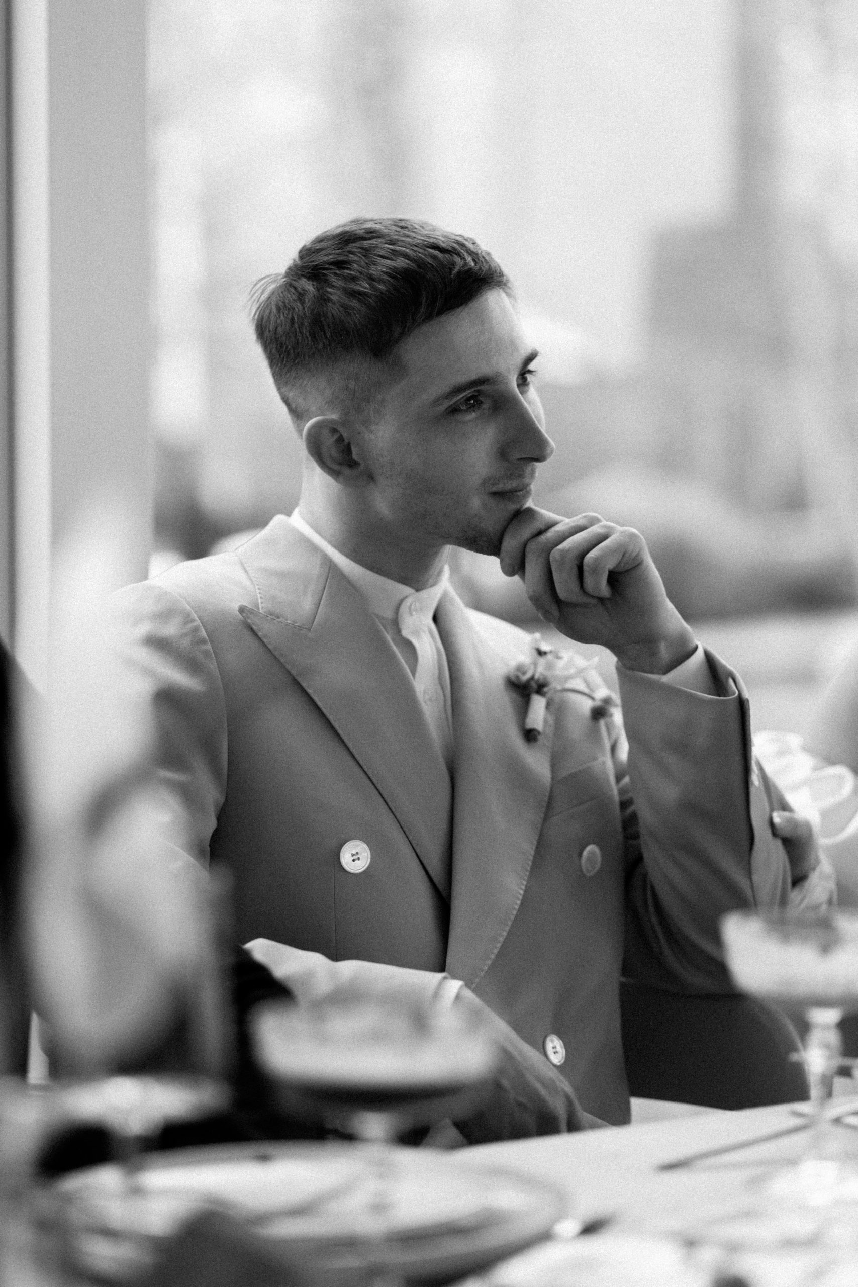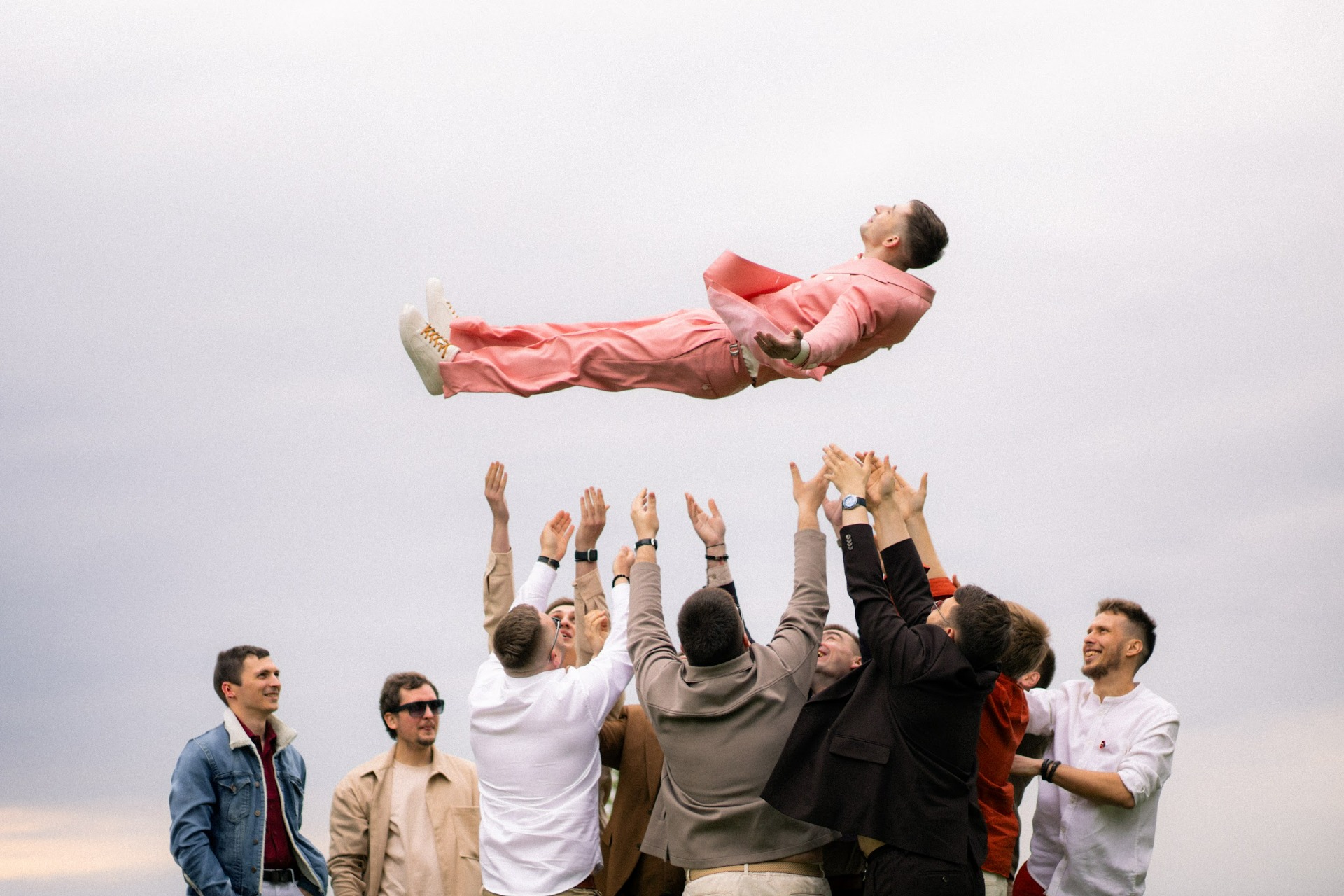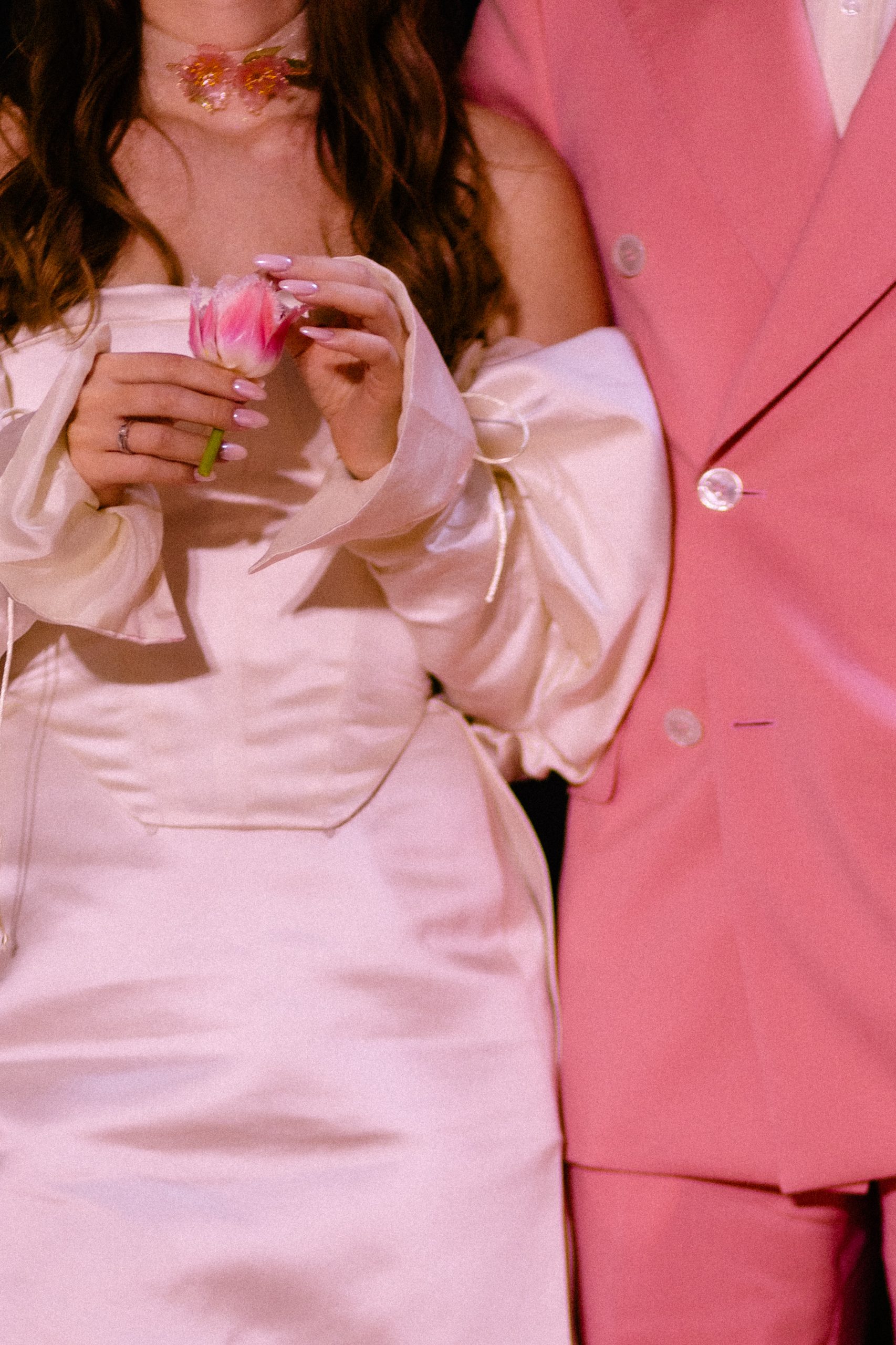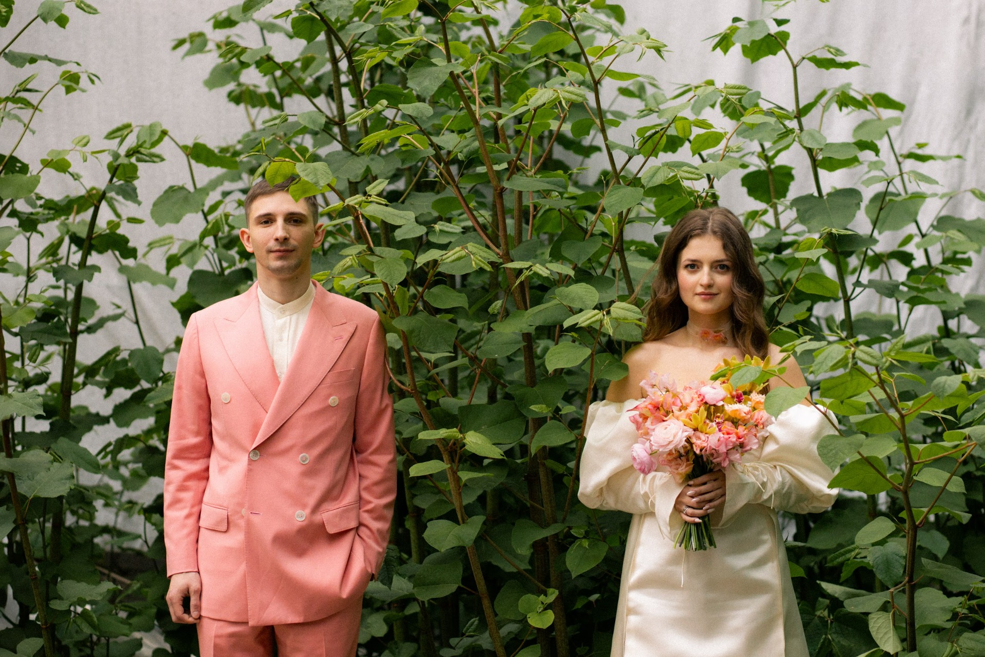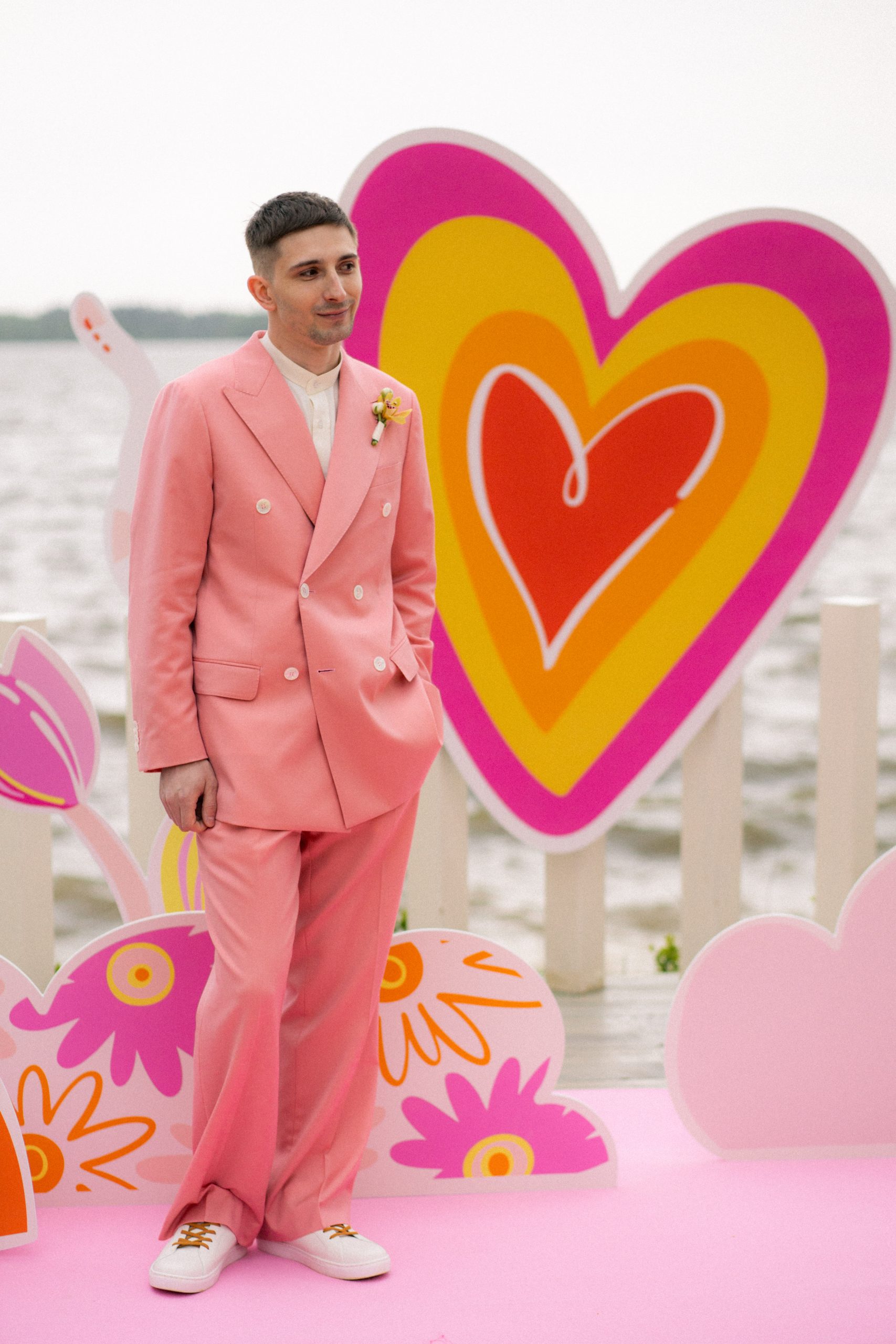 С образом жениха тоже было всё не так просто. Олег сразу сказал: «Хочу розовый костюм». Мы обыскали весь интернет, объездили пол-Москвы и ничего подходящего не нашли. Уже расстроившись, начали смотреть костюмы в других цветах, подходящих к палитре нашей свадьбы, но всё было «не то».