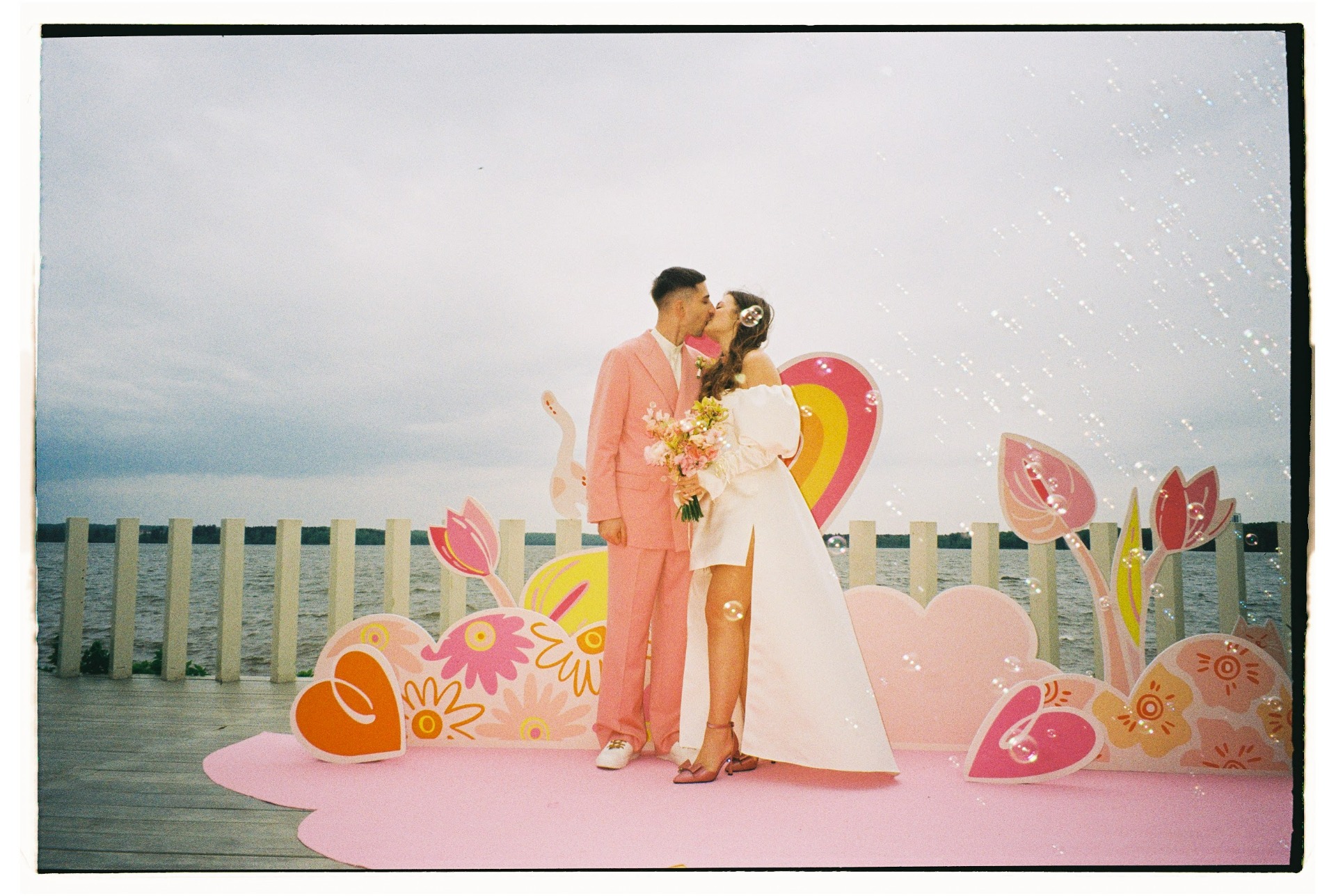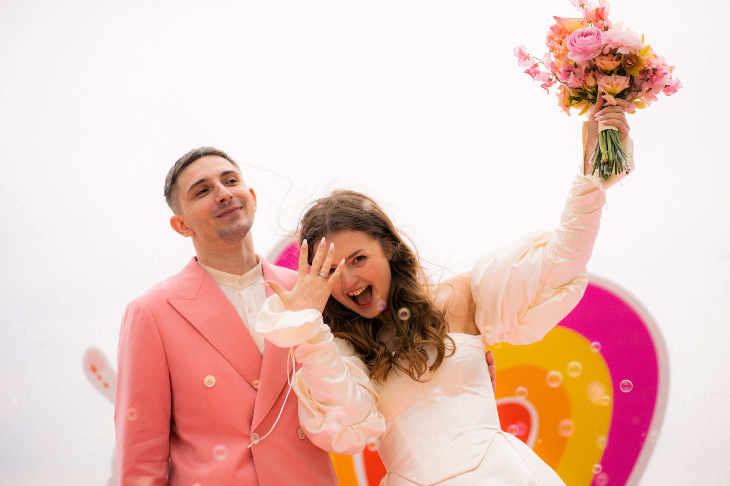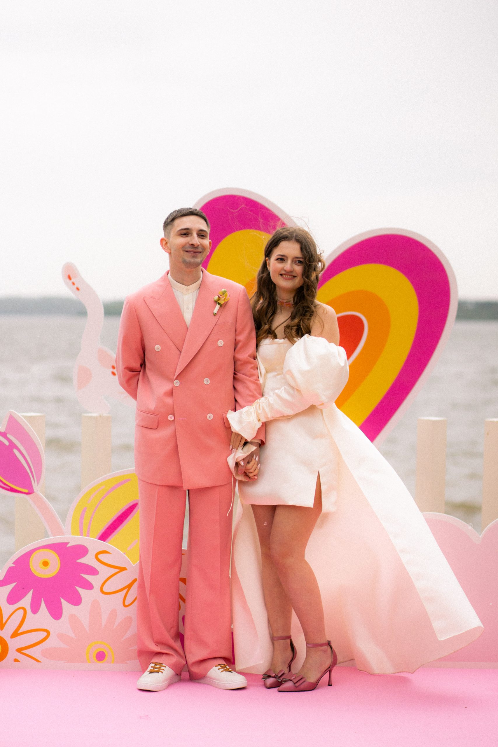 Основной запрос при поиске был такой: сделать этот день про нас и для нас, чтобы он отражал нашу пару. И, к счастью, у нас случился полный мэтч с девочками из Holiday Everyday. После первого созвона и заполнения анкеты нам предложили концепцию — яркую, немного инфантильную, игривую и очень тёплую. Как мне кажется, она прекрасно «рассказывает» о том, какие мы.
