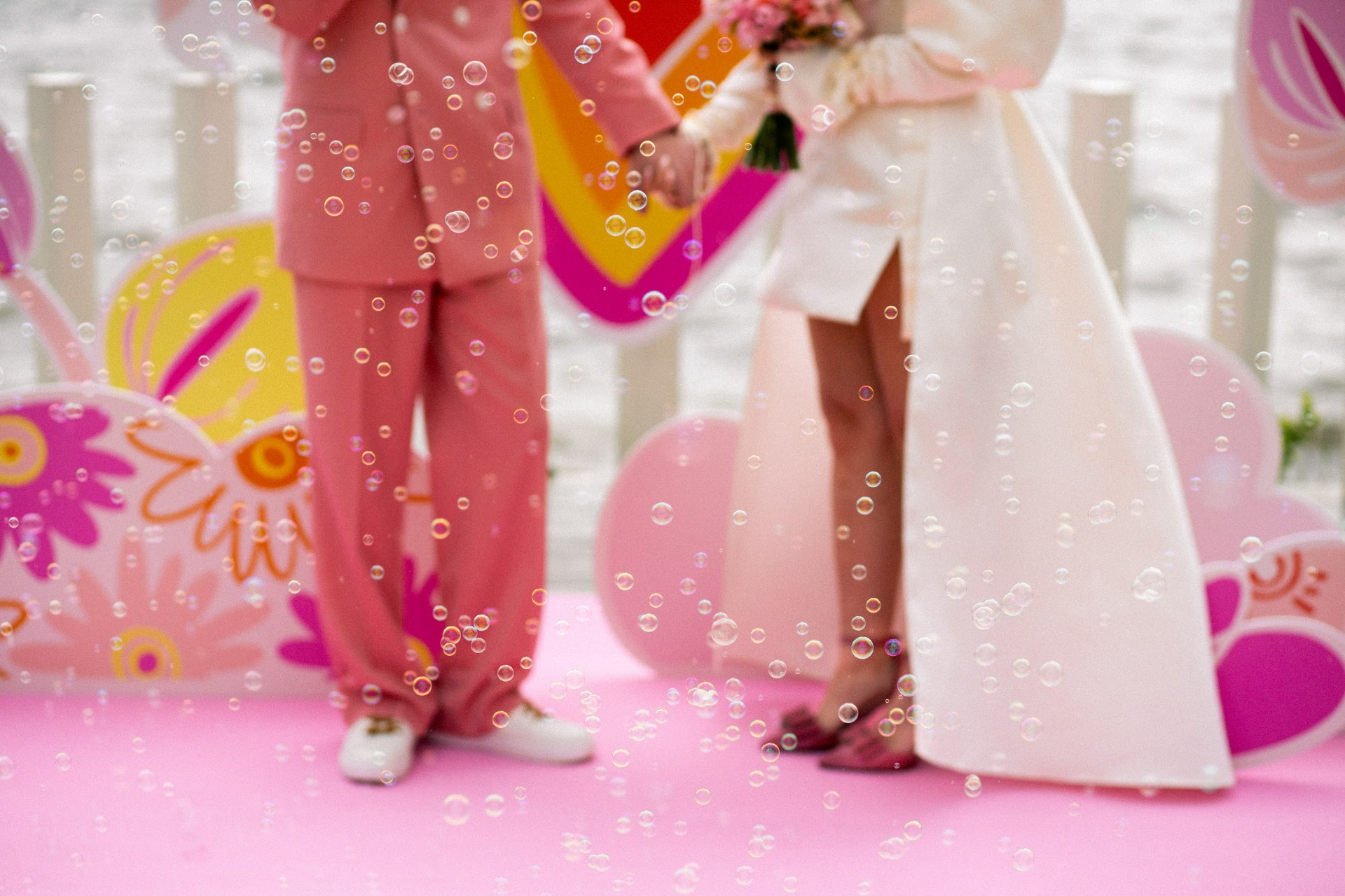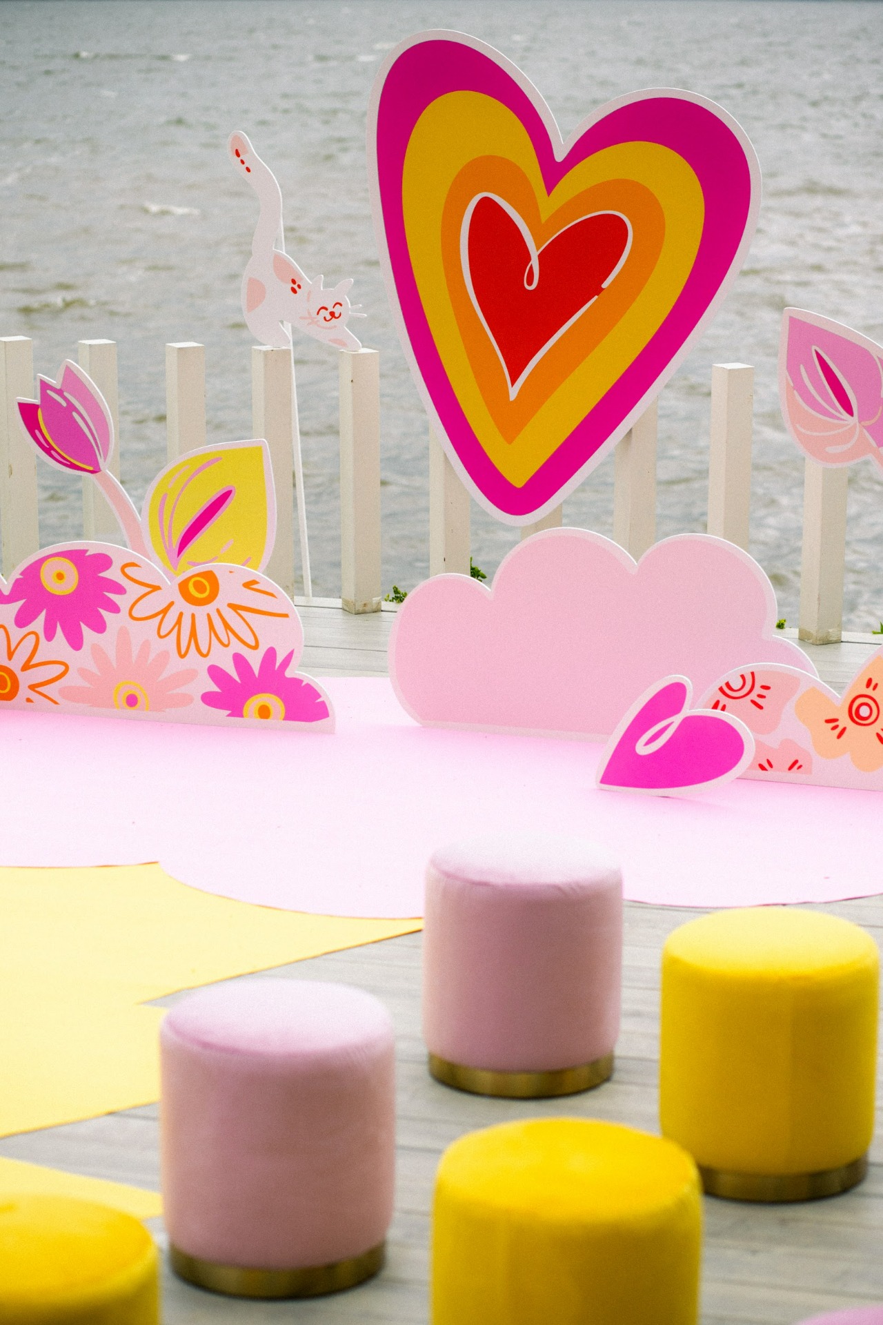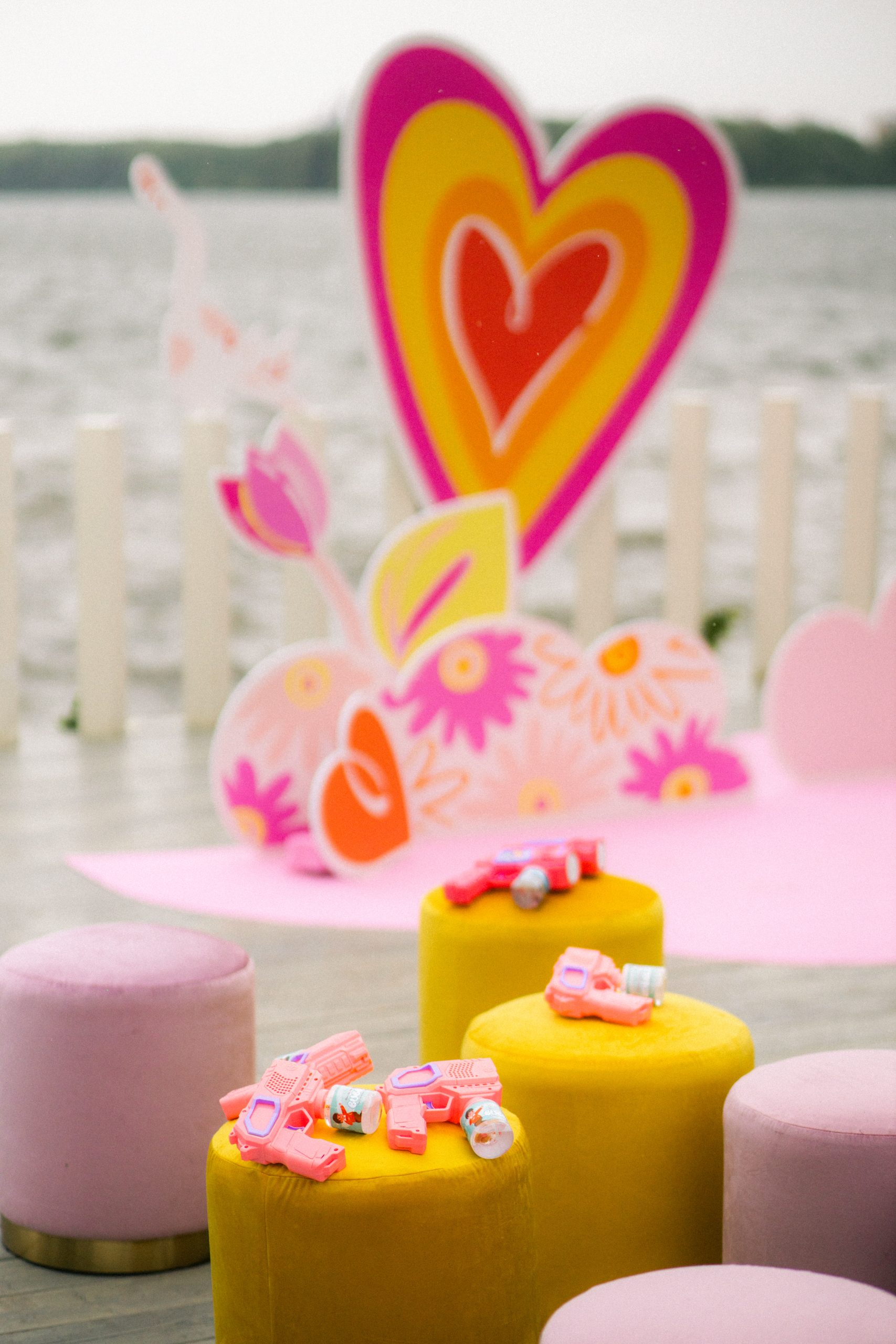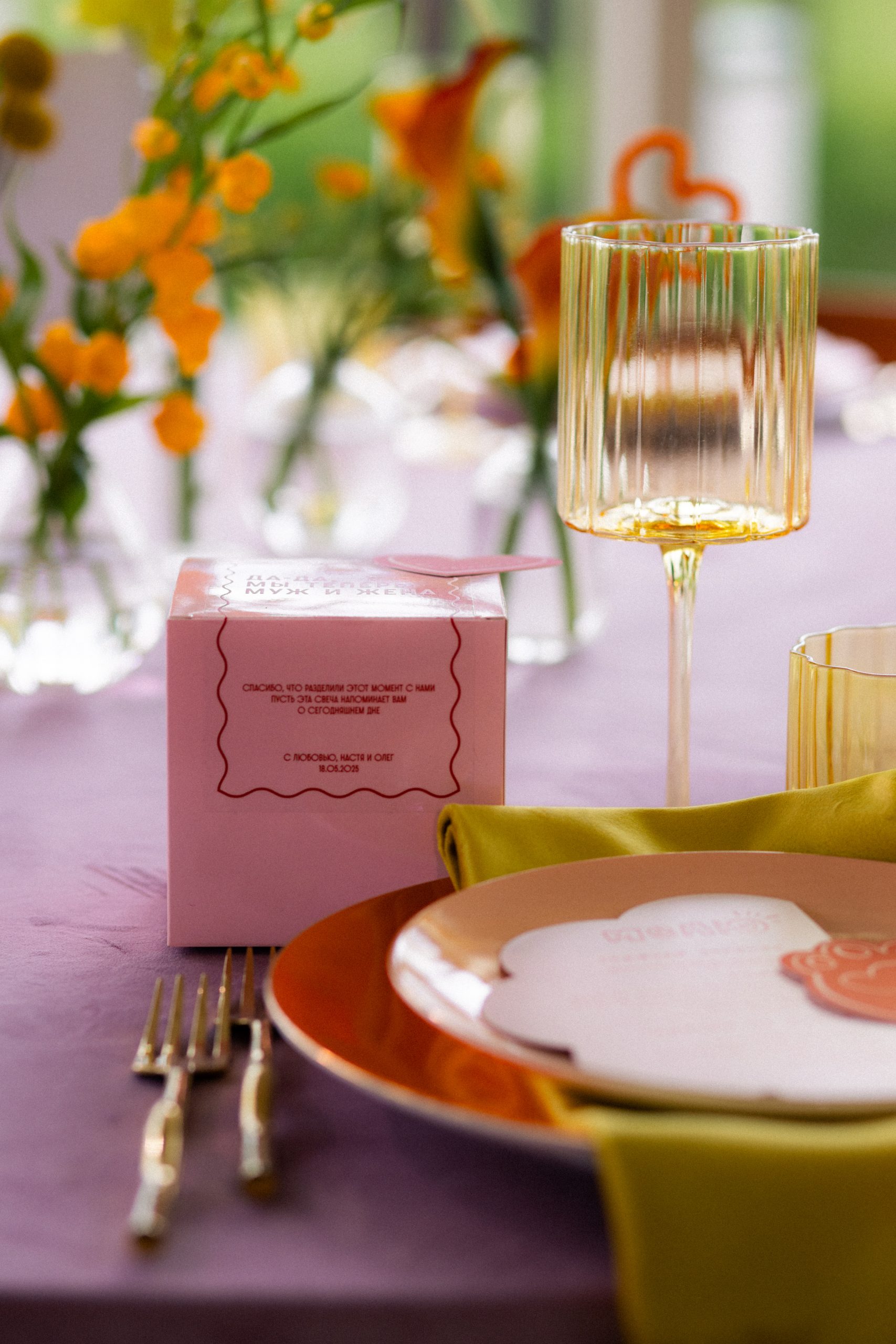 Основной запрос при поиске был такой: сделать этот день про нас и для нас, чтобы он отражал нашу пару. И, к счастью, у нас случился полный мэтч с девочками из Holiday Everyday. После первого созвона и заполнения анкеты нам предложили концепцию — яркую, немного инфантильную, игривую и очень тёплую. Как мне кажется, она прекрасно «рассказывает» о том, какие мы.