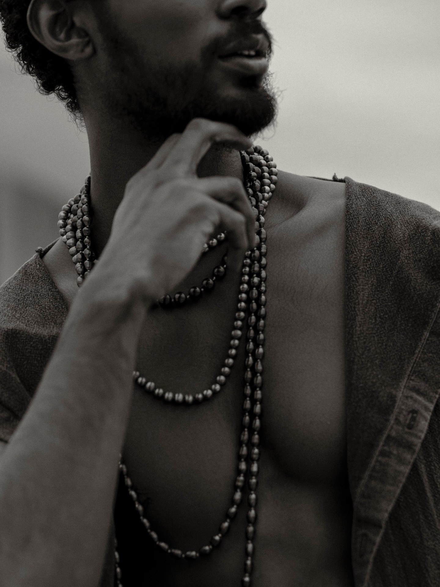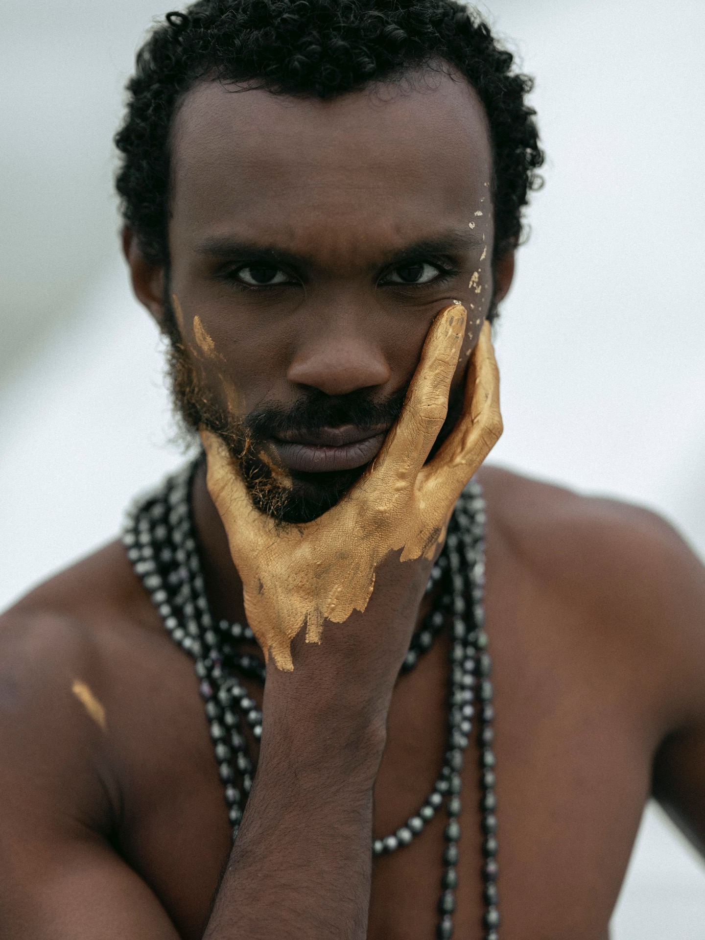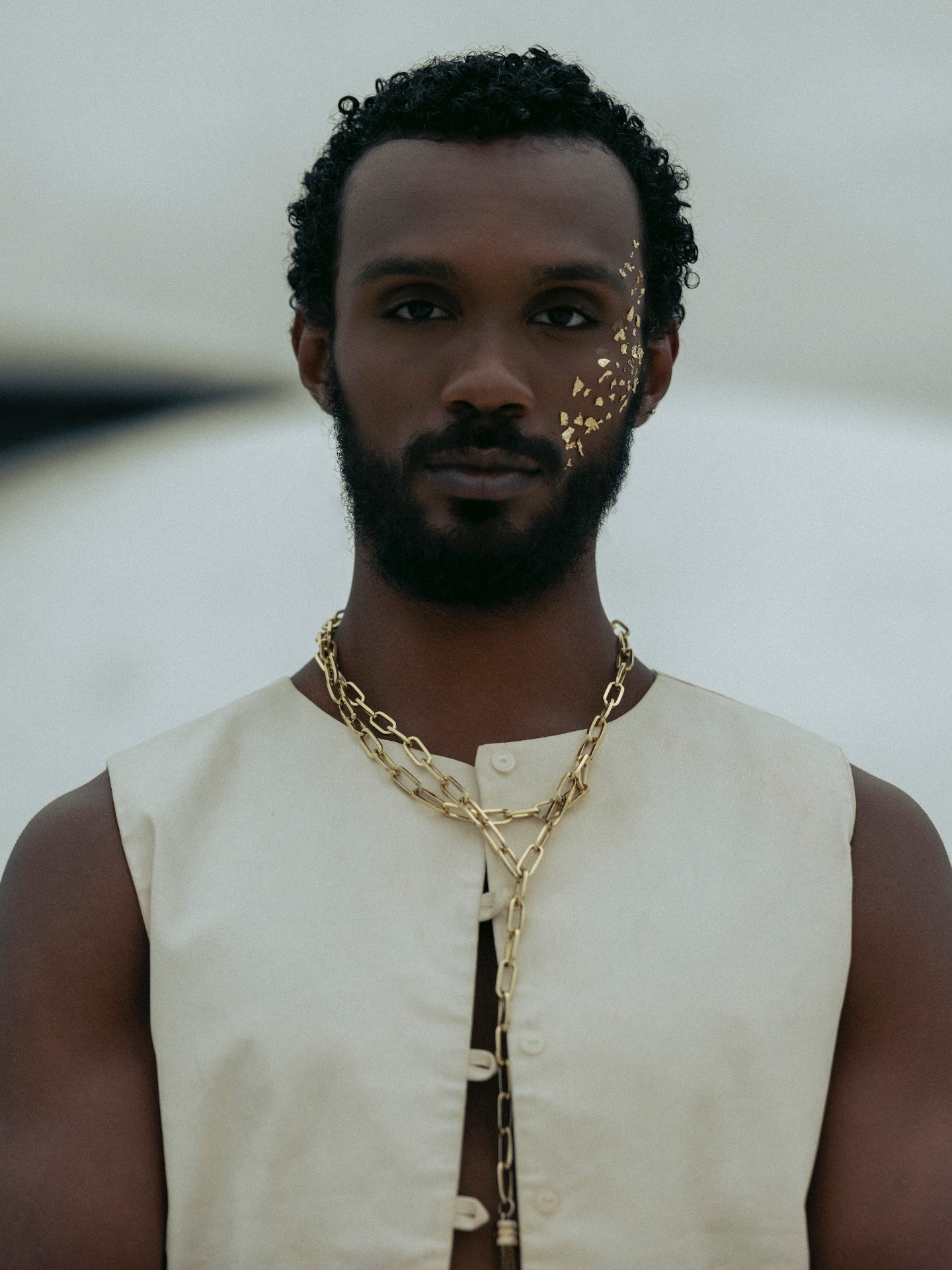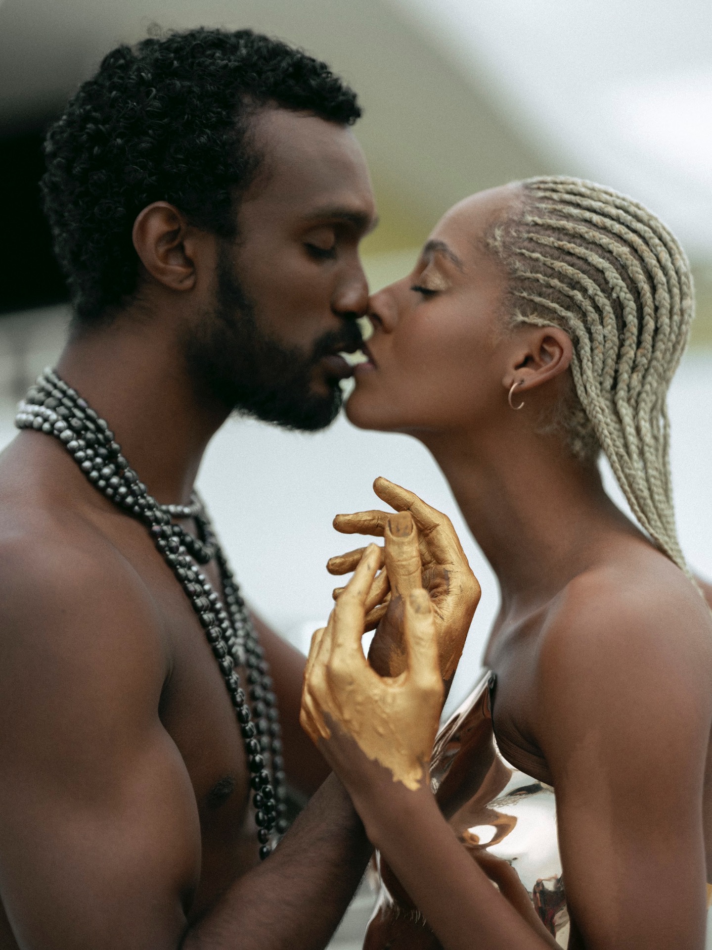 В нашей истории метаморфоза человека в необъятном космосе раскрывается через цвета одежды. Чёрный цвет символизирует одиночество и изоляцию, а микс белого и золотого — объединение двух сердец. Также белый цвет отсылает к свадебным традициям. Само чувство любви мы выразили через цвет золота. Он появляется у пары только после поцелуя. Словно магический свет, золотое сияние сплетает руки влюблённых и озаряет их тела и лица, наполняя теплом и жизненной силой.