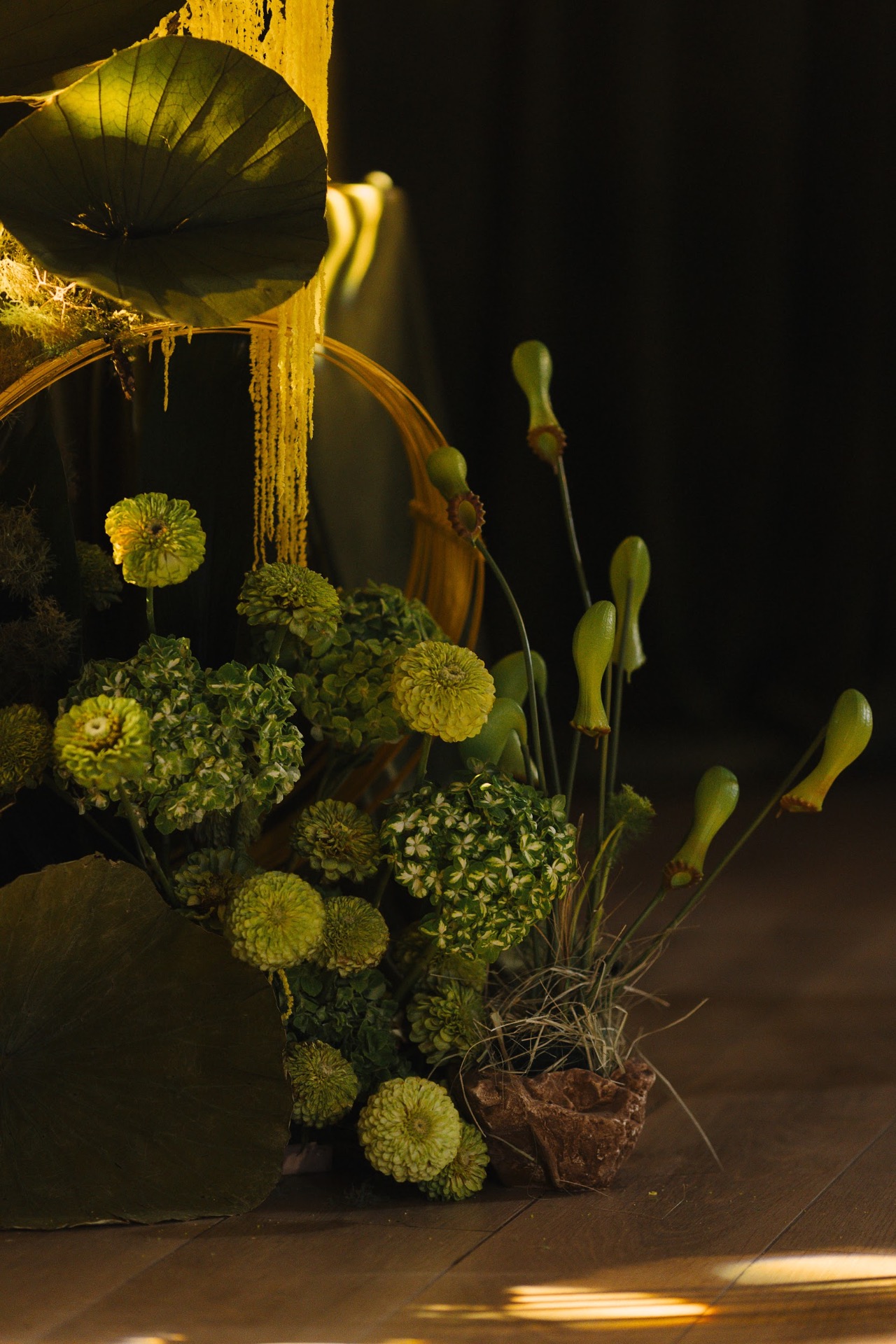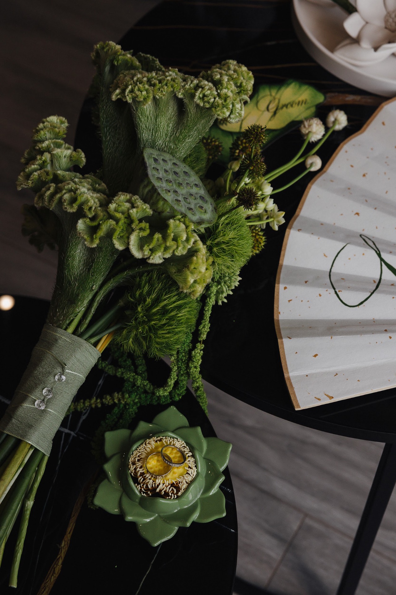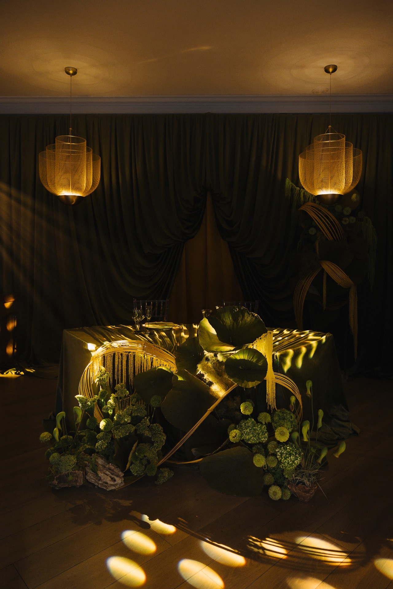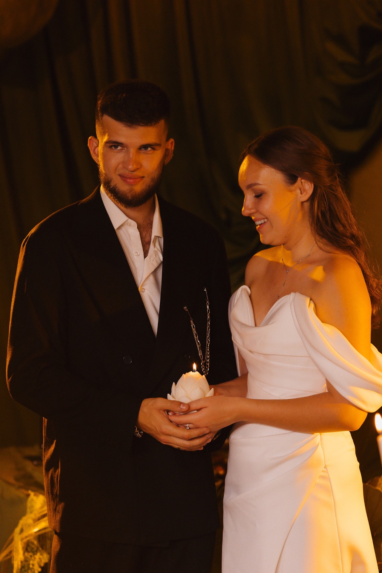 Когда мы заполняли анкету организатора Маши, то собирали ответы по крупицам, чтобы максимально раскрыться как пара. Сначала организаторы думали, что концепция будет построена на нашем хобби — тюнинге спортивного авто и байка, но в процессе всё изменилось и стало совсем другим. У нас родилась романтичная и глубокая история «Любовь и лотосы».