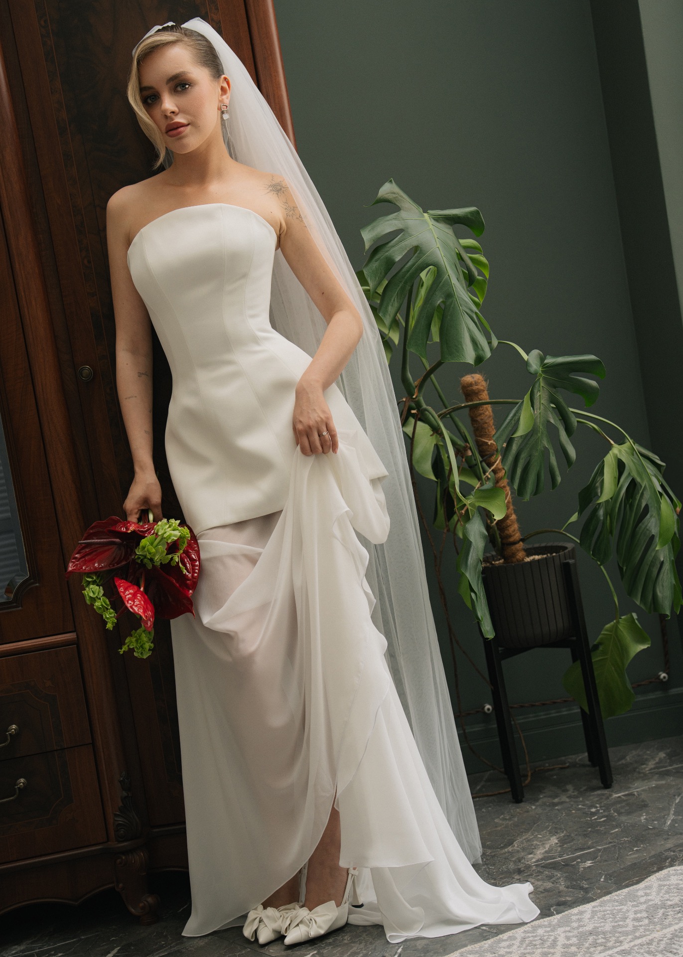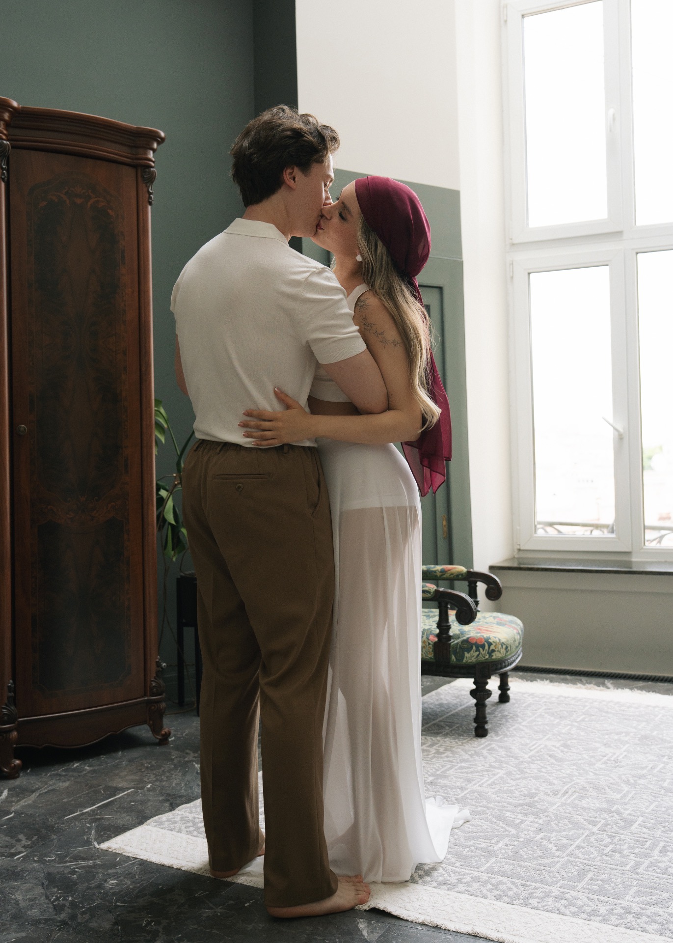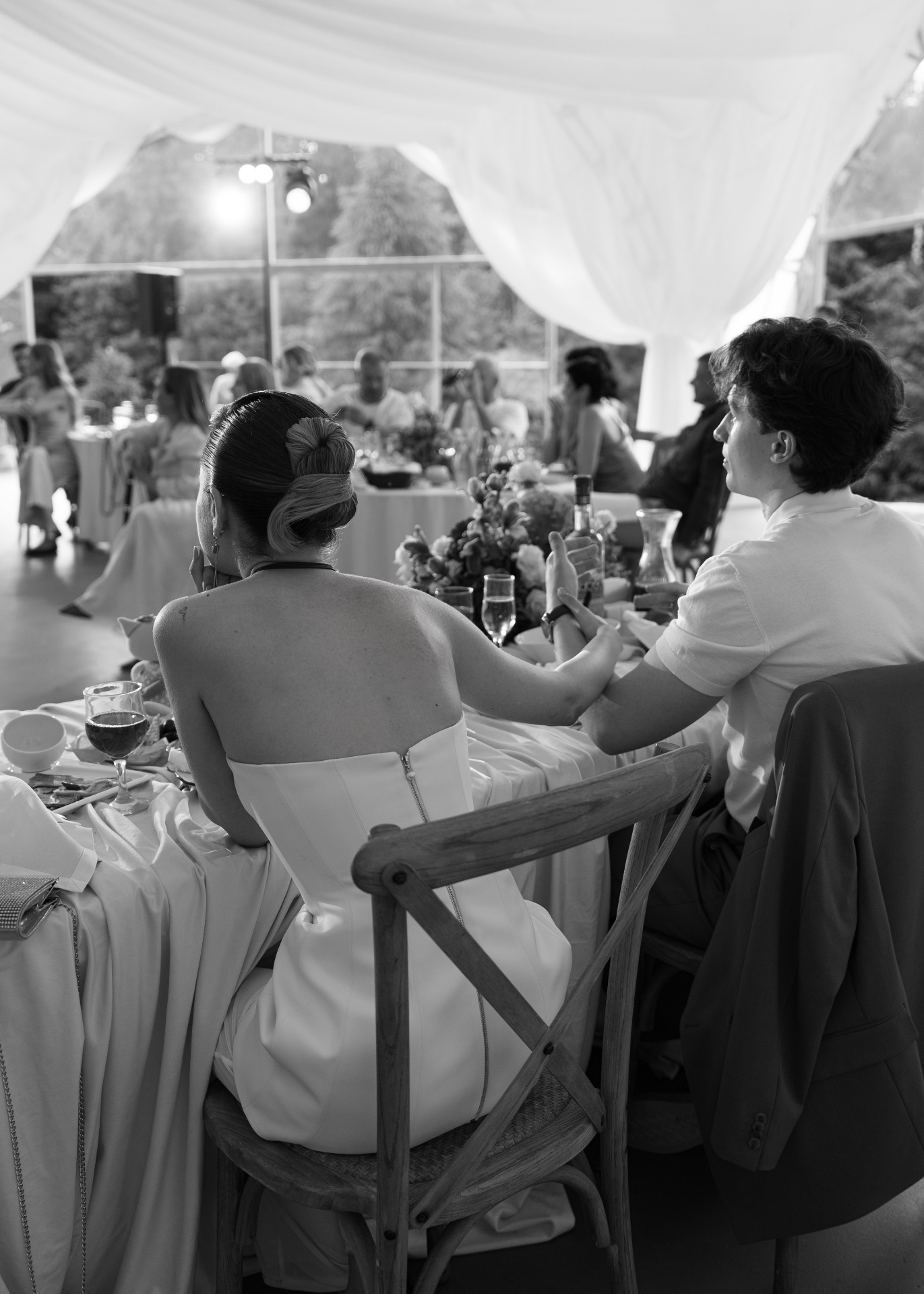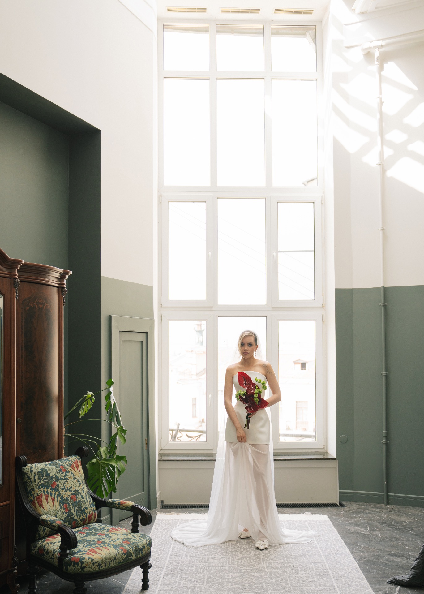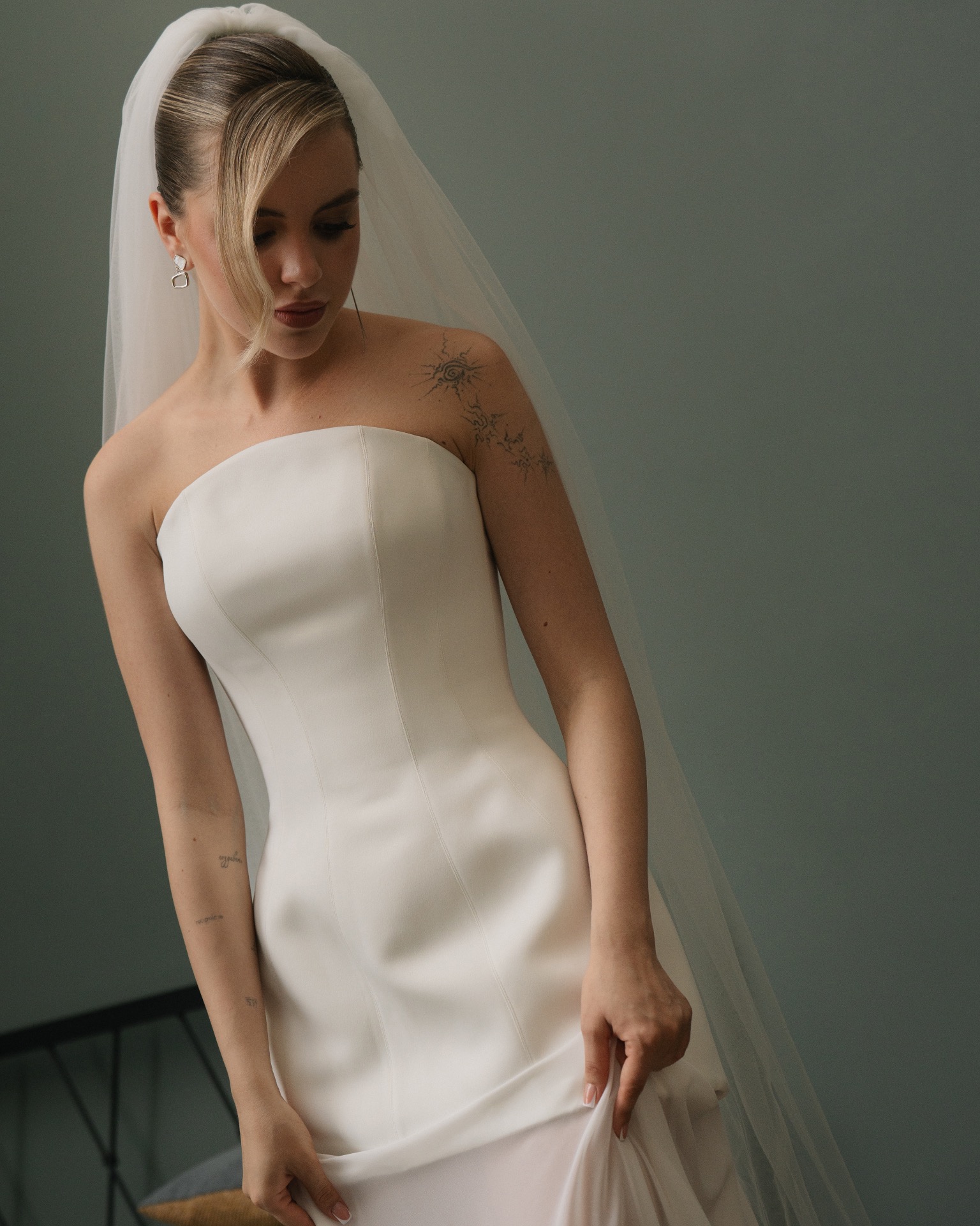 Мы изначально оба придерживались мнения, что нам важна лаконичность в деталях и образах. Я сразу понимала, что моё платье не будет пышным, а также на нём не будет страз и перьев. Егор же рассчитывал на комфортный костюм без жилета.