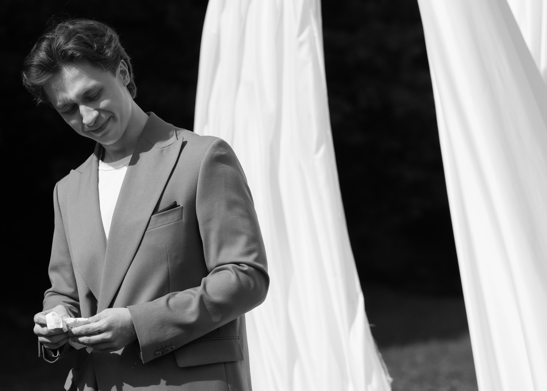 С костюмом Егора было чуть сложнее. Мы не могли определиться с цветом. Нам не хотелось чёрного, а синий совсем никак не вписывался в концепцию. Но позже нам всё же удалось найти идеальный по всем параметрам вариант.